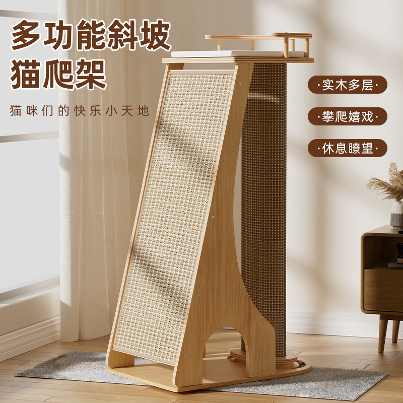 고양이 스크래치 보드, 원목 고양이 클라이밍 프레임, 방수, 내마모성, 비분해성 고양이 둥지, 대형 대마 로프 고양이 스크래치 컬럼, 일체형 고양이 점프 플랫폼