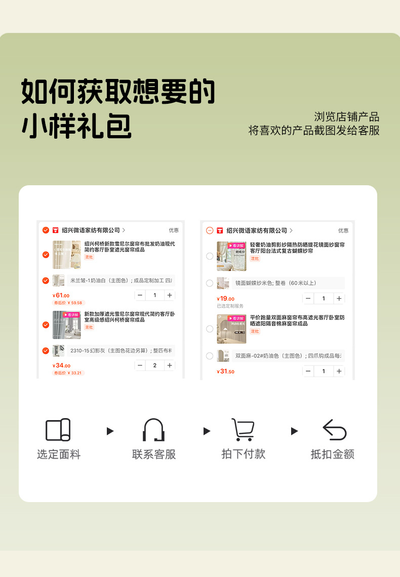• 【무료 제공】 샤 샘플 + 10가지 원단 샘플 (각 샘플당 6-8색) + 레일 샘플 ~ 품질 검사 보고서 첨부, 환불 가능 (배송비 별도)