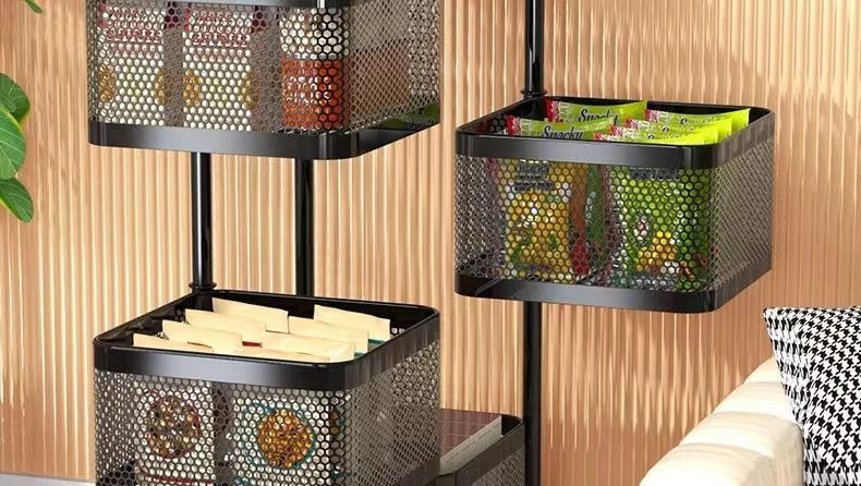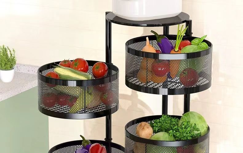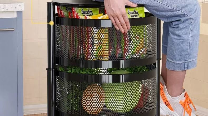 다기능 이동식 회전 메쉬 바구니 보관 랙 가정용 현대식 간단한 정리 랙 주방 코너 보관 랙