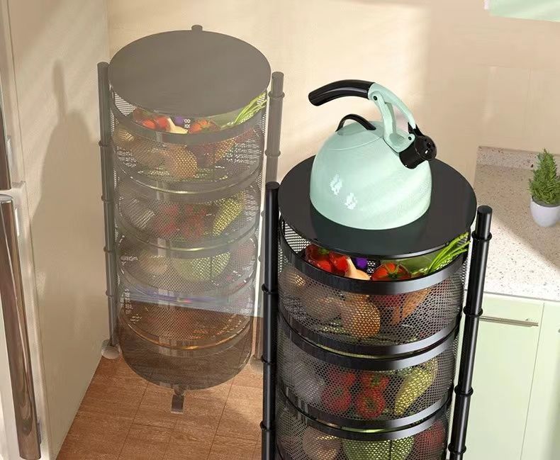 다기능 이동식 회전 메쉬 바구니 보관 랙 가정용 현대식 간단한 정리 랙 주방 코너 보관 랙스토어 가기