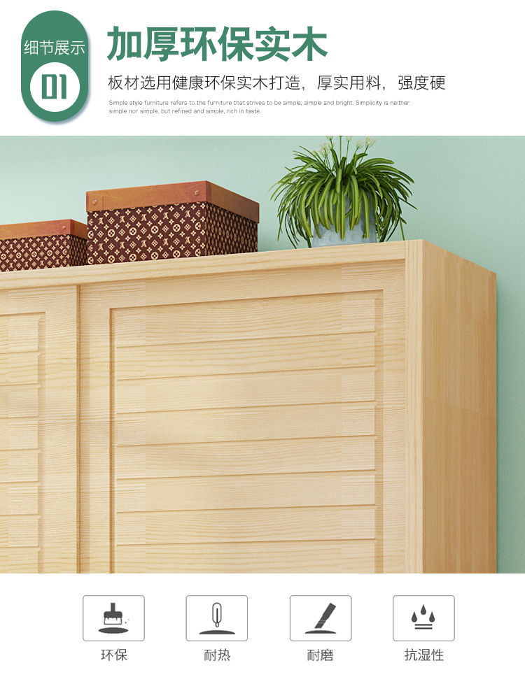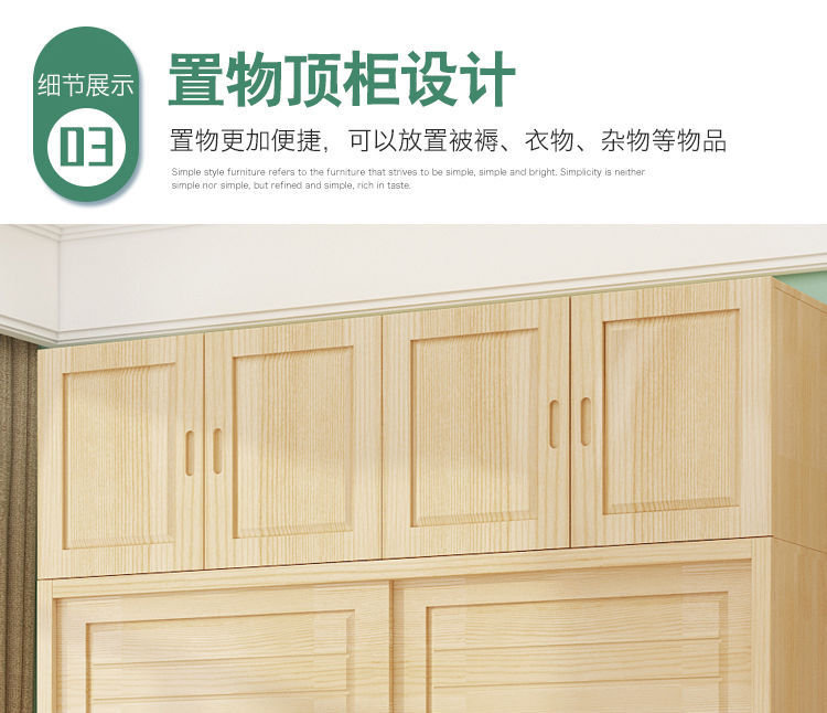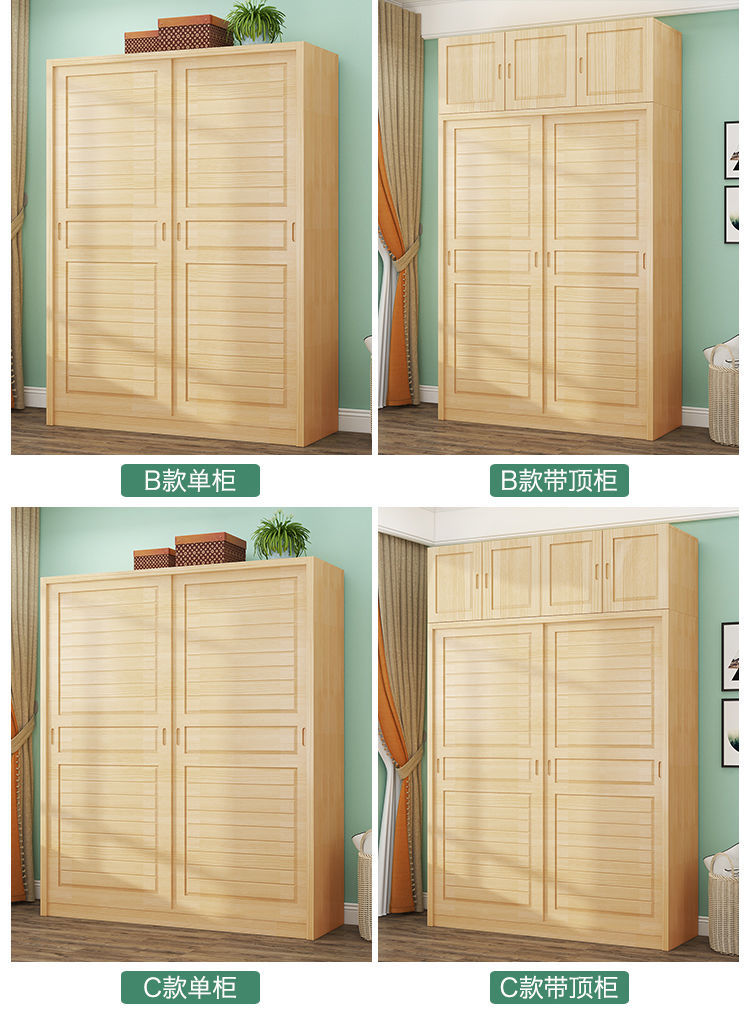 단단한 소나무 수납 캐비닛 탑 캐비닛 간단한 슬라이딩 침실 수납 캐비닛 어린이 옷장 2 도어 조립 옷장 g^