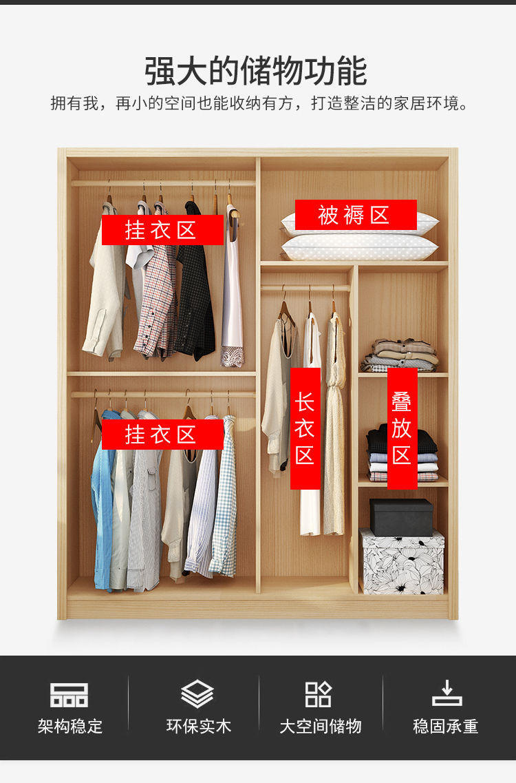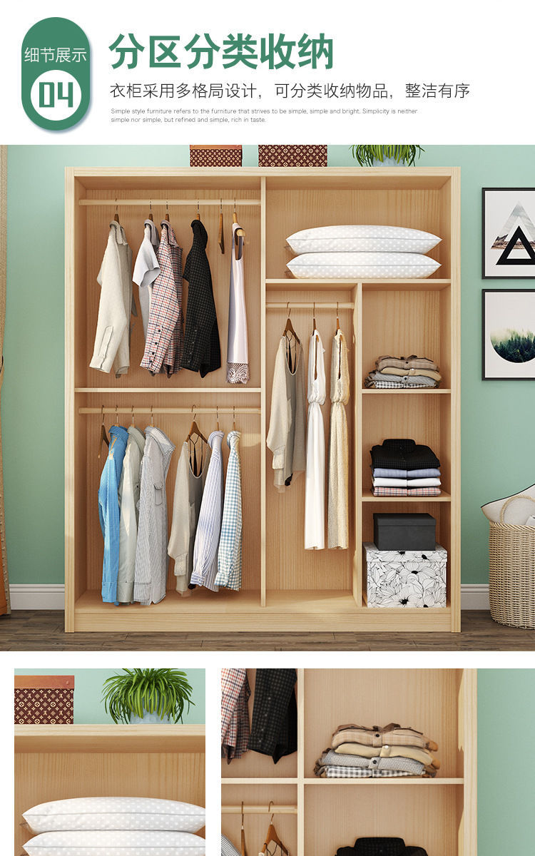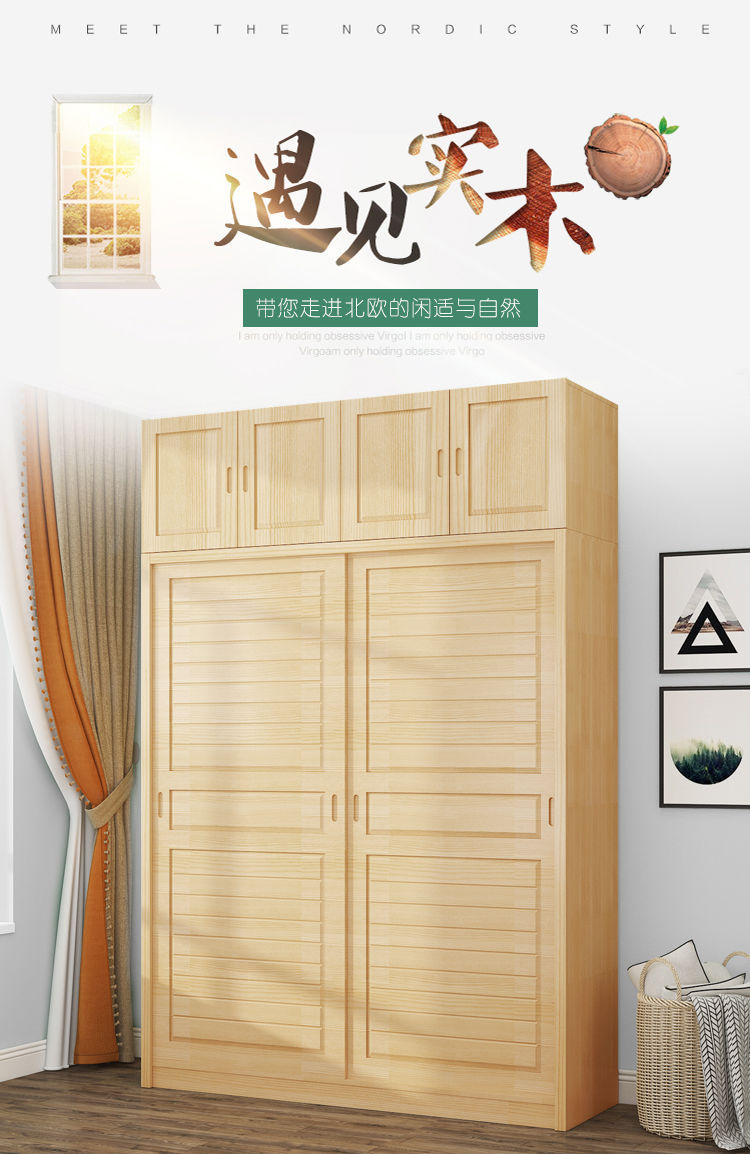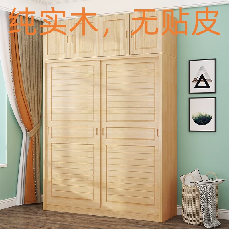 단단한 소나무 수납 캐비닛 탑 캐비닛 간단한 슬라이딩 침실 수납 캐비닛 어린이 옷장 2 도어 조립 옷장 g^스토어 가기