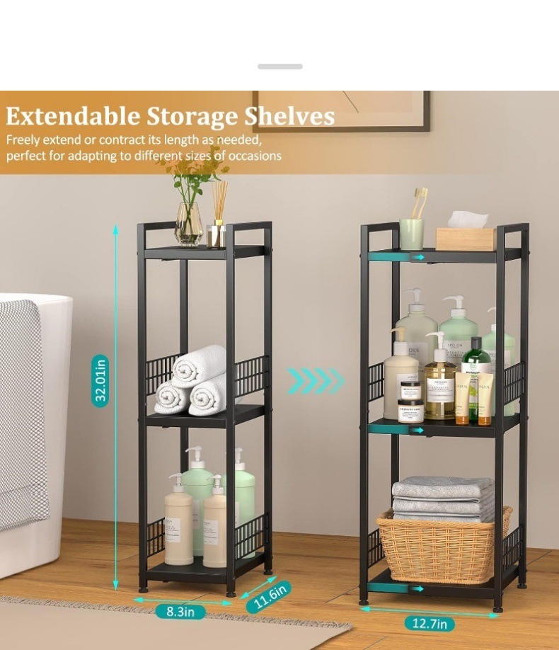 3층 금속 선반 주방 욕실 수납 선반 바닥에서 천장까지 다층 수납 선반 가정용 다기능 냄비 선반 수납 선반스토어 가기