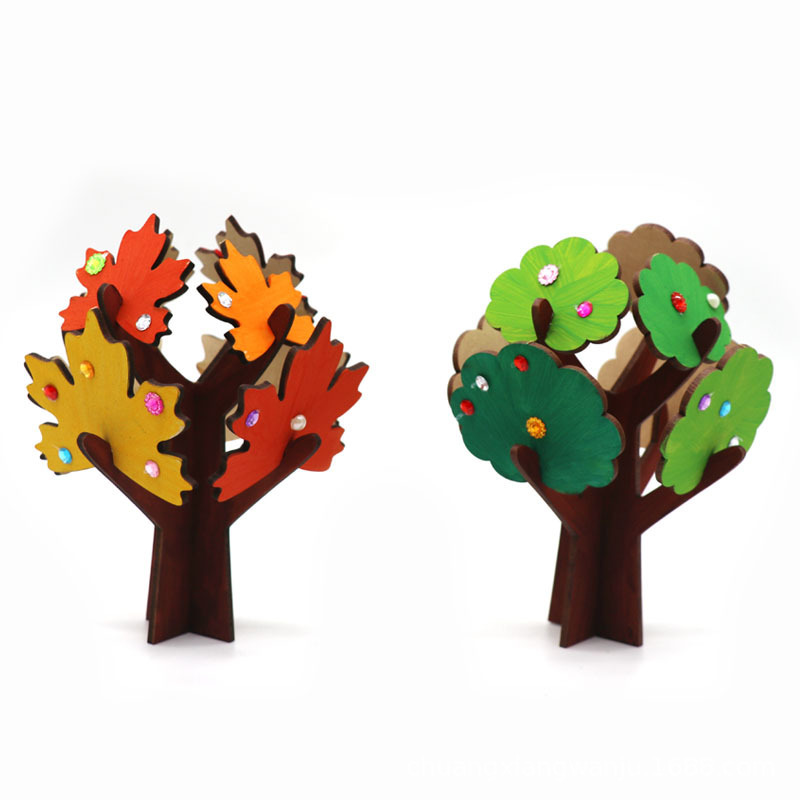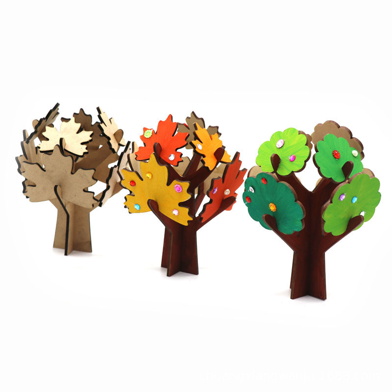 어린이 DIY 수제 그래피티 트리, MDF 단풍잎 나무, 유치원 색칠 그림 접합 나무, 교육용 나무 그림자 나무스토어 가기