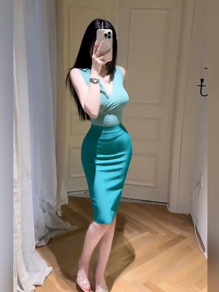 2025 신상 유럽과 미국의 섹시한 하이 웨이스트 붕대 힙 스커트 데이트 스커트 고탄력 슬리밍 붕대 스커트