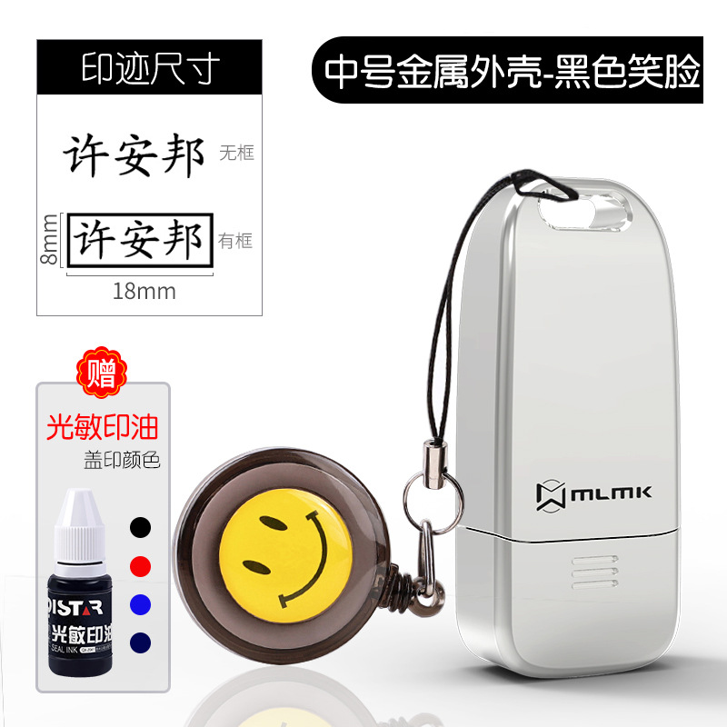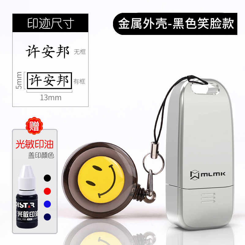 • 중간 금속 합금 모델(8x18MM) + 검은색 웃는 얼굴 + 인쇄 잉크