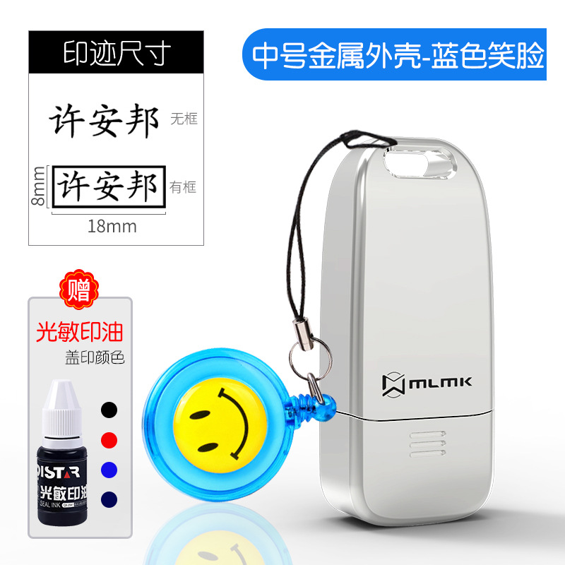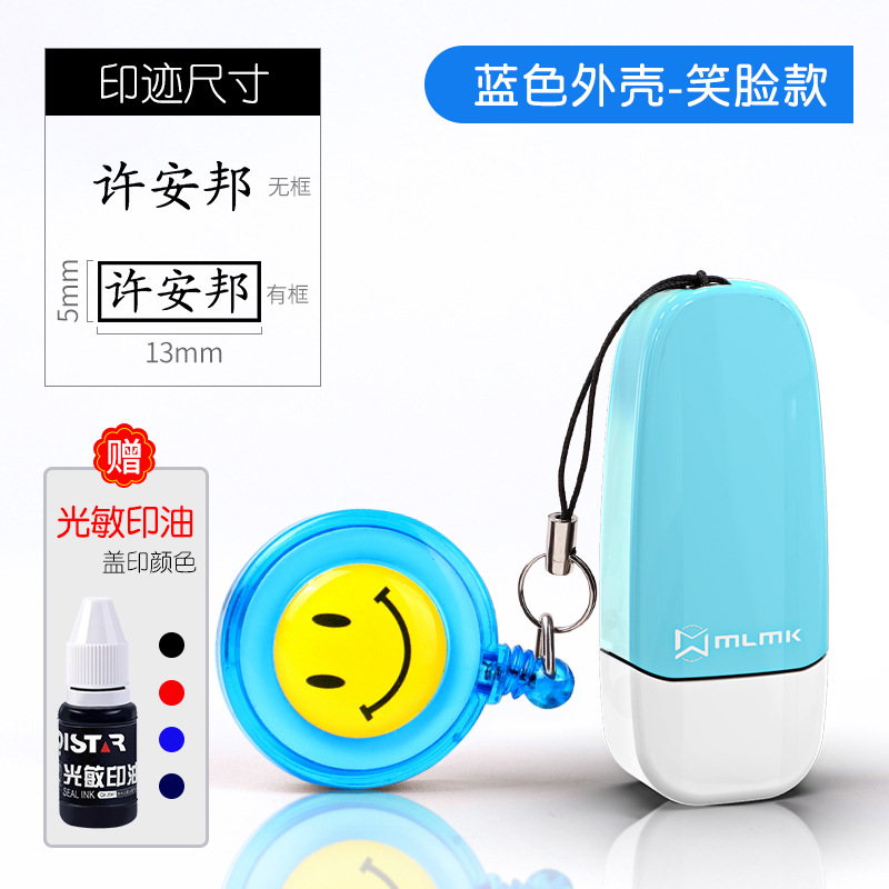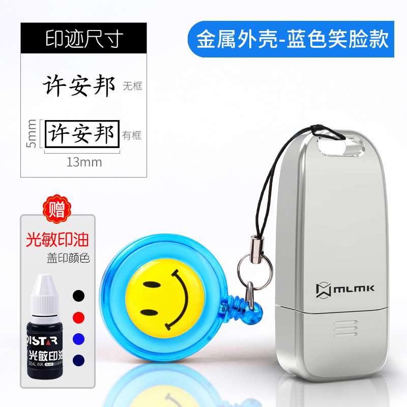 • 중간 금속 합금 모델(8x18MM) + 파란색 웃는 얼굴 + 인쇄 잉크