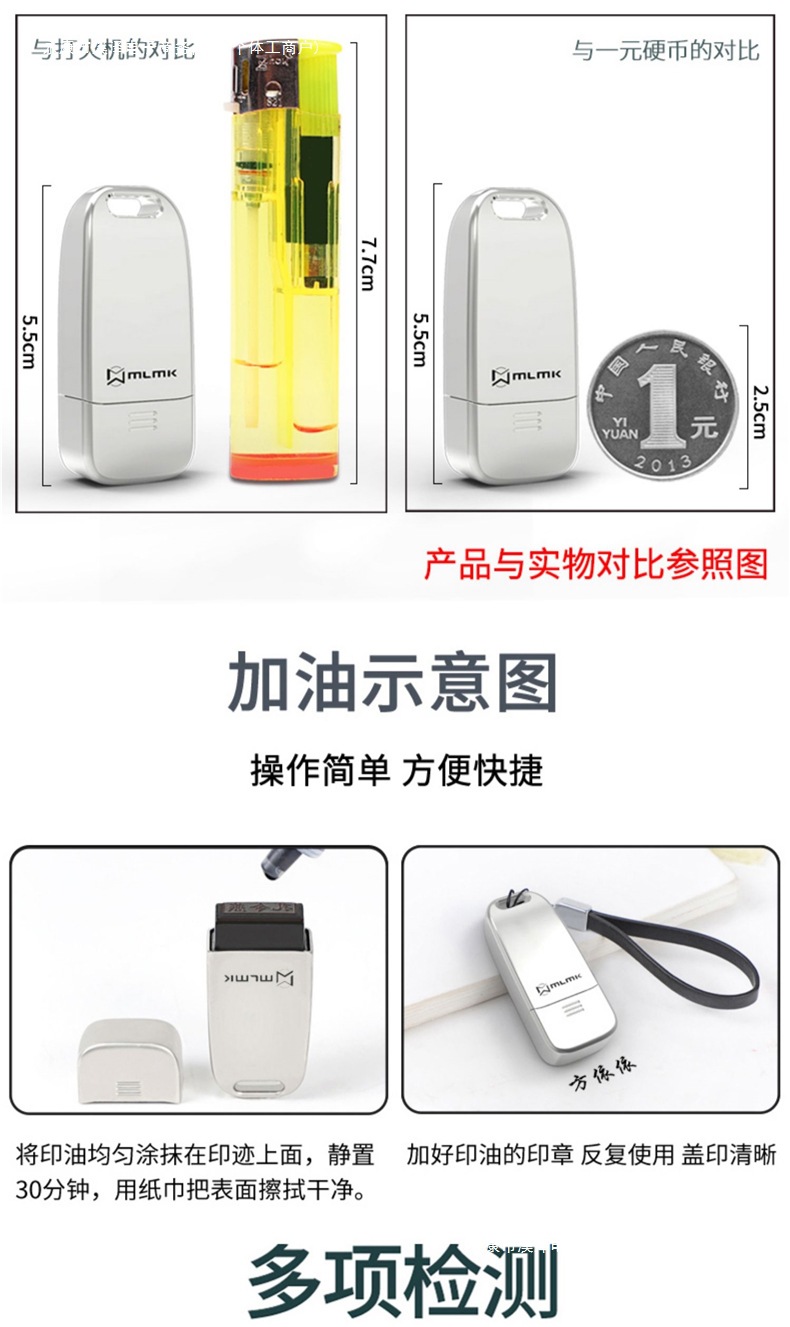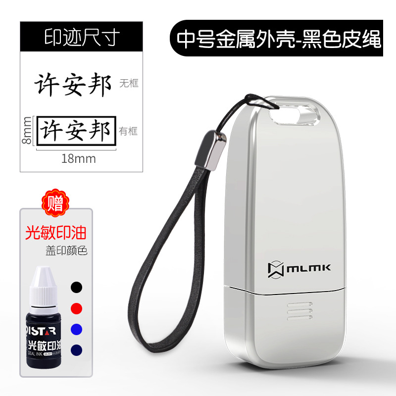 • 중형 금속 합금 모델(8x18MM) + 검정색 가죽 로프 + 인쇄 잉크