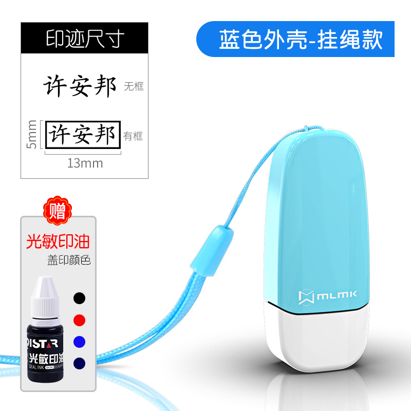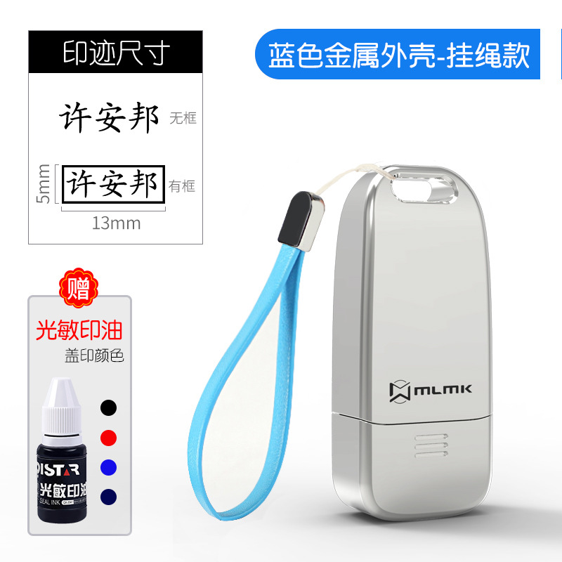 • 금속 합금 모델(5*13MM) + 파란색 가죽 로프 + 인쇄 잉크