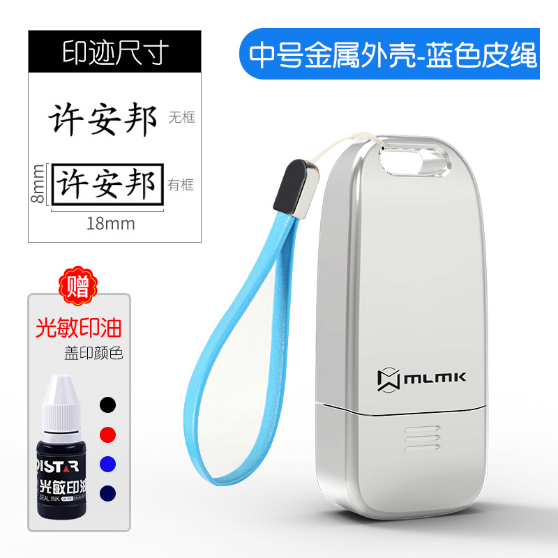 • 중간 금속 합금 모델(8x18MM) + 파란색 가죽 로프 + 인쇄 잉크