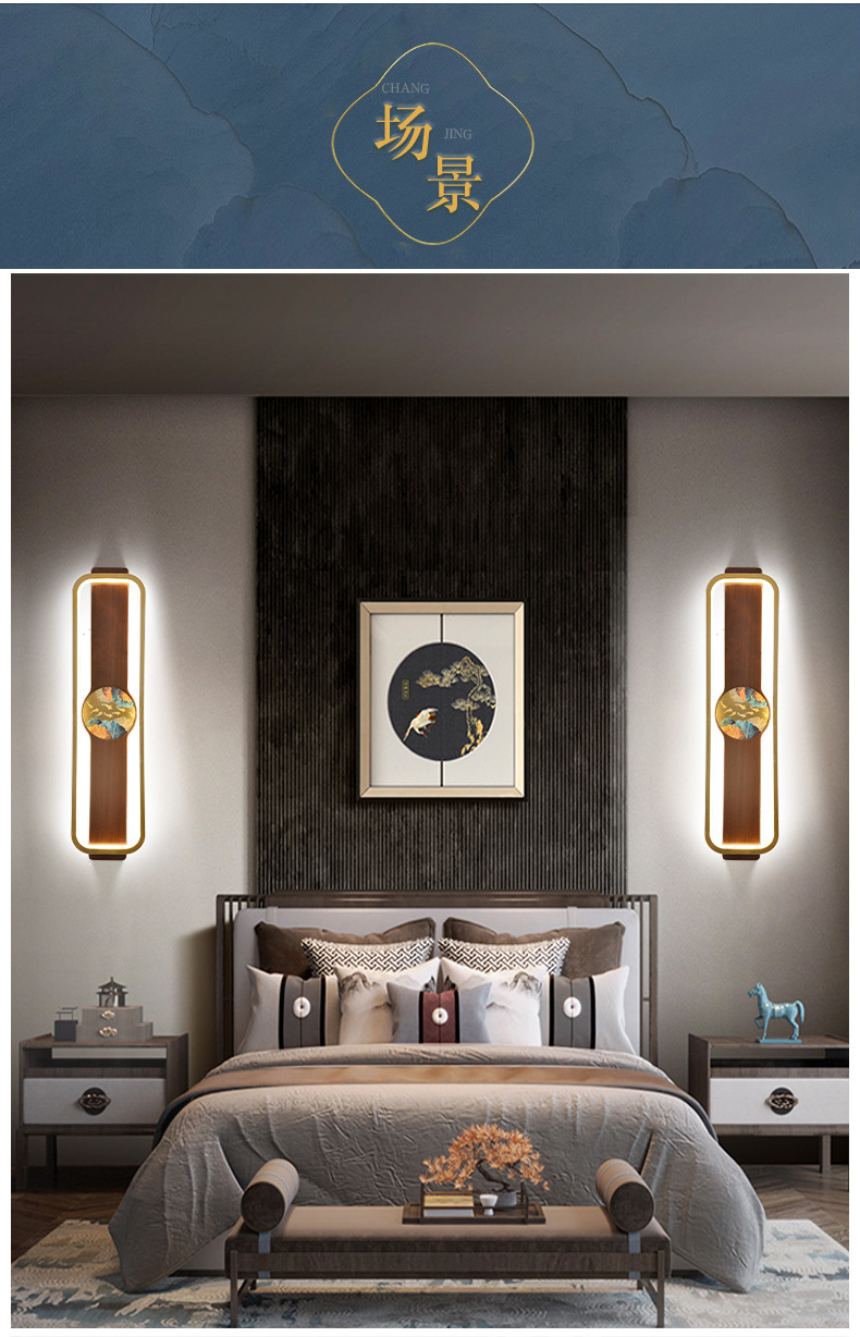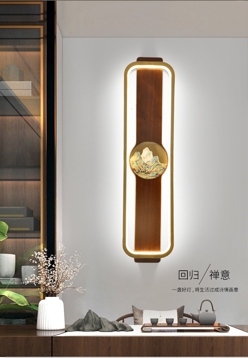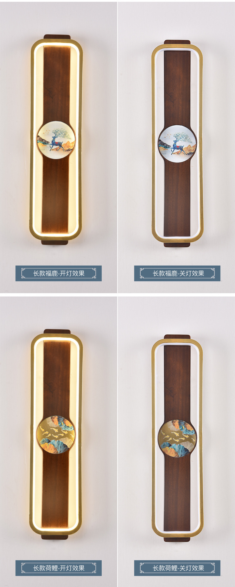 새로운 중국 스타일 벽 램프 호두 색상 중국 스타일 선 기숙사 거실 배경 벽 램프 침실 머리맡 램프 통로 복도 램프