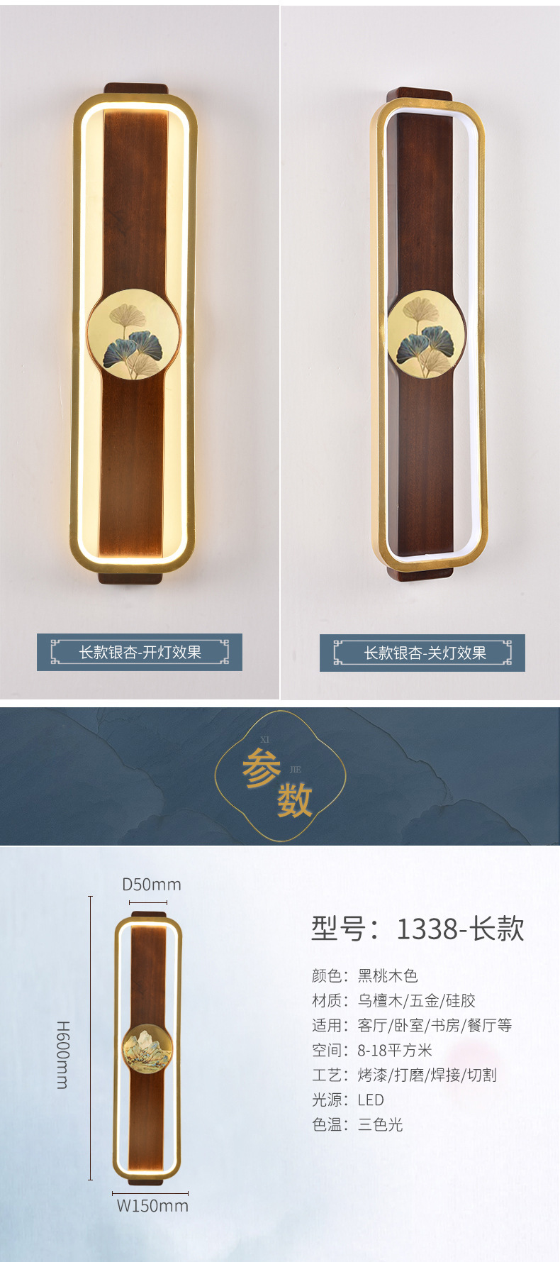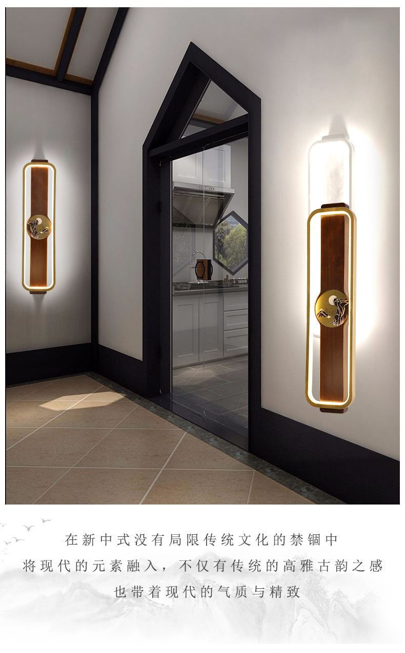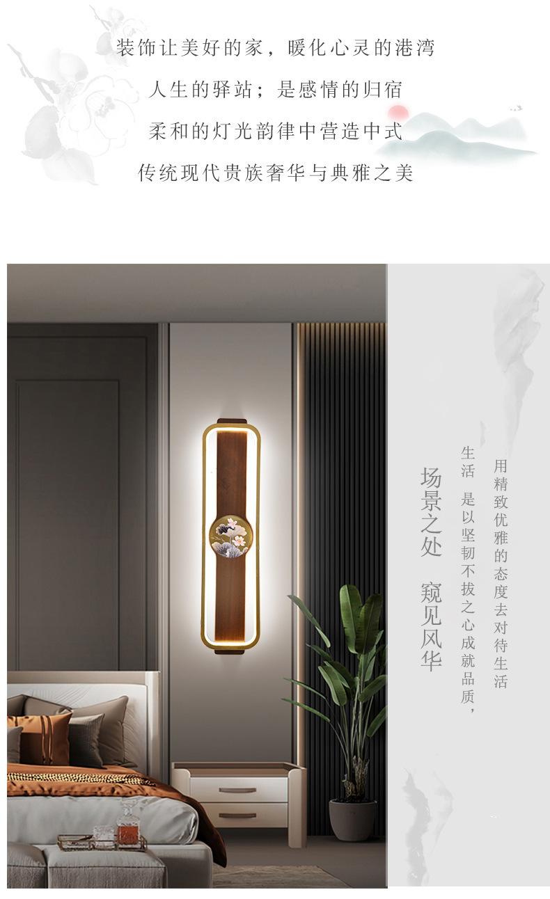 새로운 중국 스타일 벽 램프 호두 색상 중국 스타일 선 기숙사 거실 배경 벽 램프 침실 머리맡 램프 통로 복도 램프