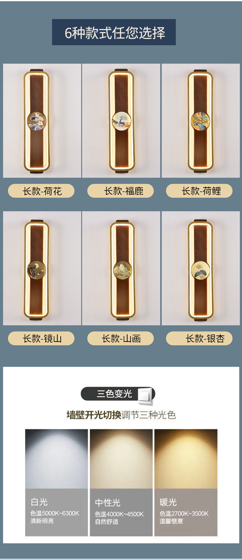 새로운 중국 스타일 벽 램프 호두 색상 중국 스타일 선 기숙사 거실 배경 벽 램프 침실 머리맡 램프 통로 복도 램프스토어 가기