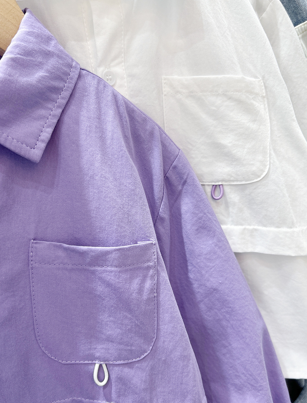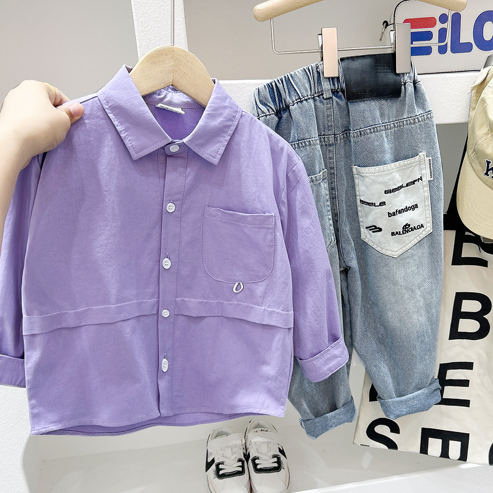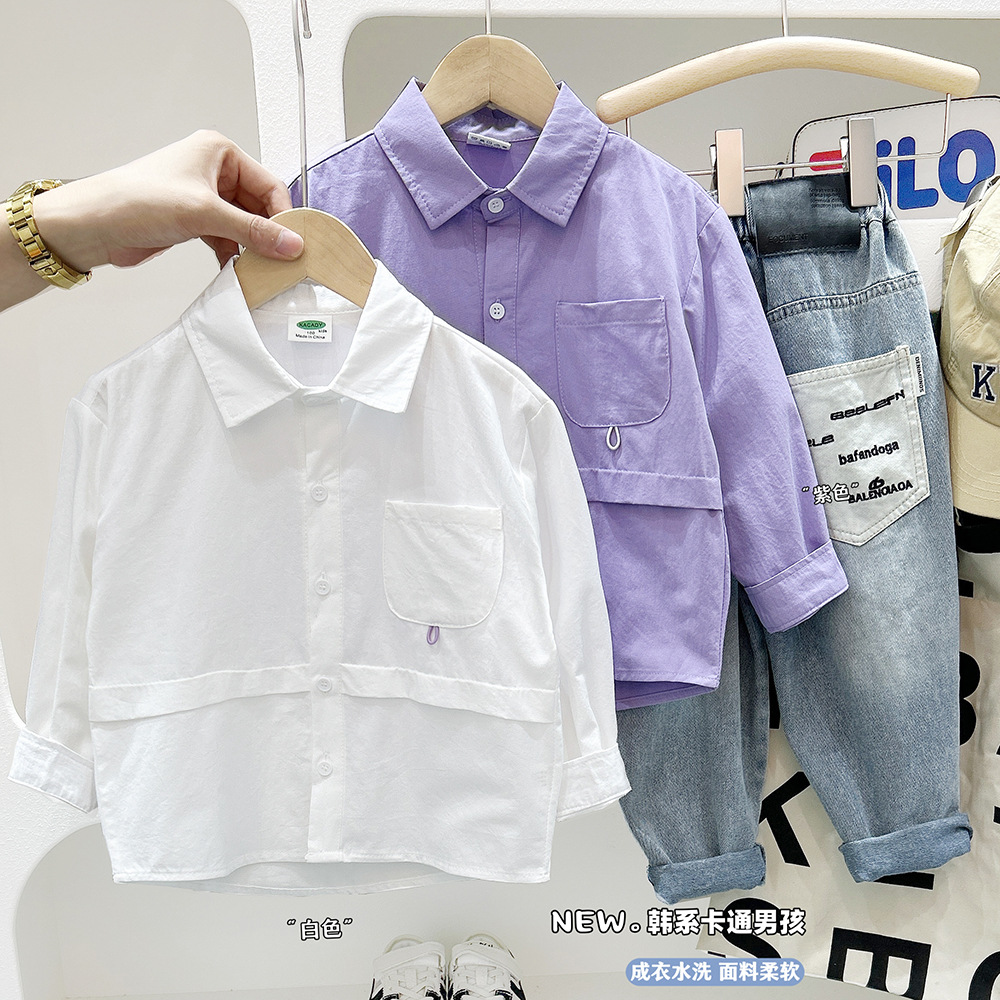봄과 가을 새로운 작업 셔츠 2025 소년 긴팔 한국 스타일 느슨한 포켓 셔츠 캐주얼 솔리드 컬러 재킷 유행스토어 가기