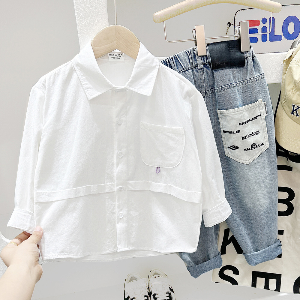 봄과 가을 새로운 작업 셔츠 2025 소년 긴팔 한국 스타일 느슨한 포켓 셔츠 캐주얼 솔리드 컬러 재킷 유행