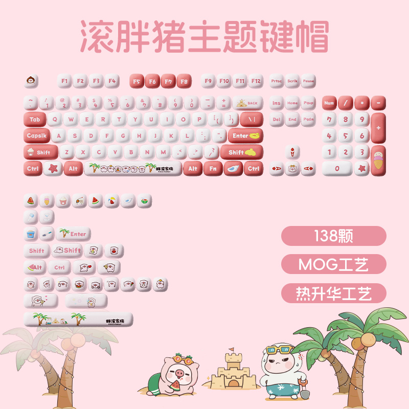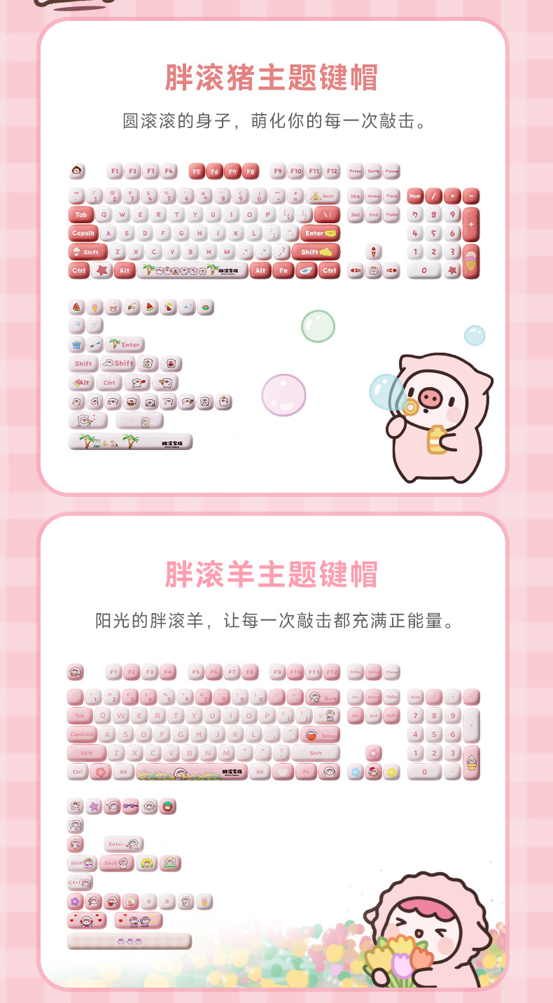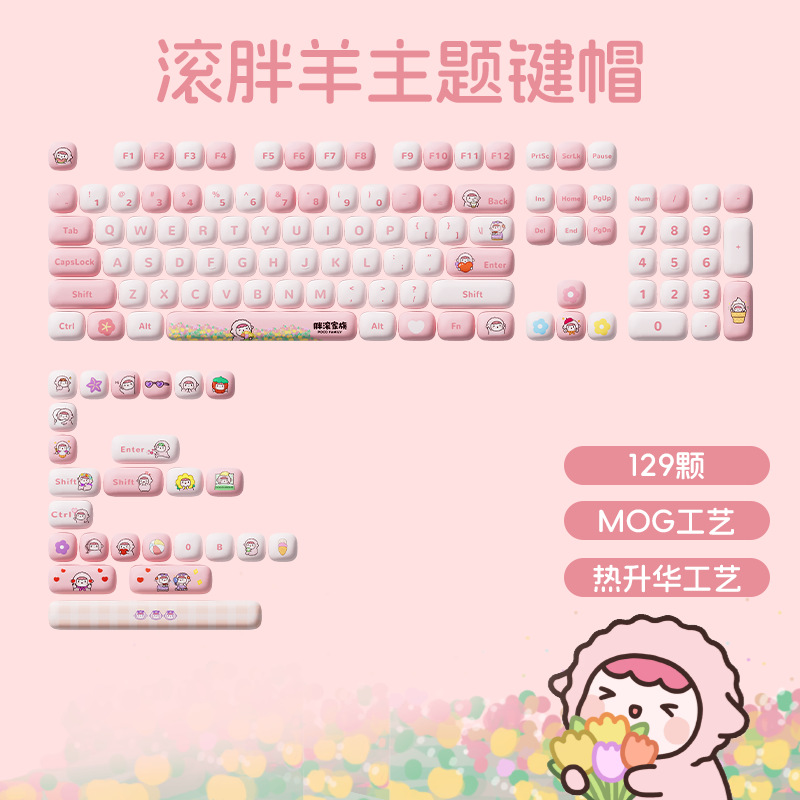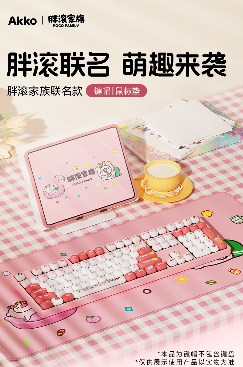 AKKO Fat Roll Family 시리즈 핑크 귀여운 소녀 사무실 특별 테이블 MOG 기계식 키보드 캡 전체 세트