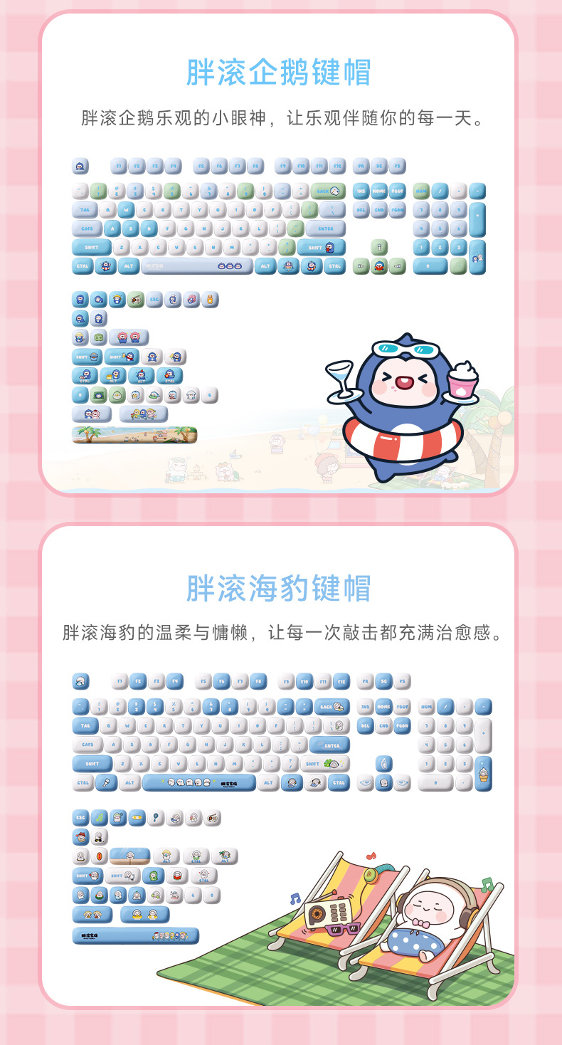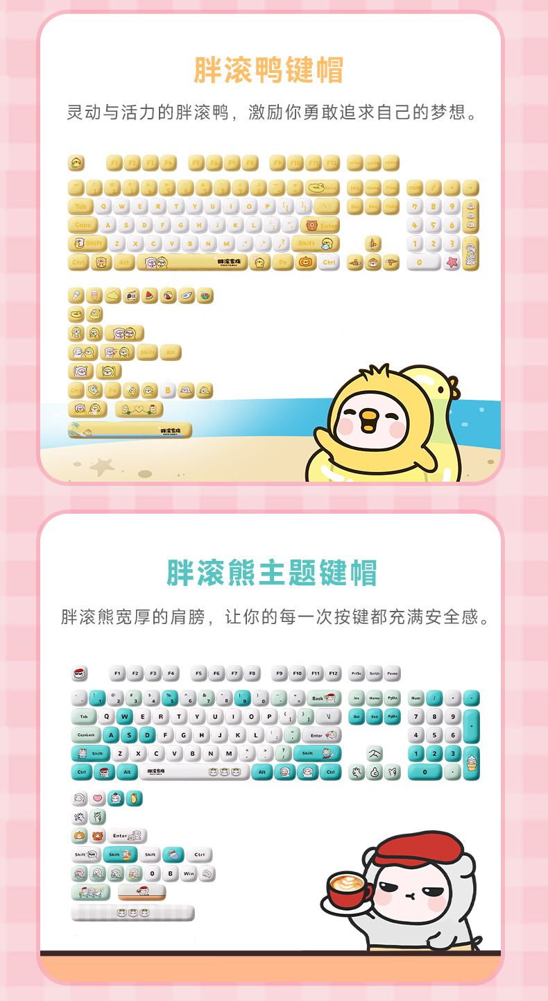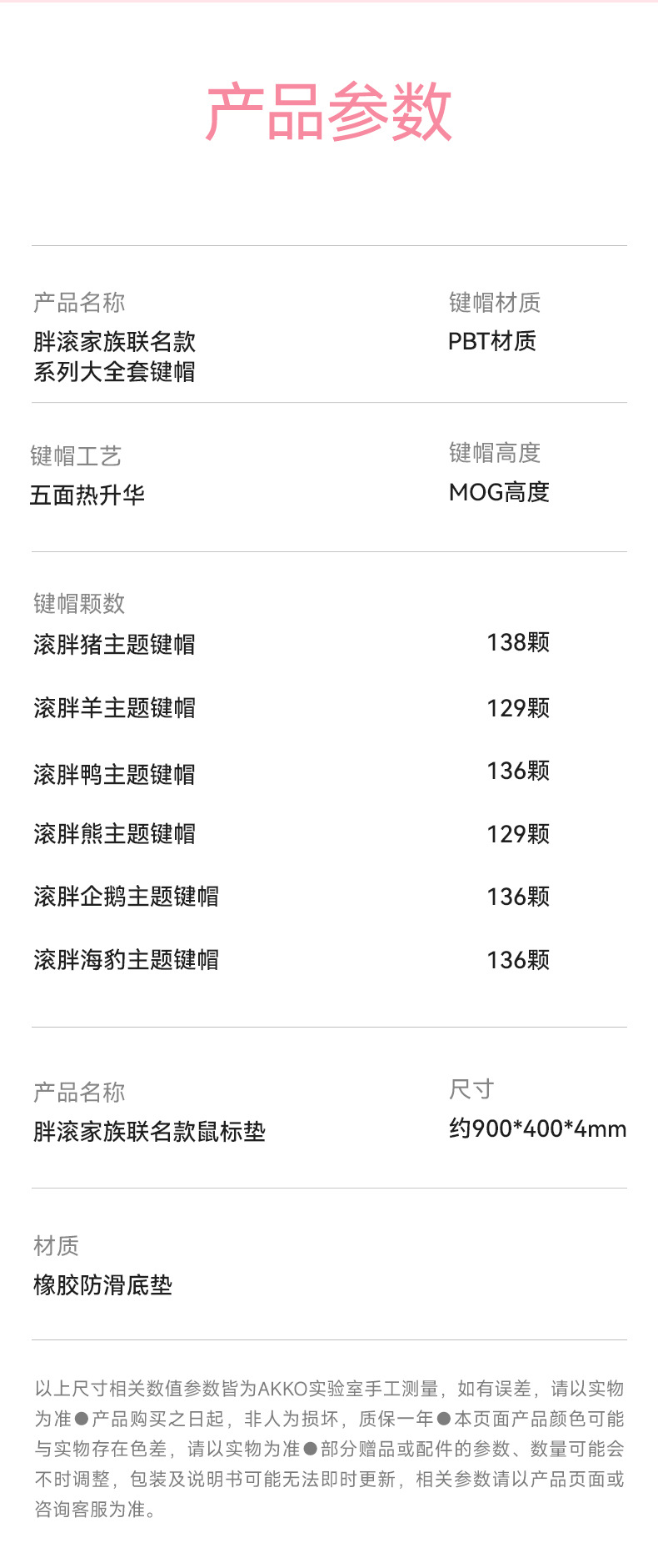AKKO Fat Roll Family 시리즈 핑크 귀여운 소녀 사무실 특별 테이블 MOG 기계식 키보드 캡 전체 세트