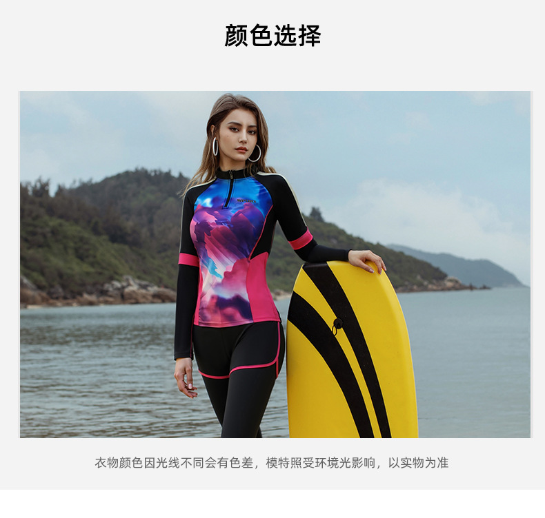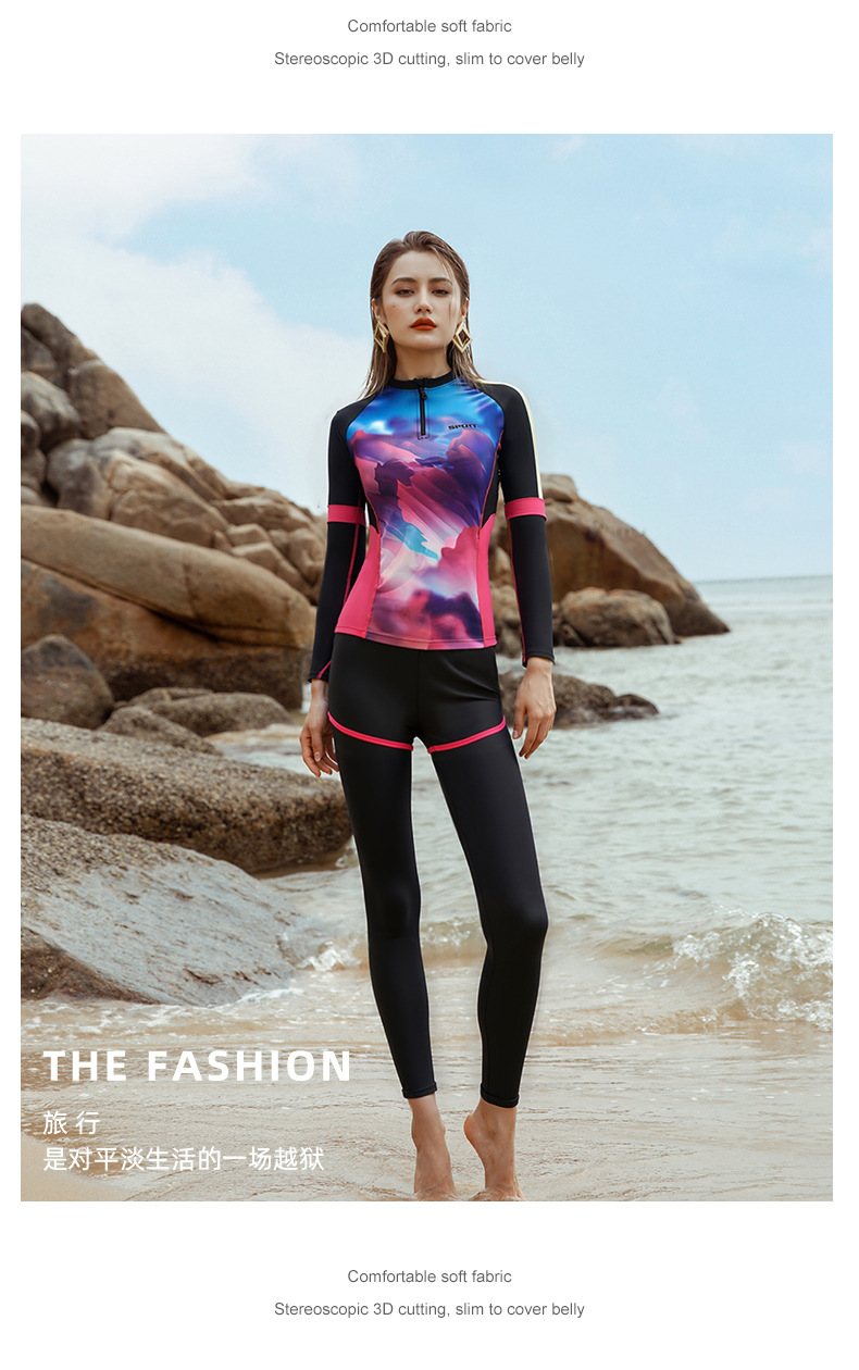 심포니 타이 염색 2025 새로운 여성 긴팔 스플릿 수영복 슬리밍 작은 허리 온천 휴가 잠수복 도매스토어 가기