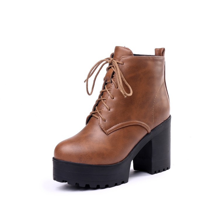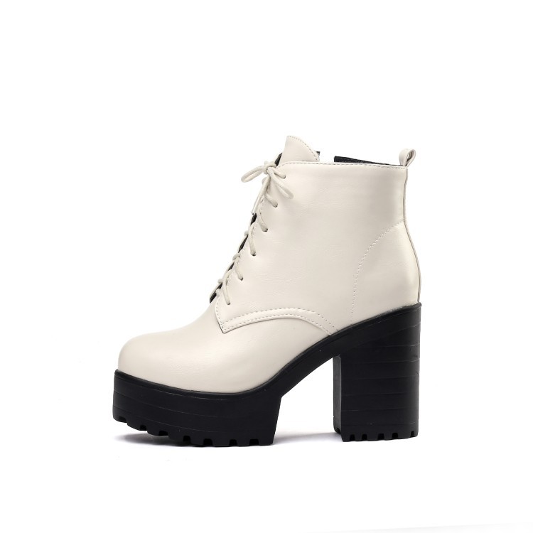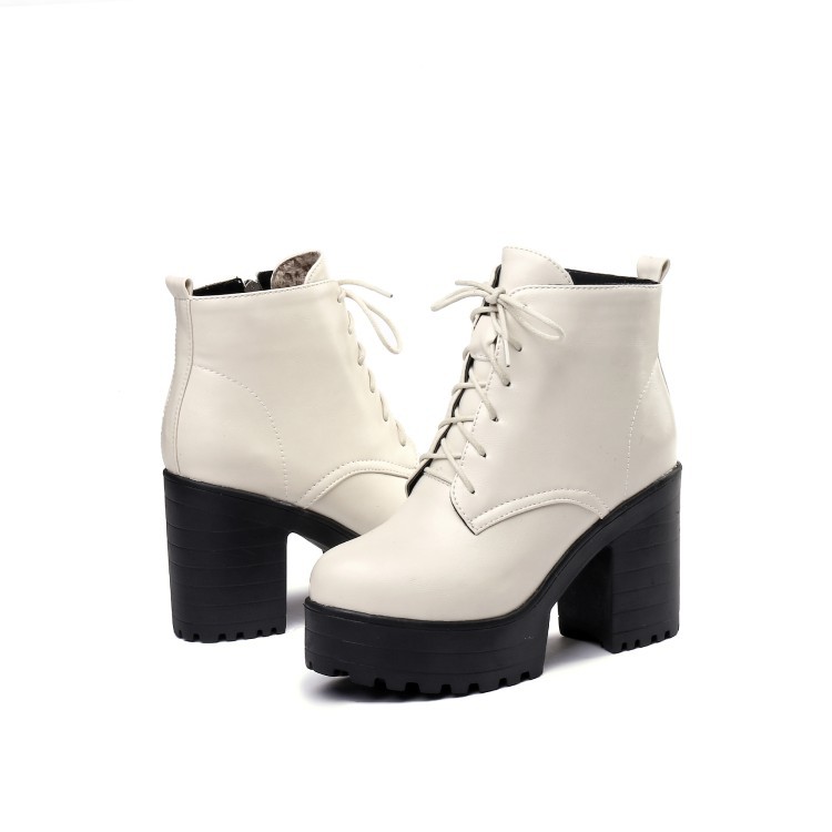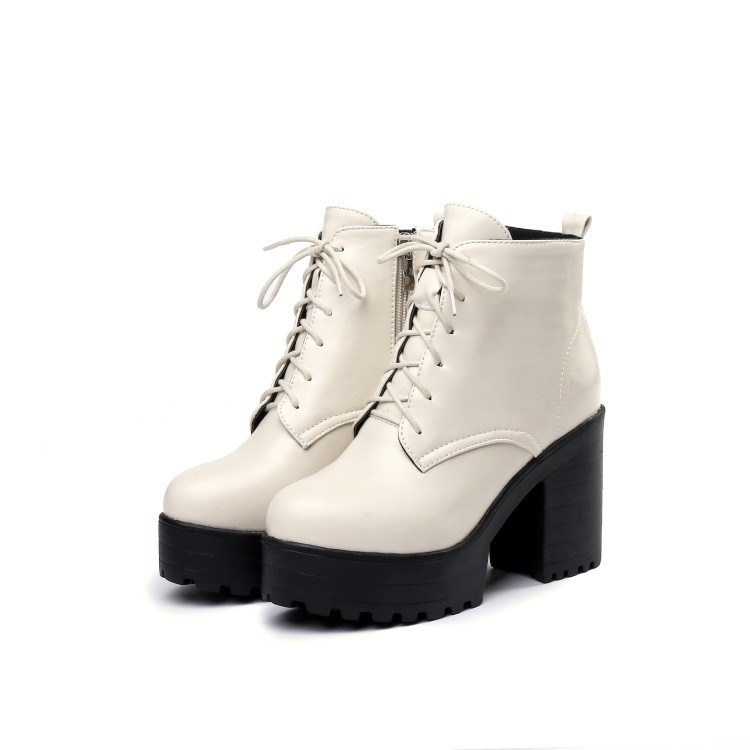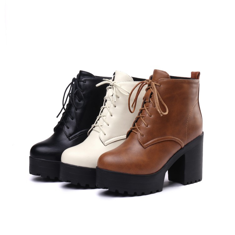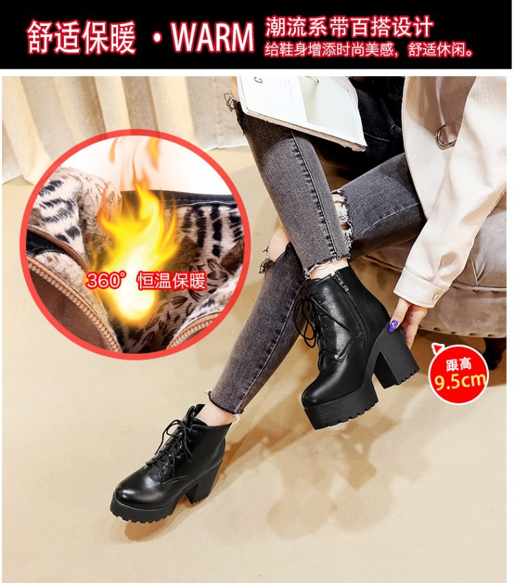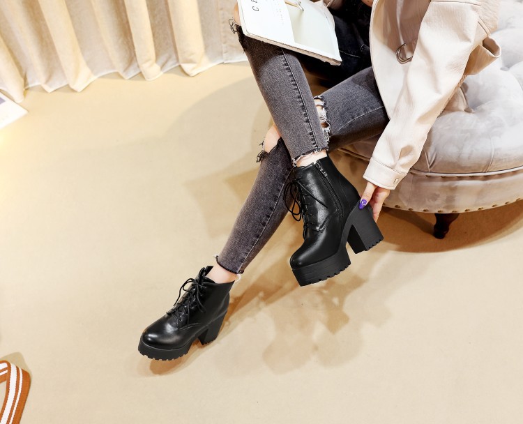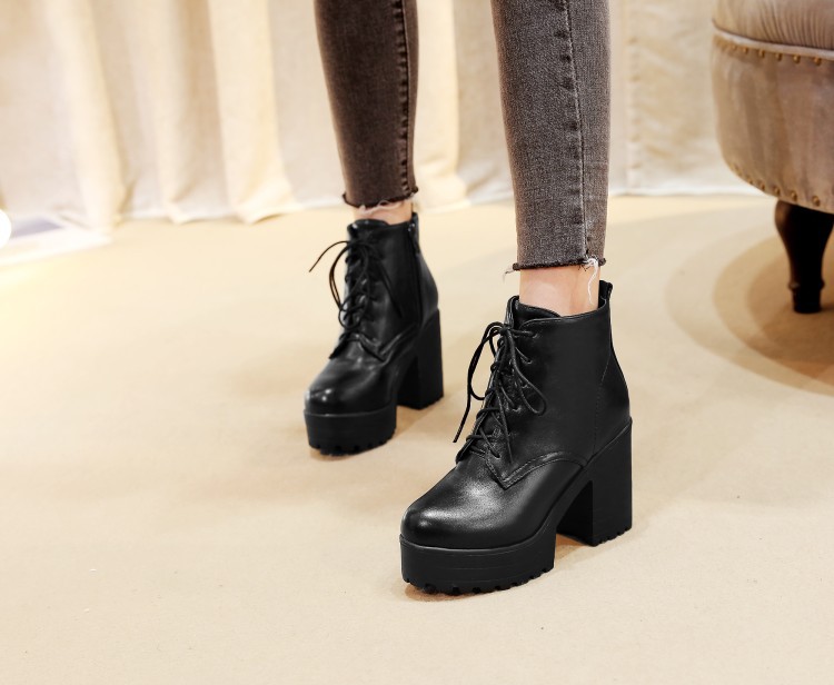 32-44 사이즈 마틴 부츠 18 가을 겨울 신상 하이힐 두꺼운 굽 짧은 부츠 두꺼운 굽 방수 플랫폼 싱글 부츠 여성화