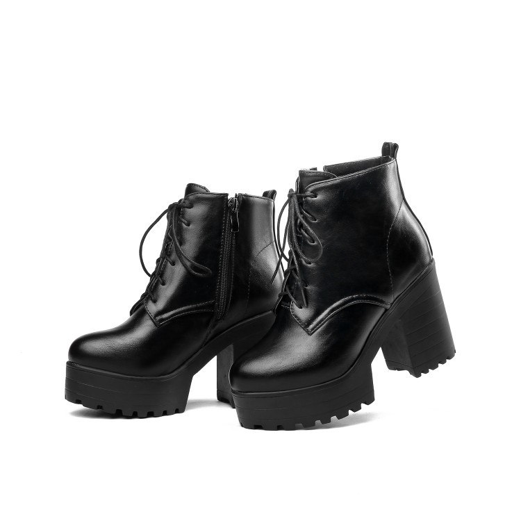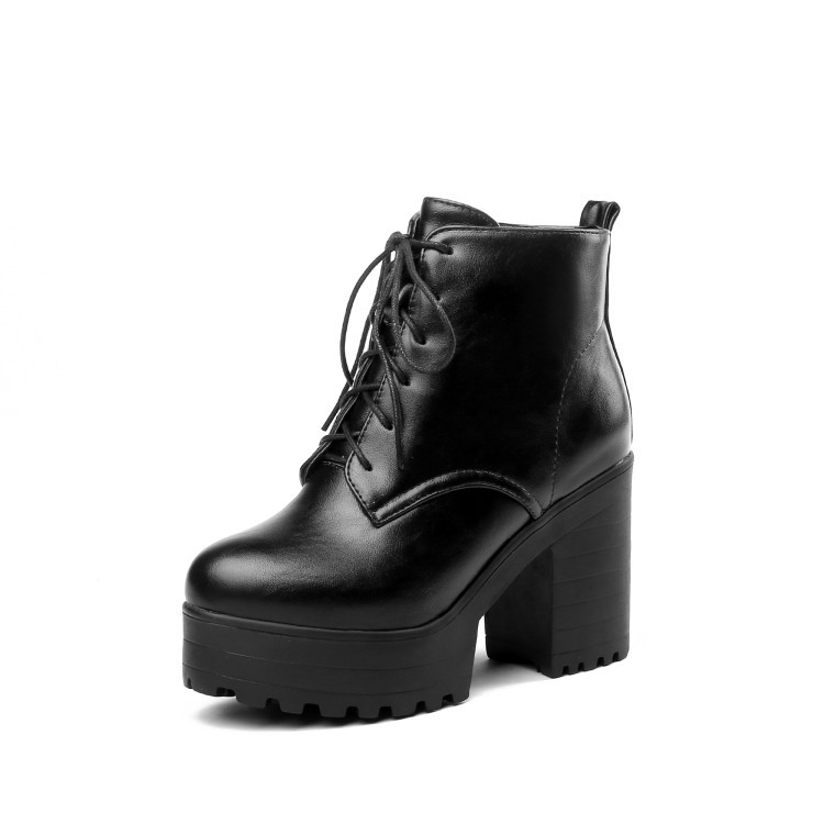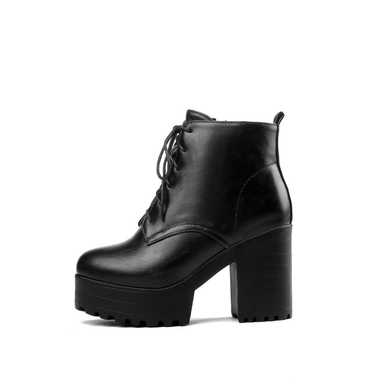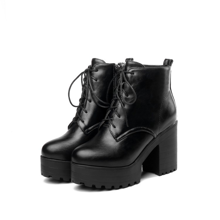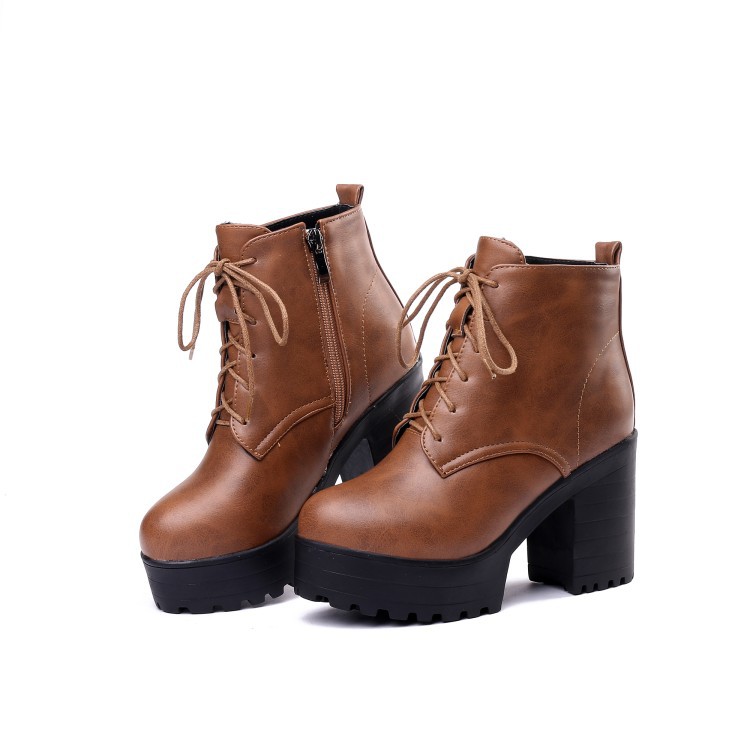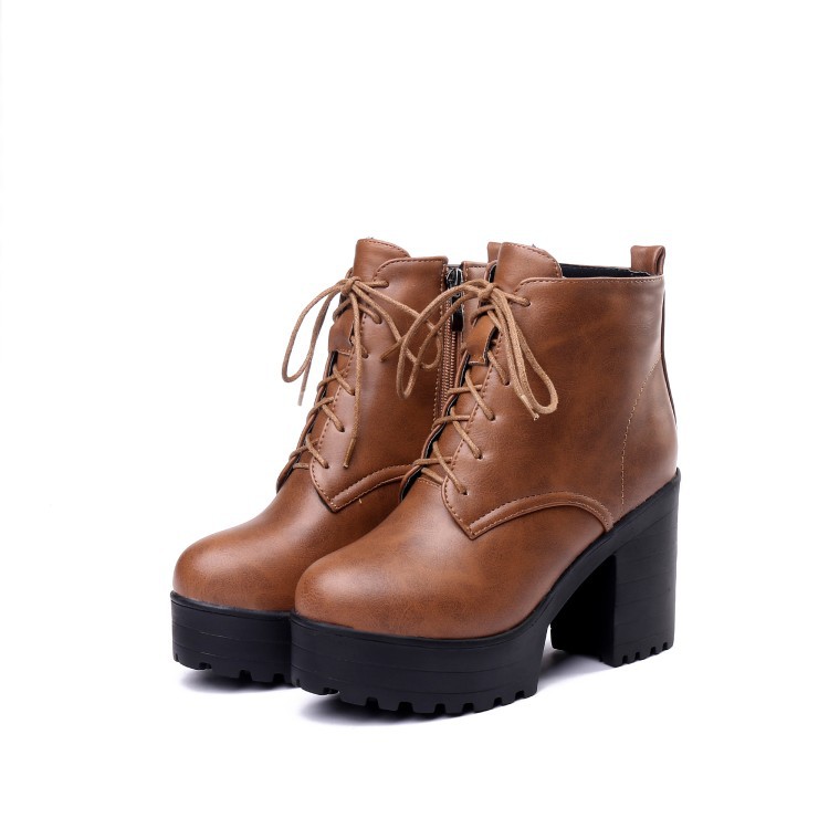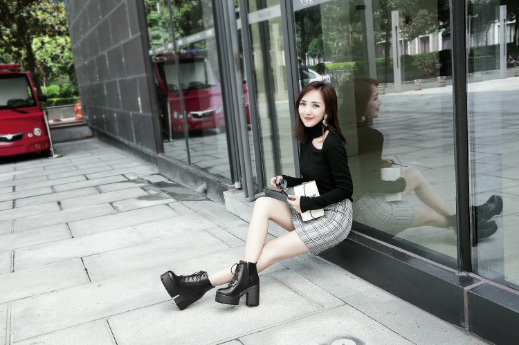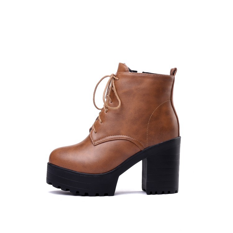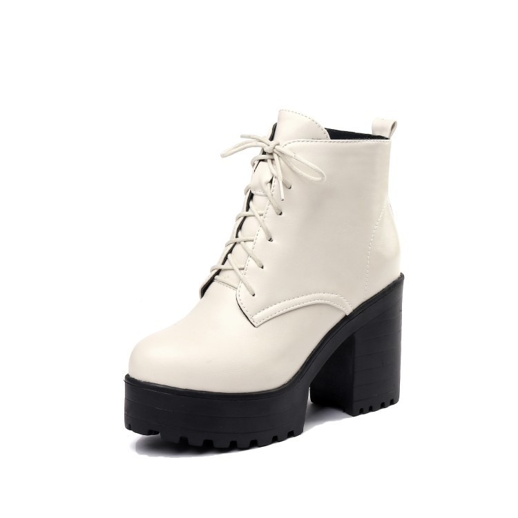 32-44 사이즈 마틴 부츠 18 가을 겨울 신상 하이힐 두꺼운 굽 짧은 부츠 두꺼운 굽 방수 플랫폼 싱글 부츠 여성화