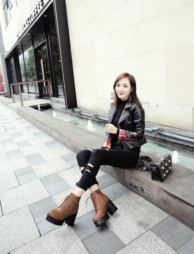 32-44 사이즈 마틴 부츠 18 가을 겨울 신상 하이힐 두꺼운 굽 짧은 부츠 두꺼운 굽 방수 플랫폼 싱글 부츠 여성화스토어 가기