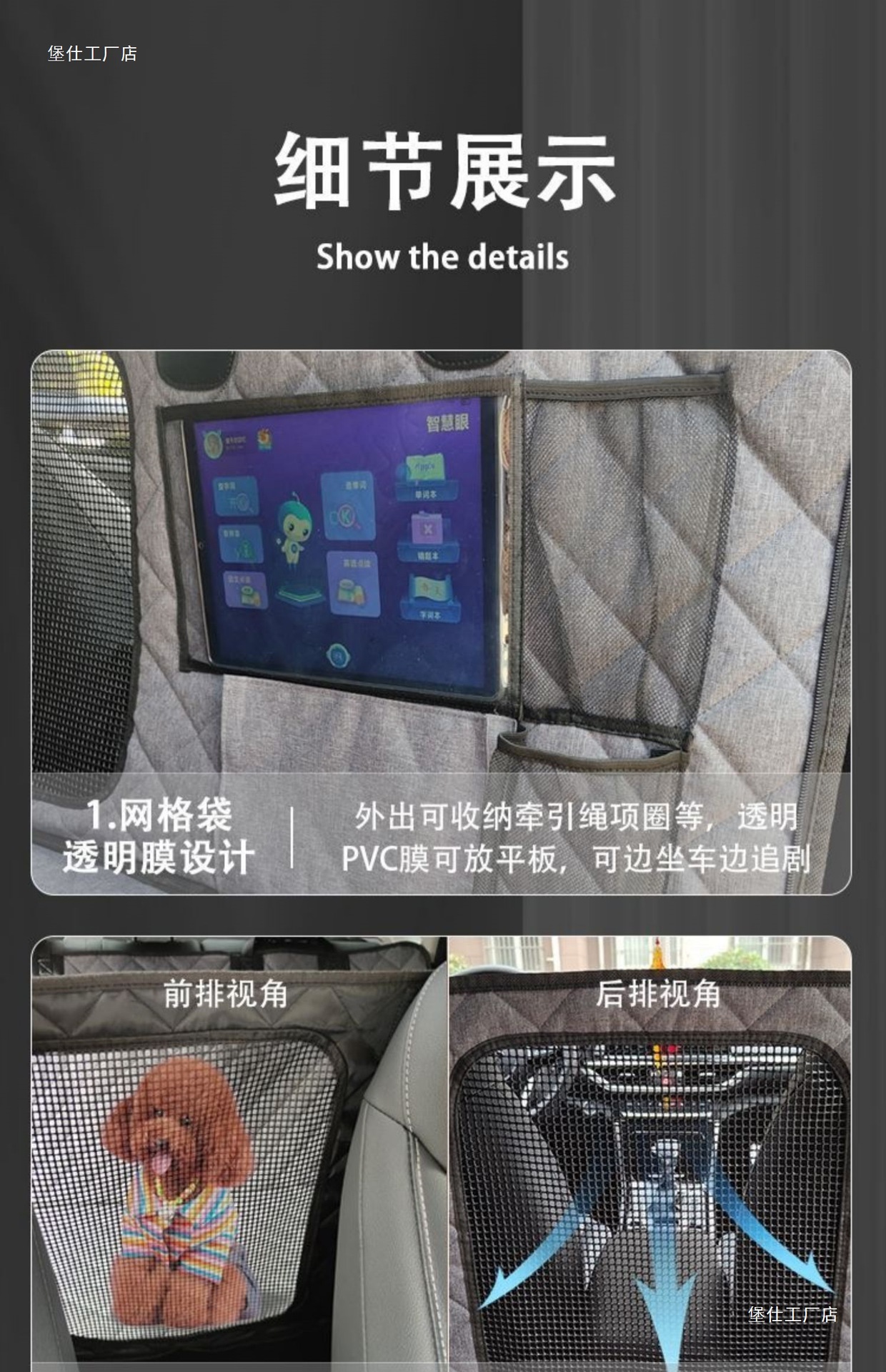 • 전용 두꺼운 그레이(하단 하중 지지) 애완동물과 함께 앉을 수 있음 + 중간 그물, 무료 벨트
