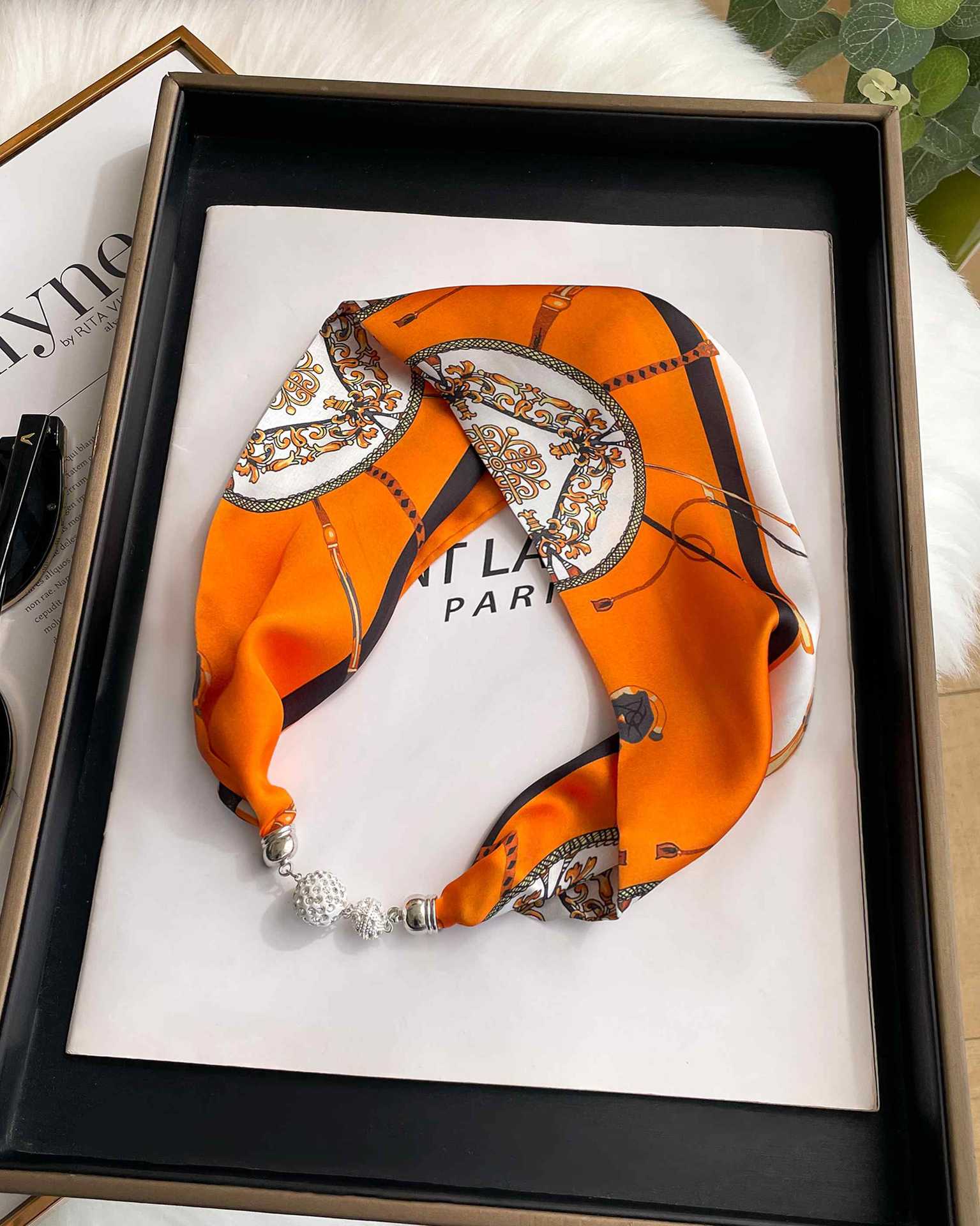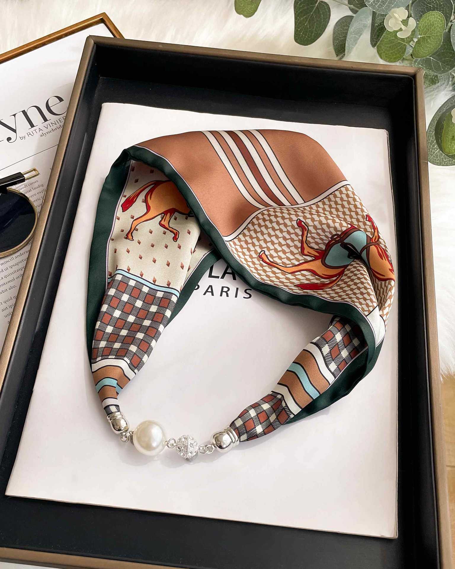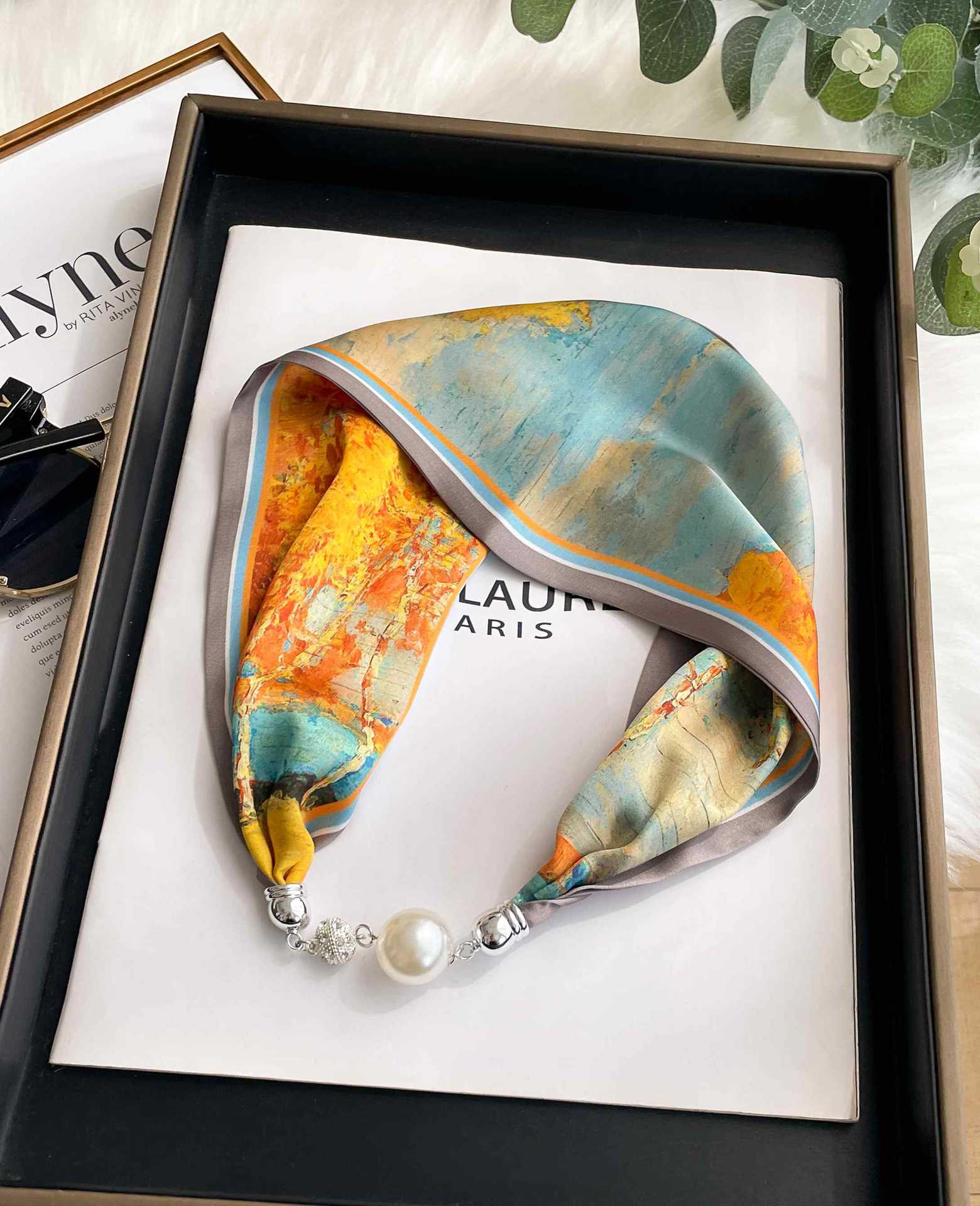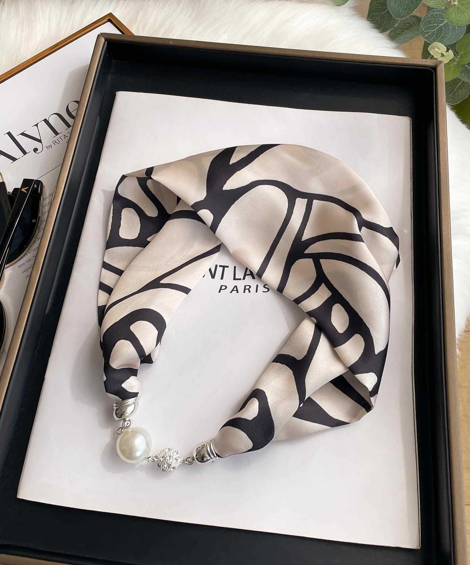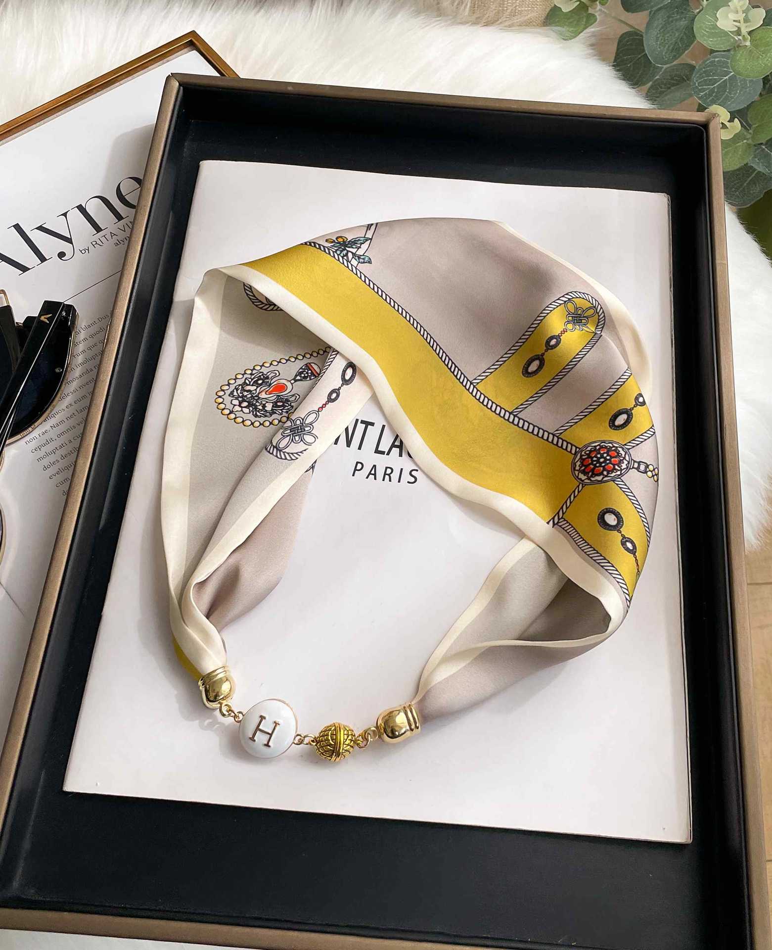 여성과 엄마를 위한 자석 버클 진주 목걸이, 작은 긴 스카프, 목 보호대, 게으른 사람들을 위한 셔츠 스카프, 얇은 스타일스토어 가기