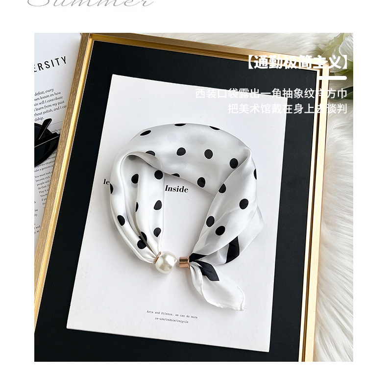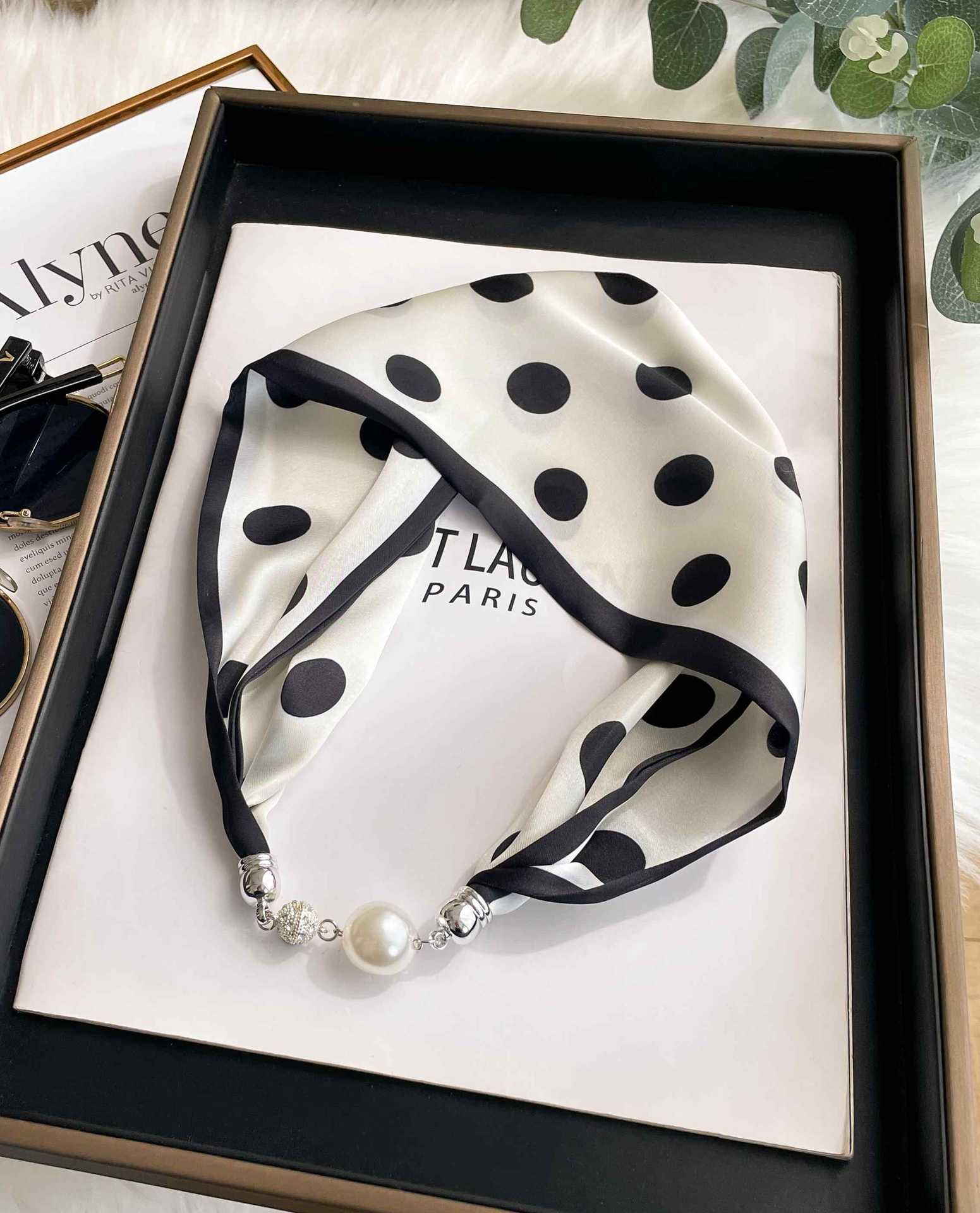 • Nanzhu 실크 스카프丨웨이브 도트 화이트