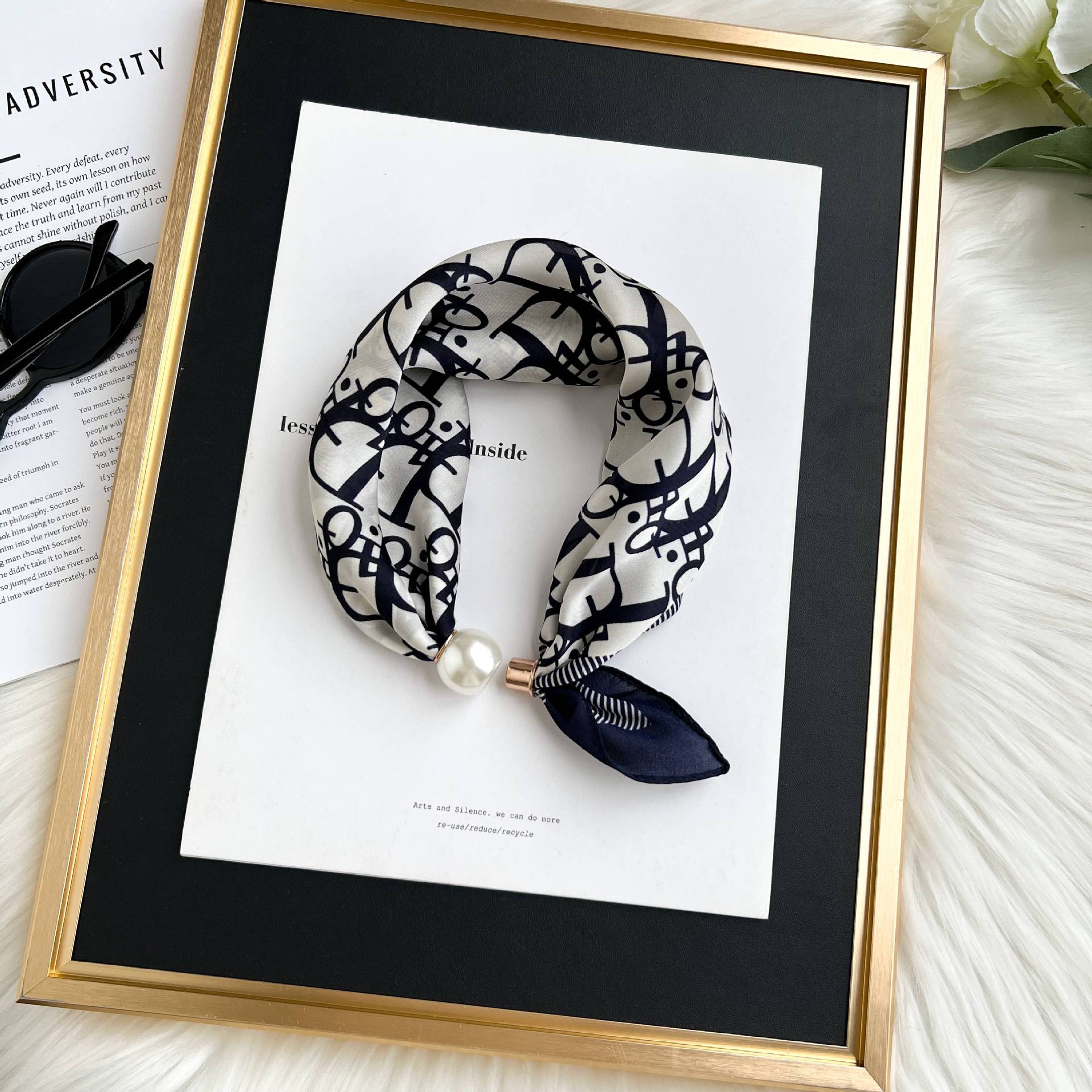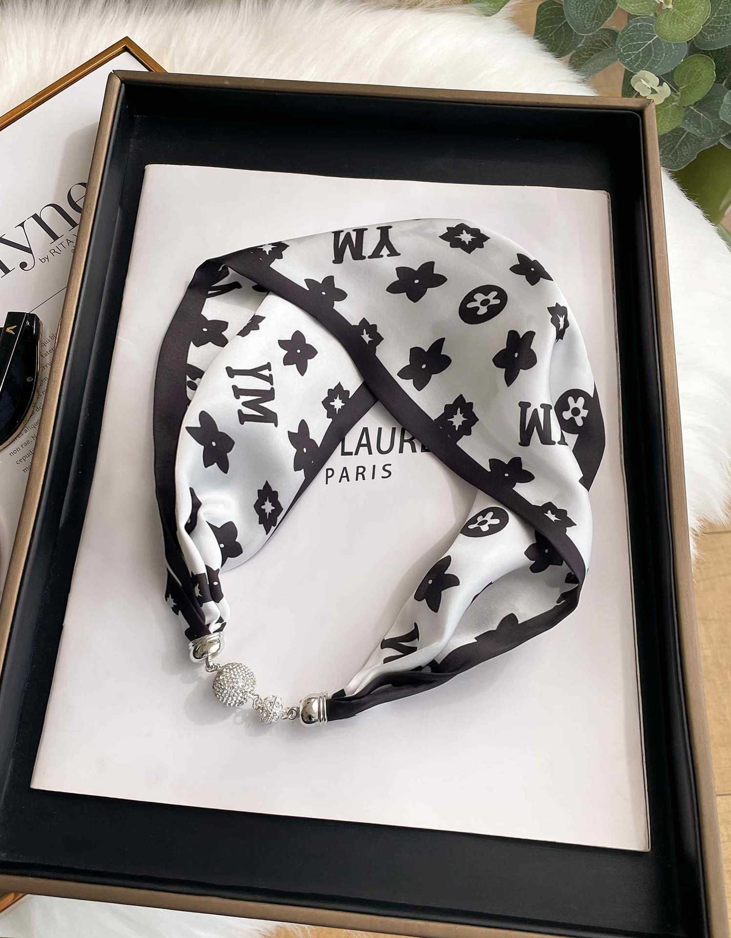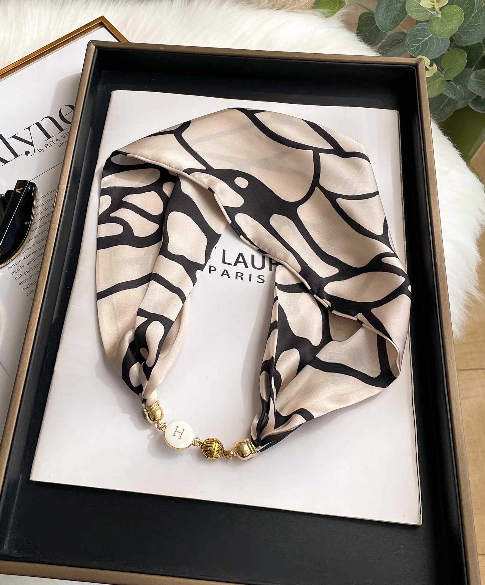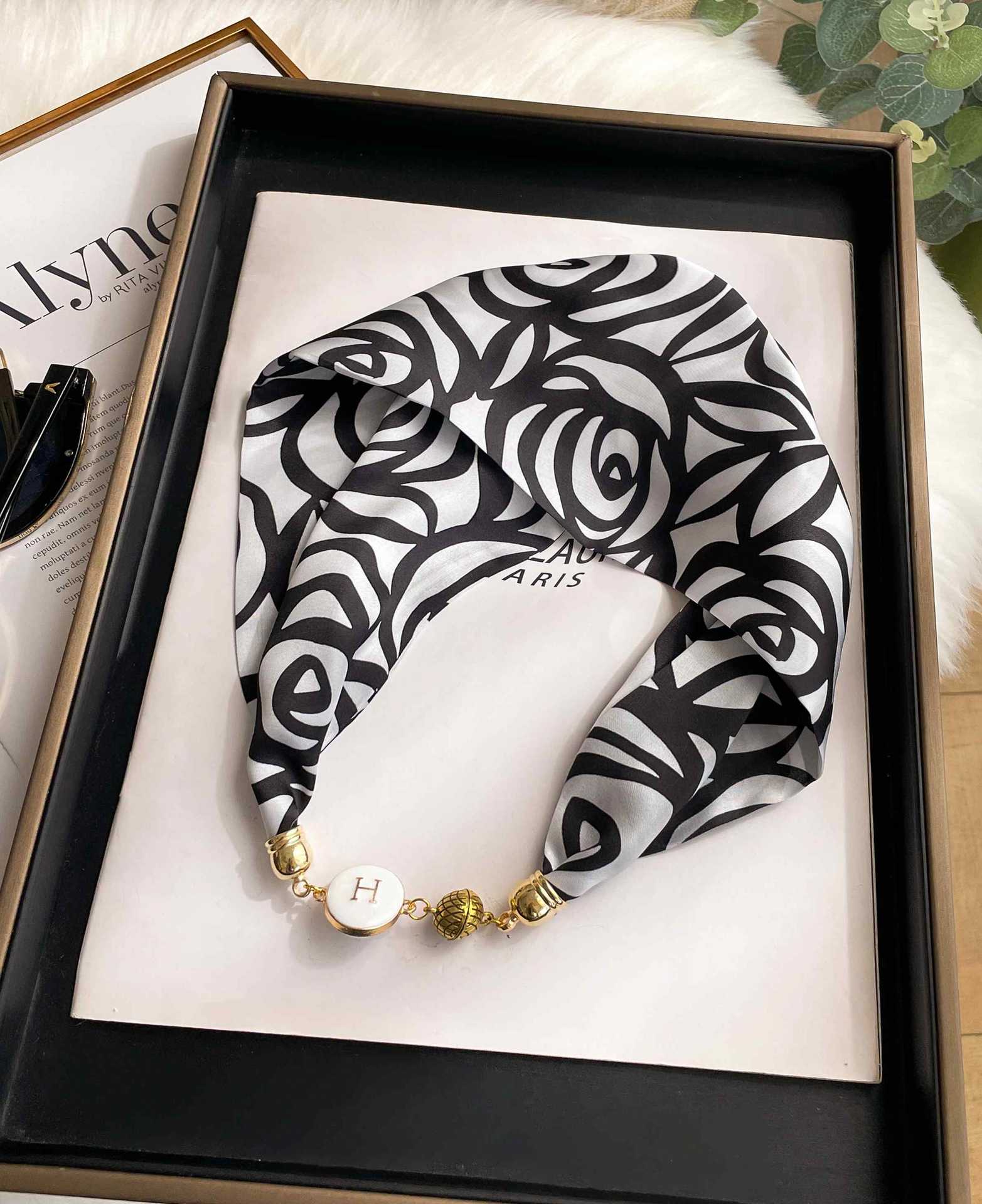 • Nanzhu 실크 스카프丨영어 검정색 테두리