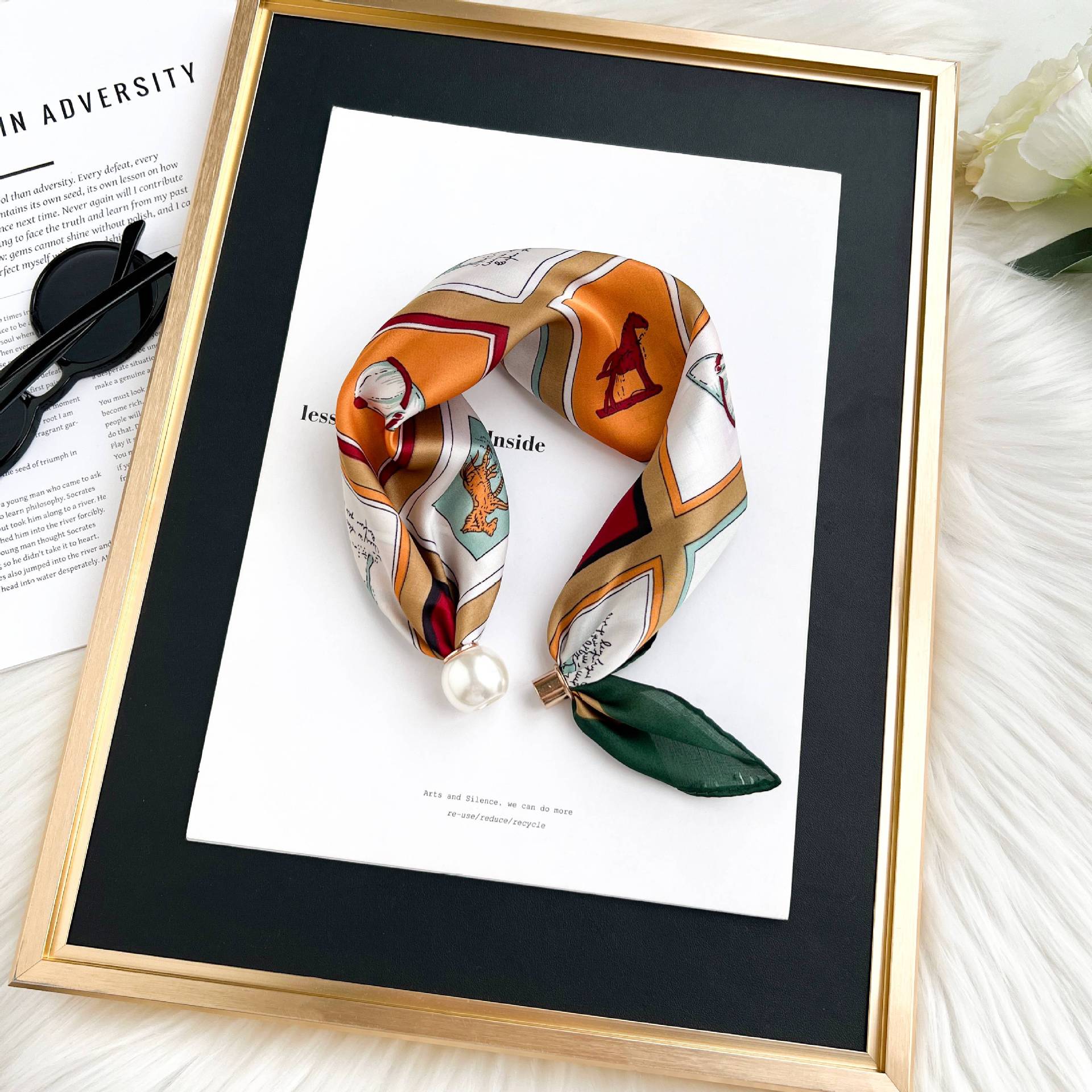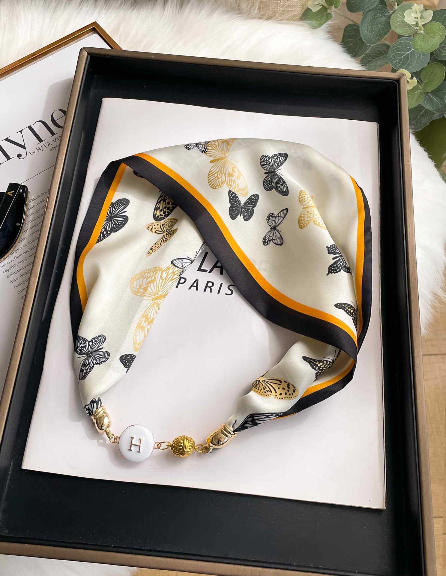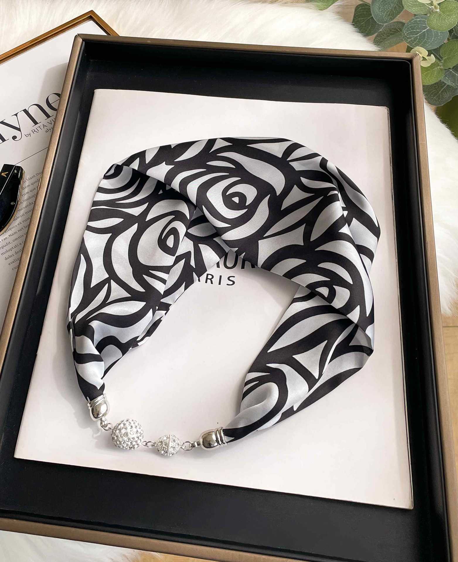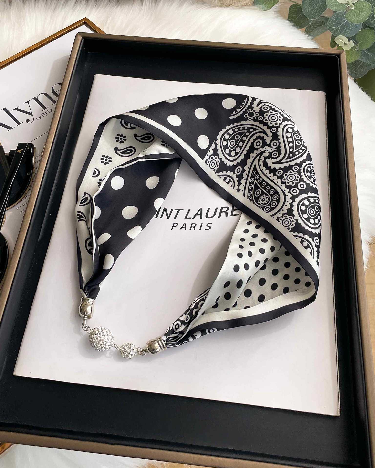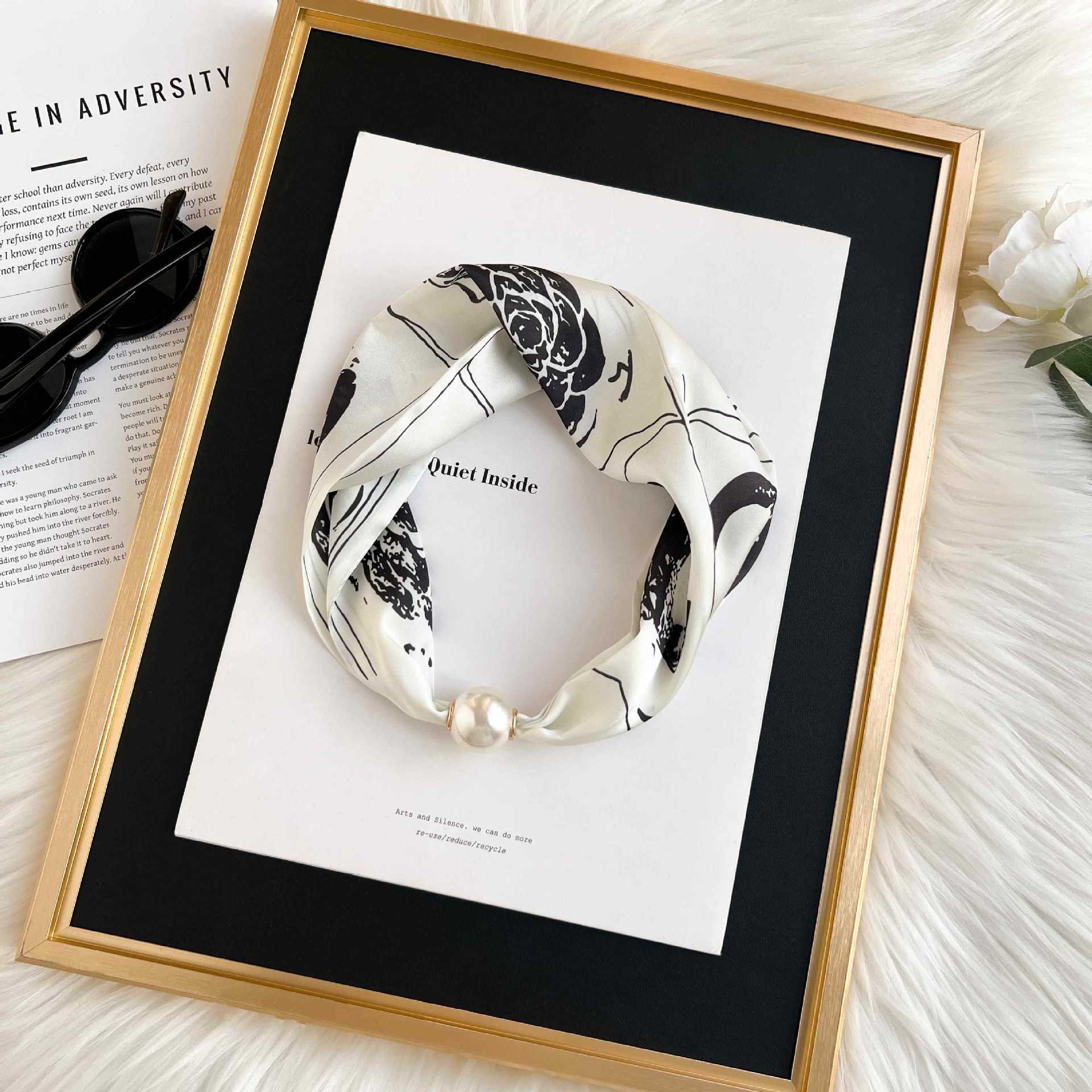 • Nanzhu 실크 스카프丨영어 검정색 테두리