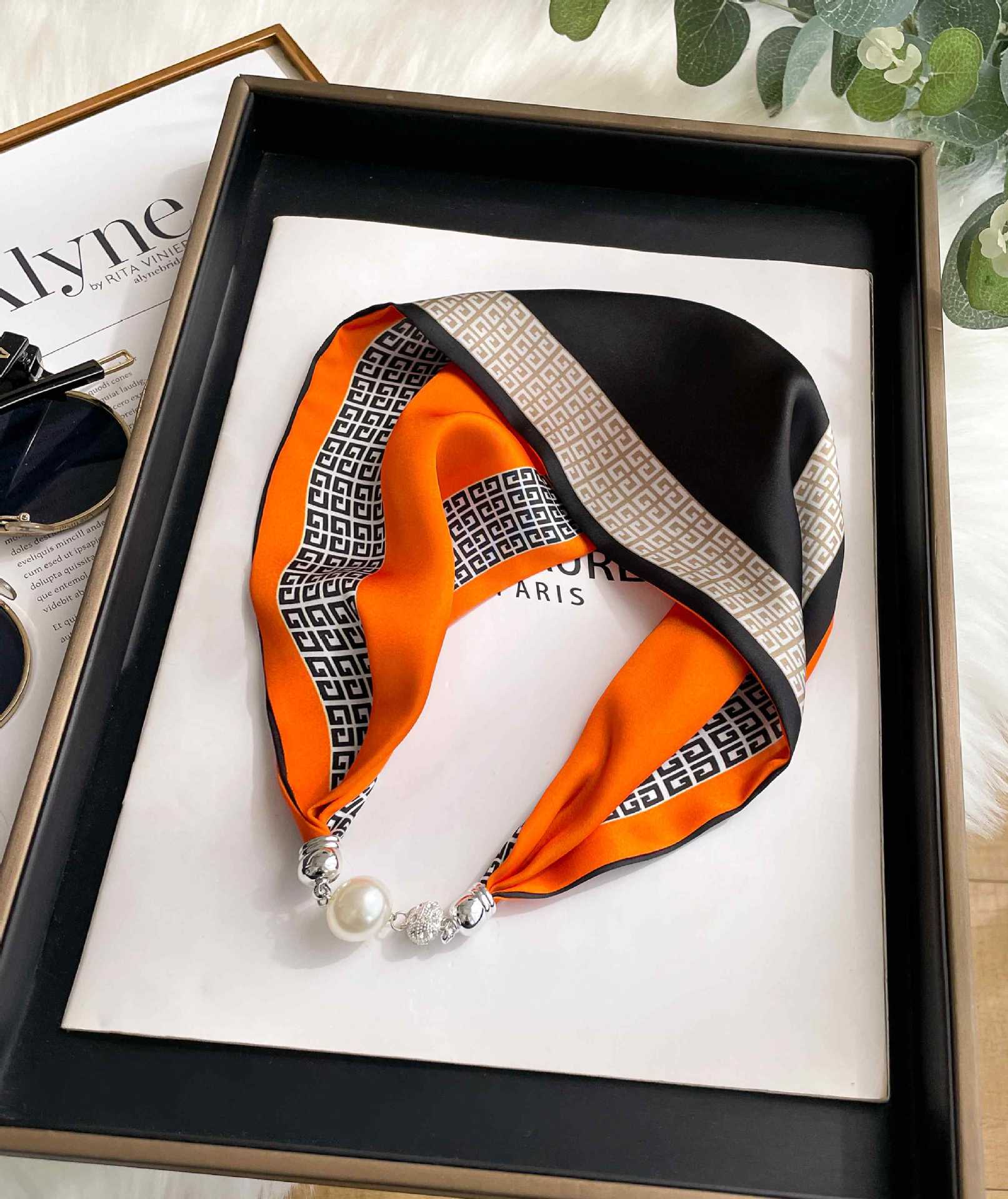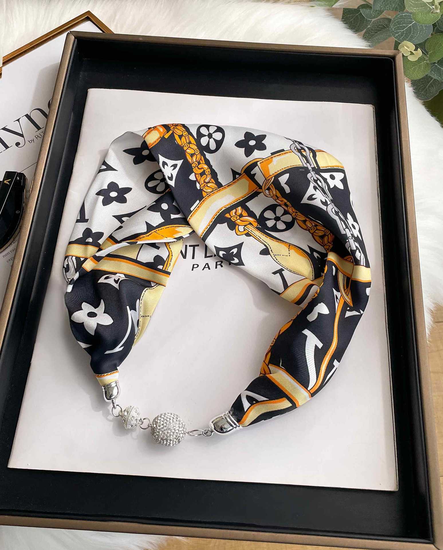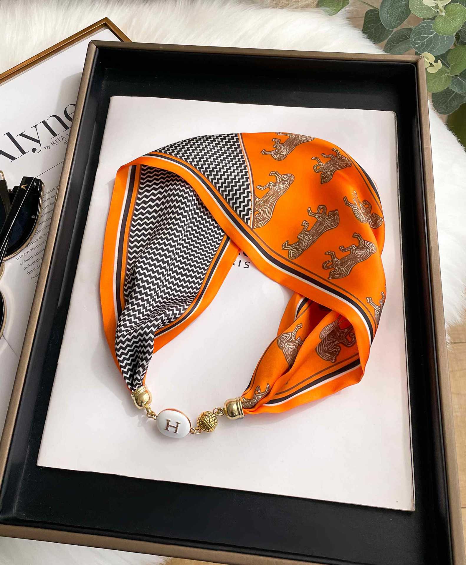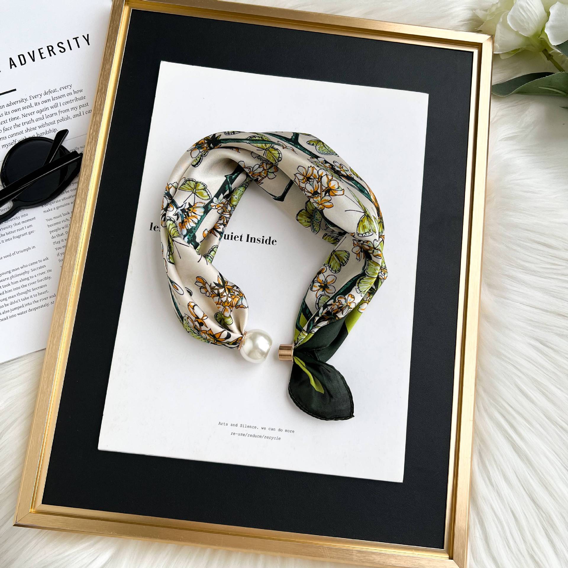 • Nanzhu 실크 스카프丨영어 검정색 테두리
