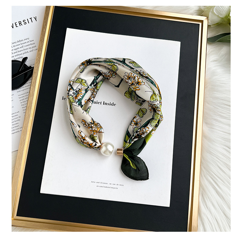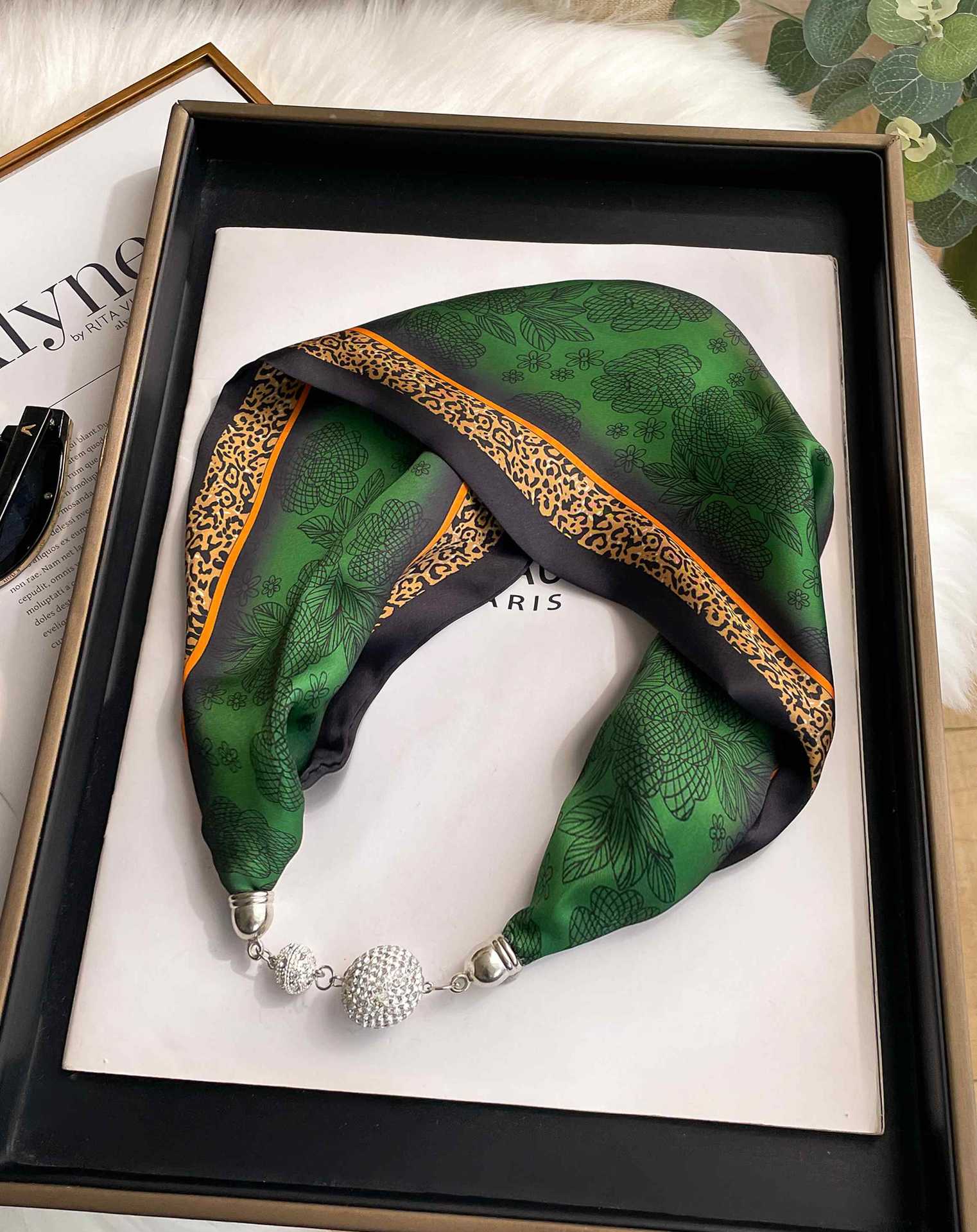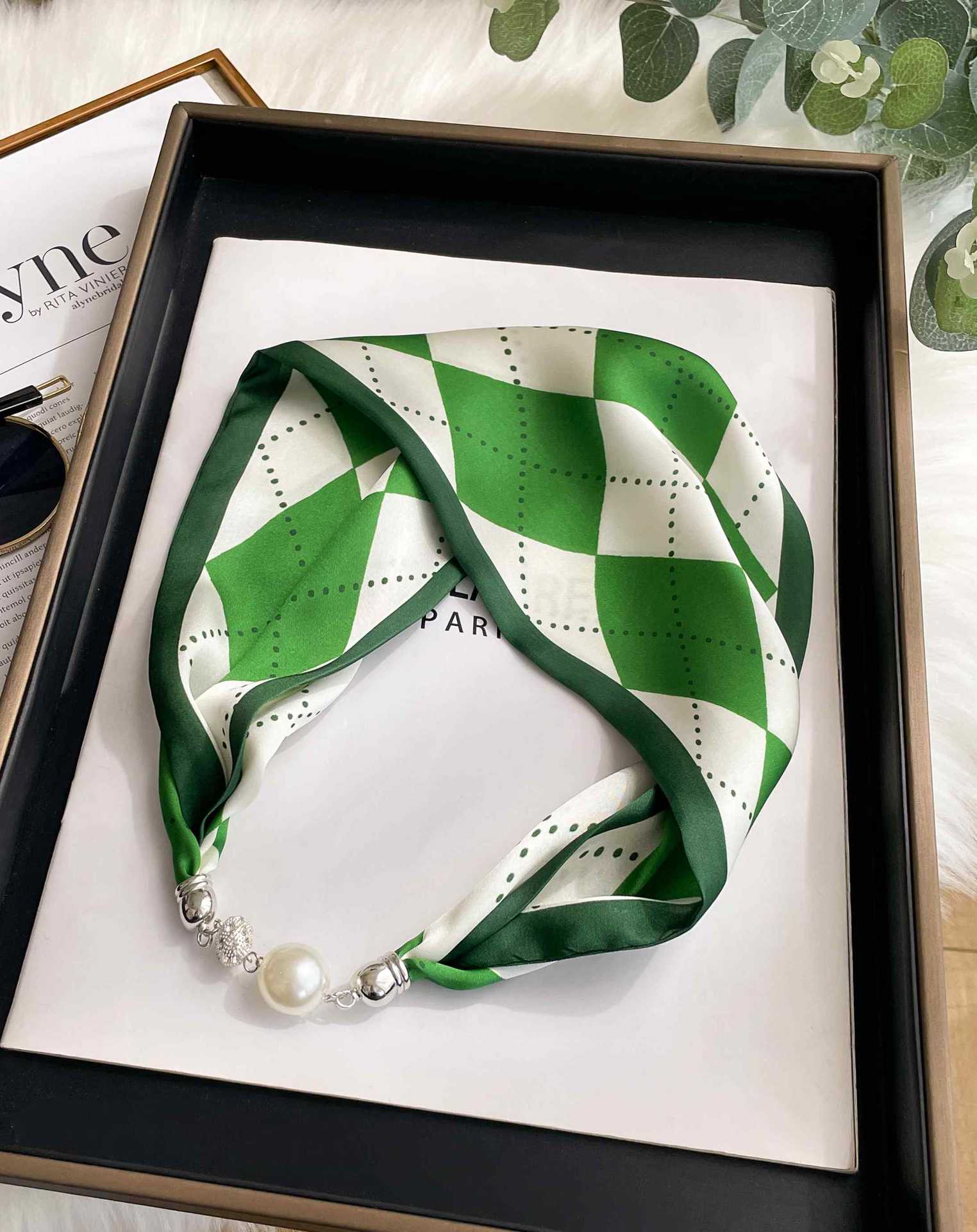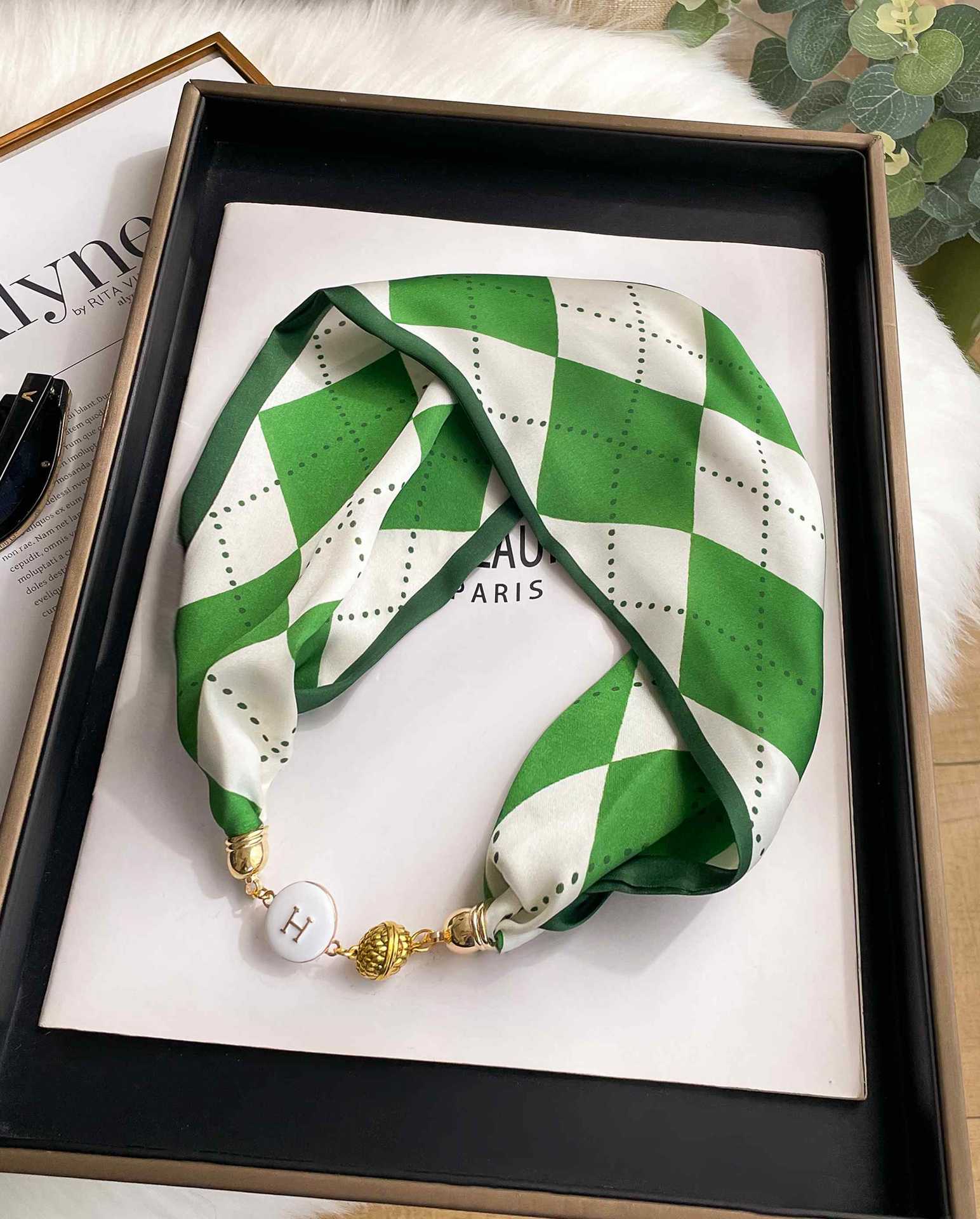 • Nanzhu 실크 스카프丨격자 포니 그린 엣지
