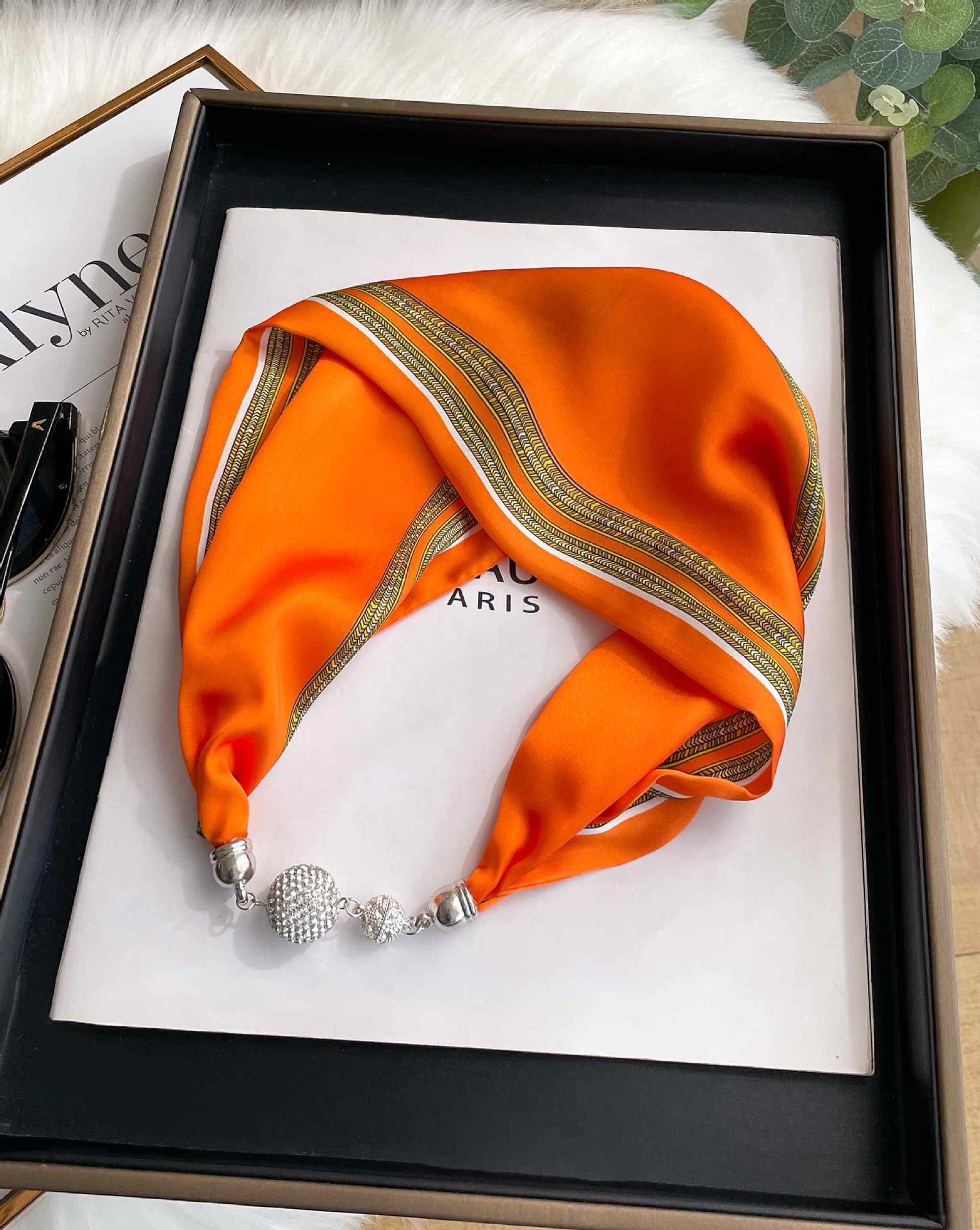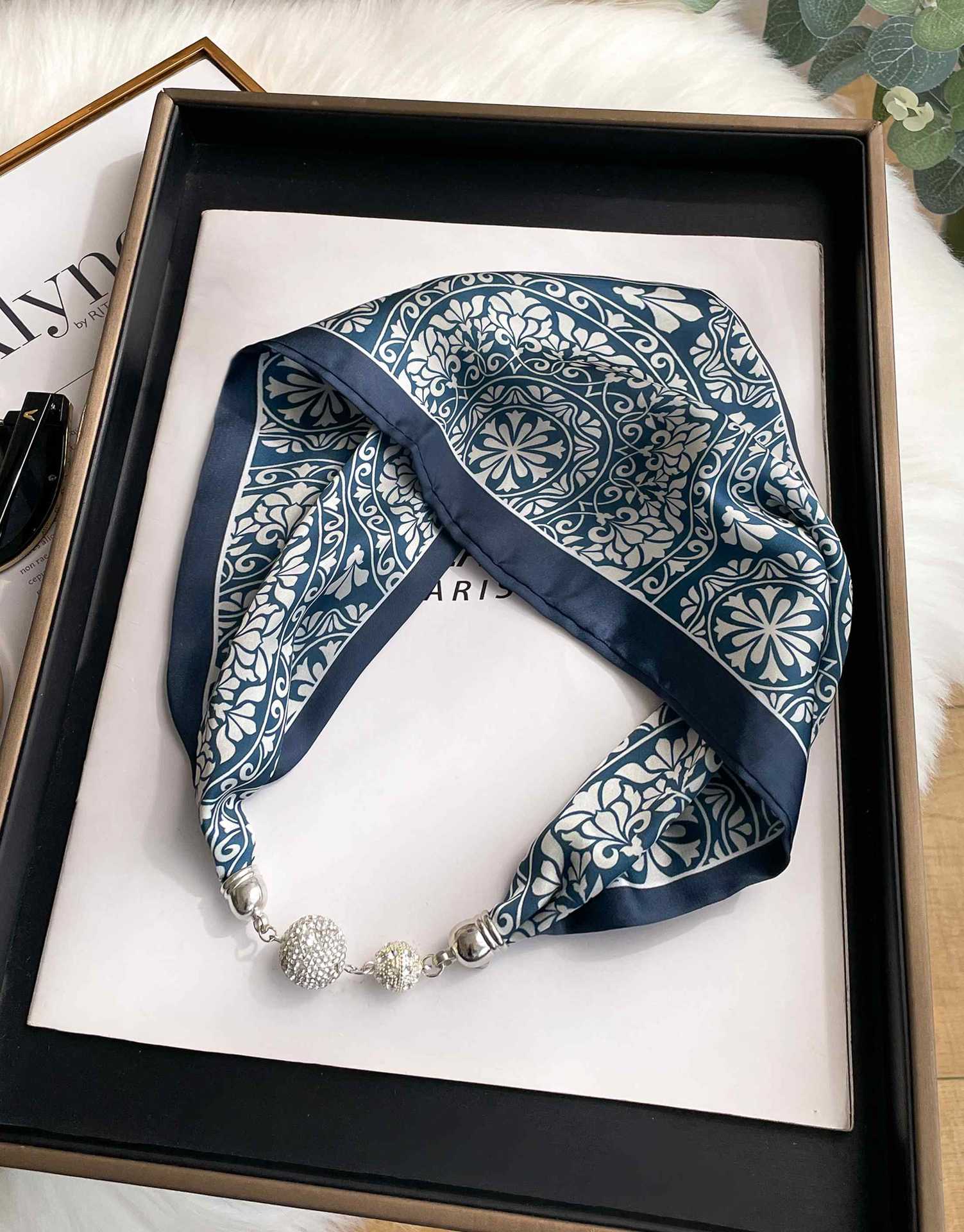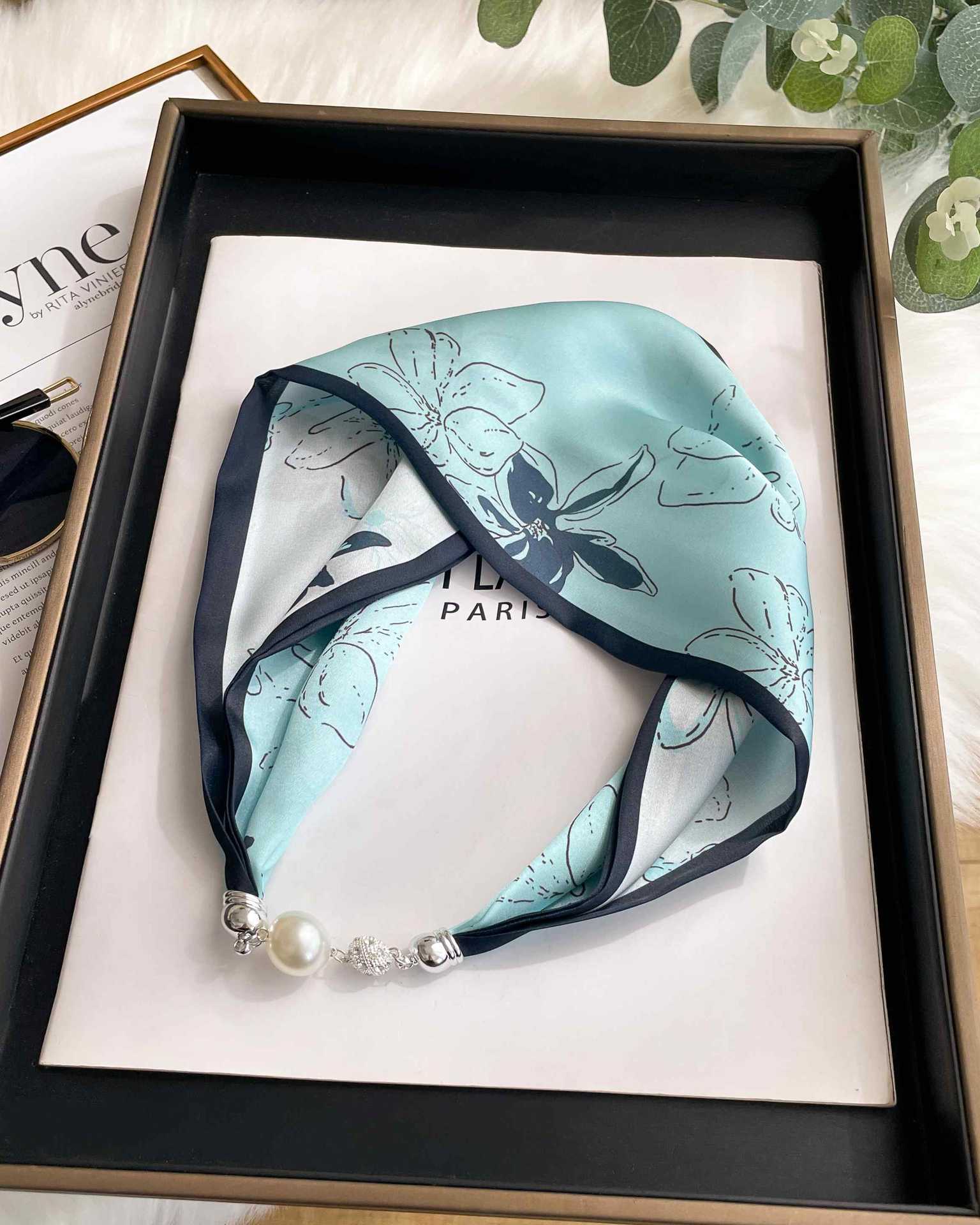 • 난주 실크 스카프丨피콕 블루 캐슈넛