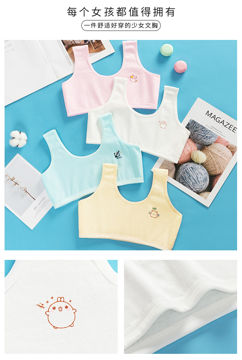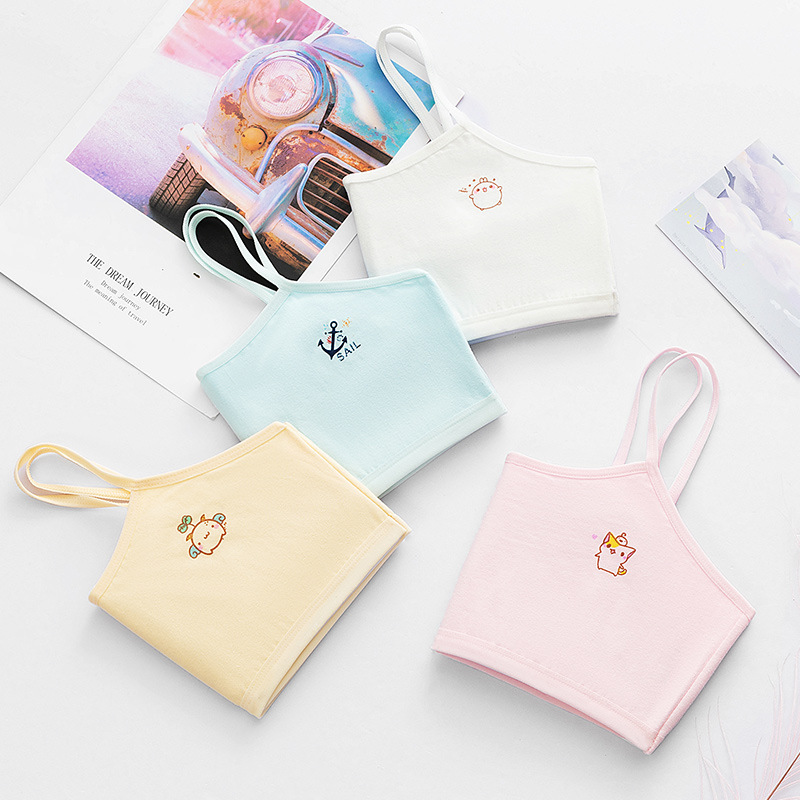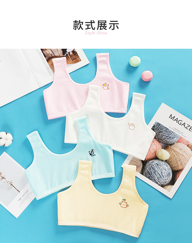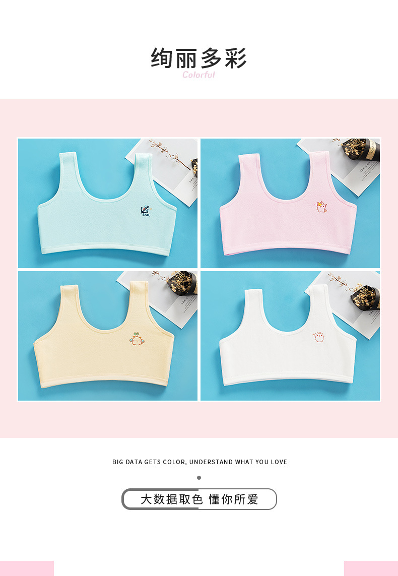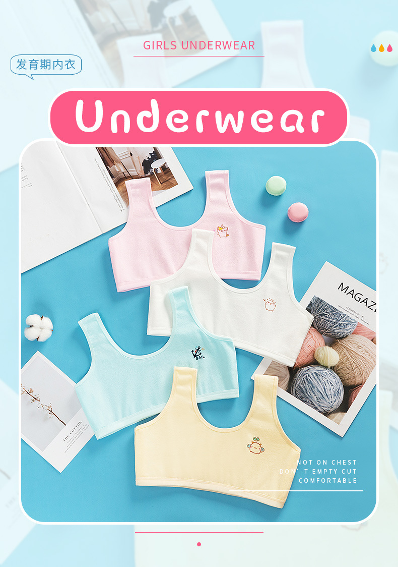 순면 더블 레이어 발달 기간 소녀 조끼 4 색 만화 소녀 튜브 탑 큰 어린이 초등학생 중학생 속옷스토어 가기