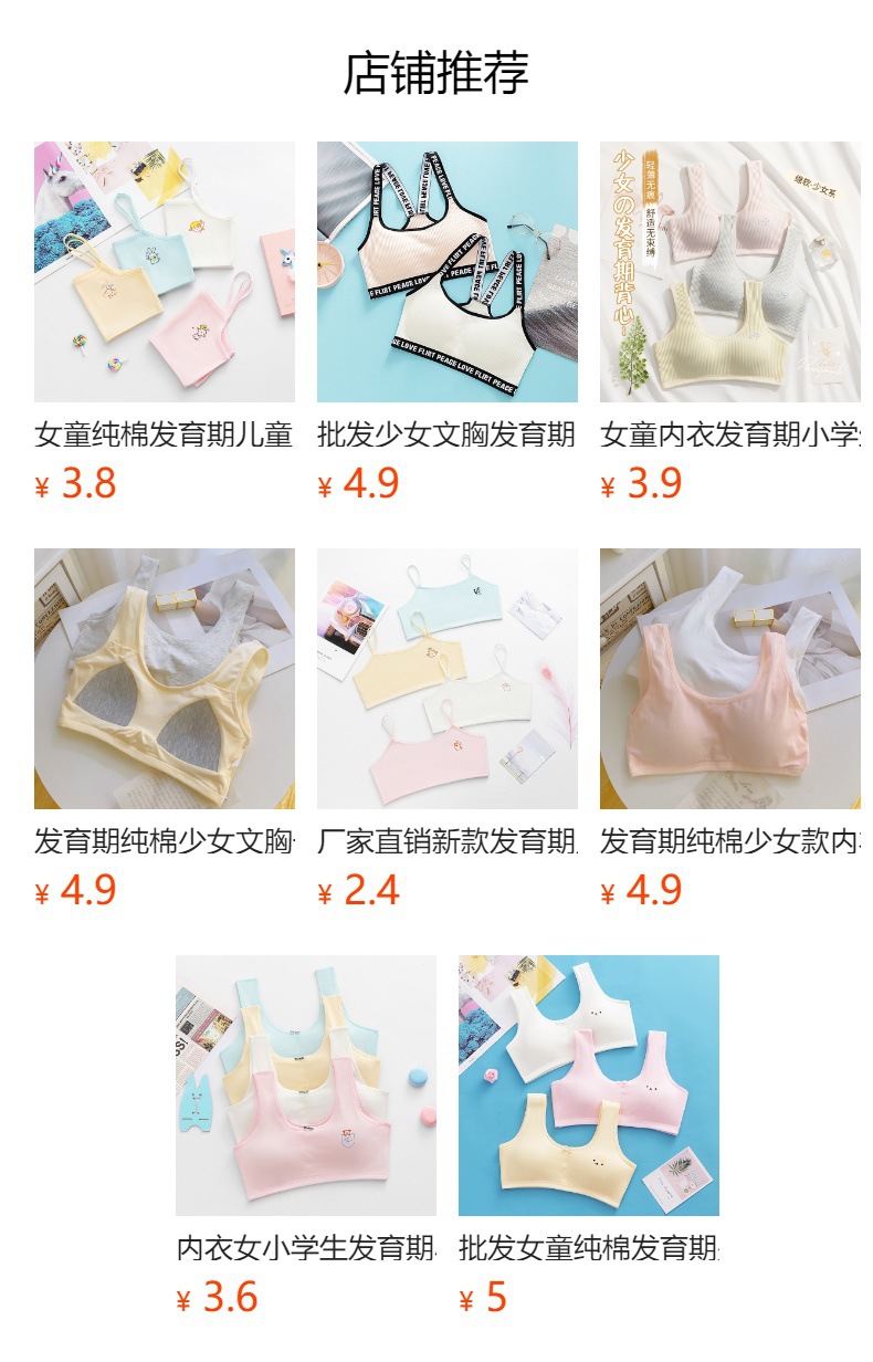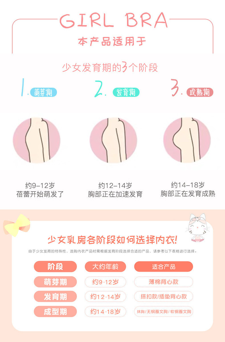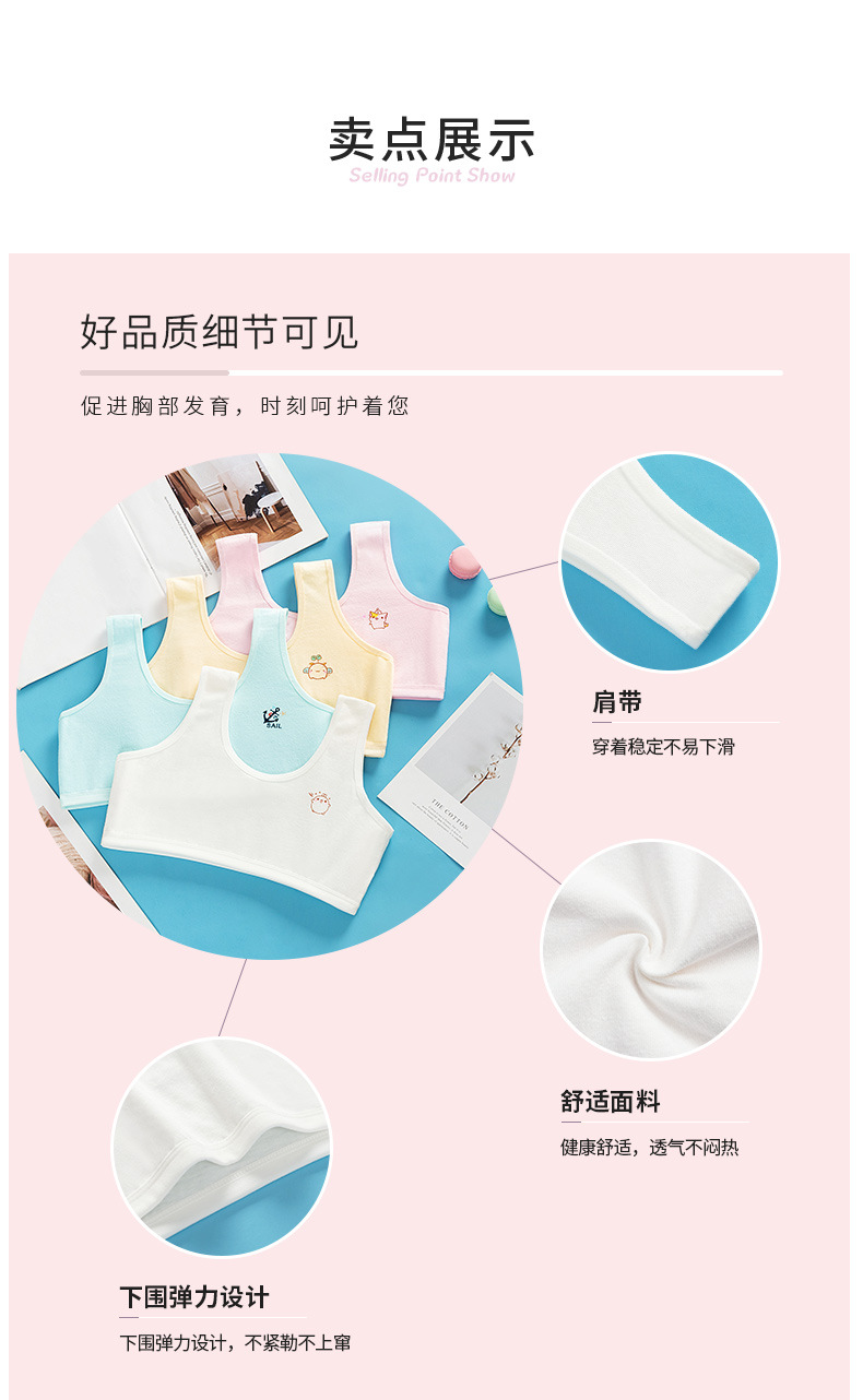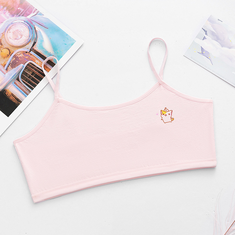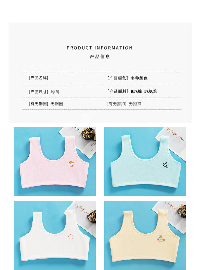 순면 더블 레이어 발달 기간 소녀 조끼 4 색 만화 소녀 튜브 탑 큰 어린이 초등학생 중학생 속옷스토어 가기
