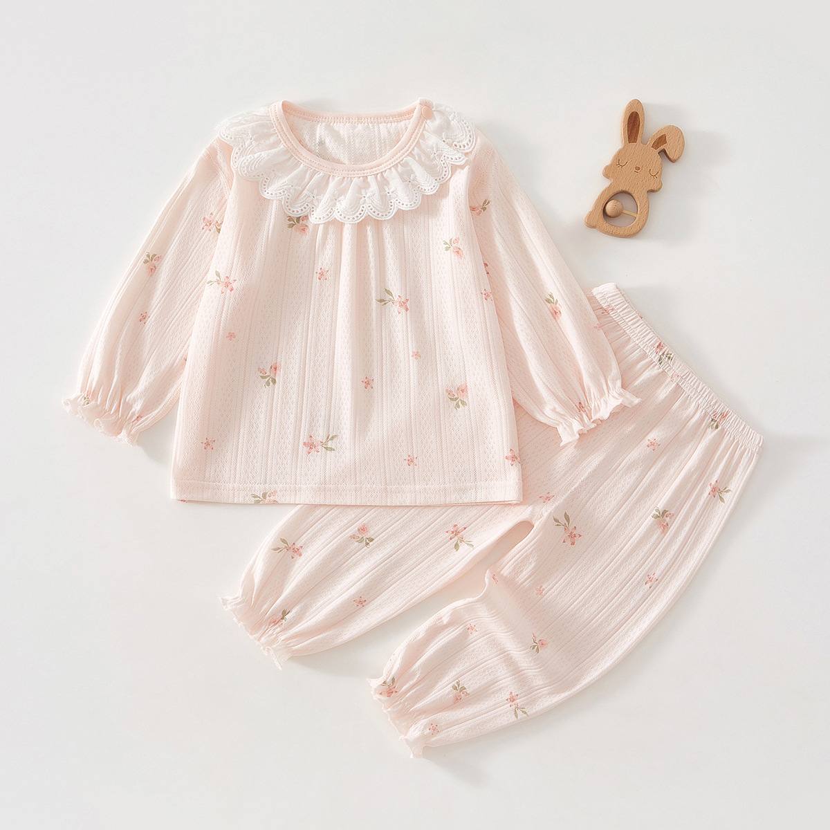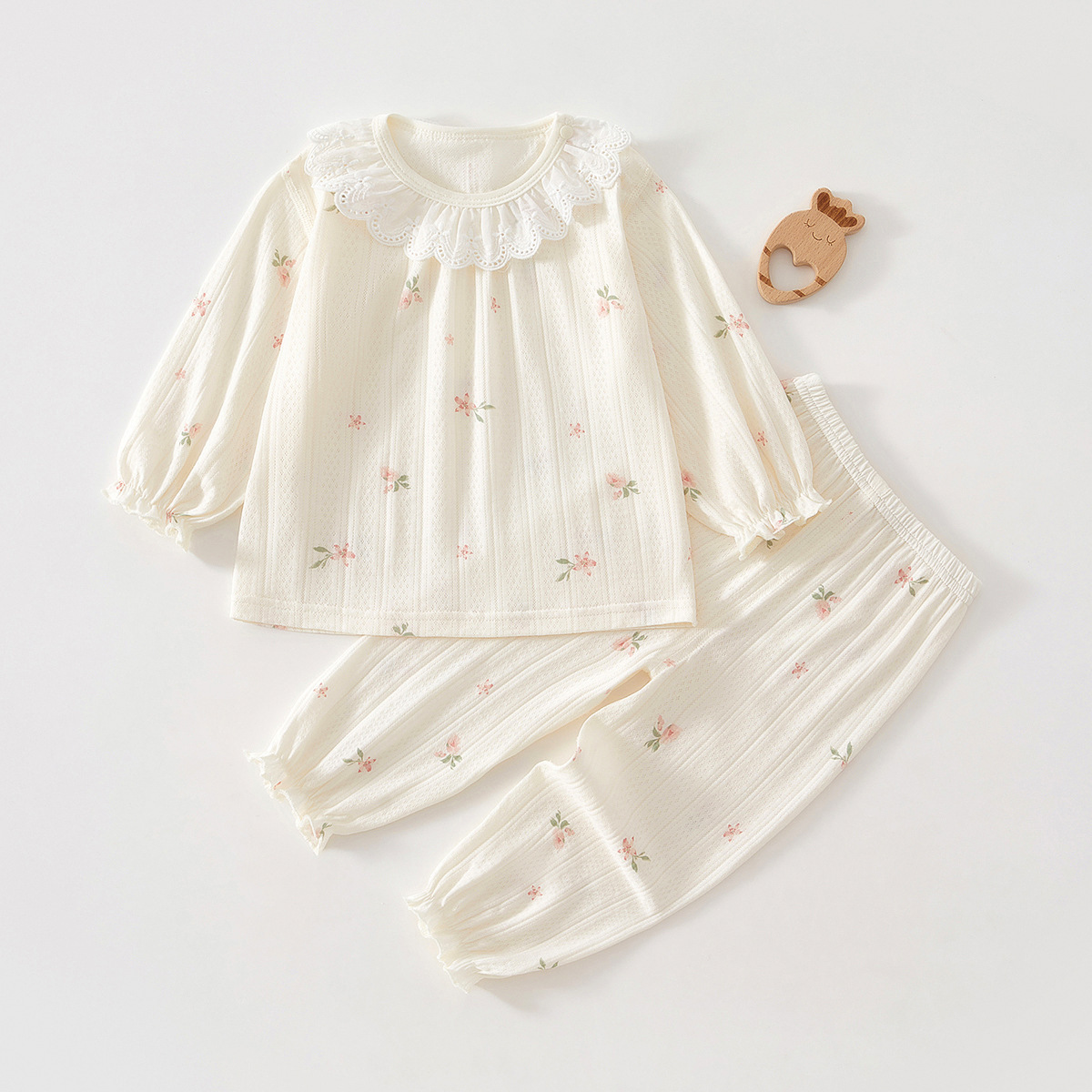 아기 여름 긴팔 양복, 레이스링 밀착 잠옷, 여아 스플릿 양복, 가볍고 통기성이 좋은 에어컨 양복