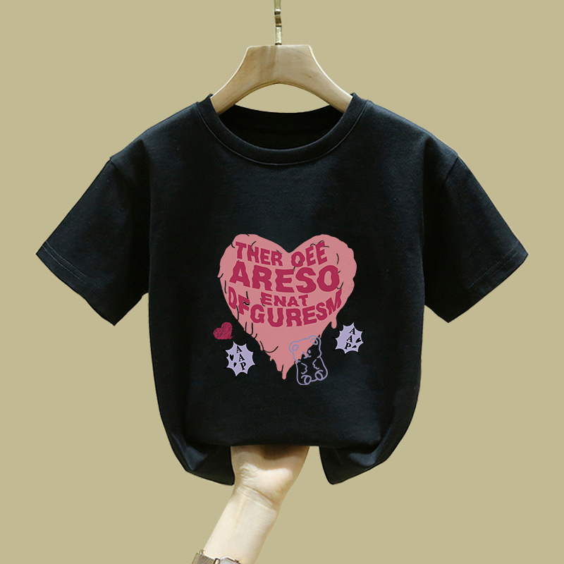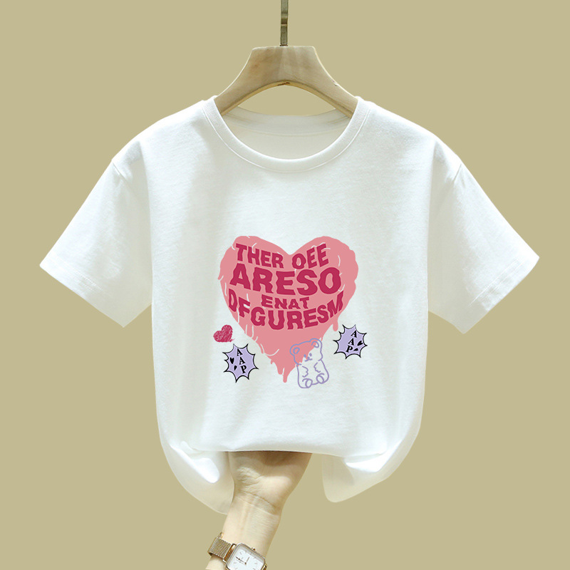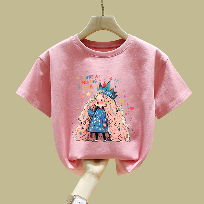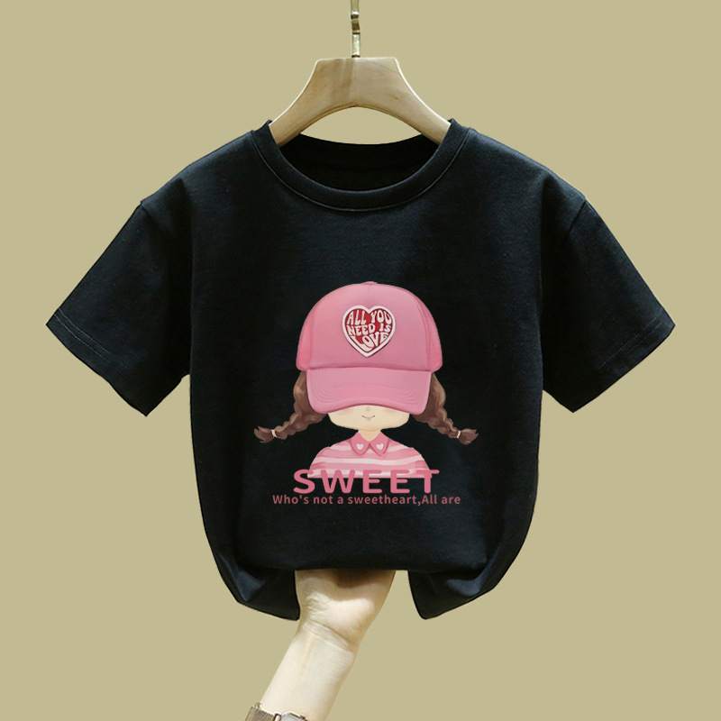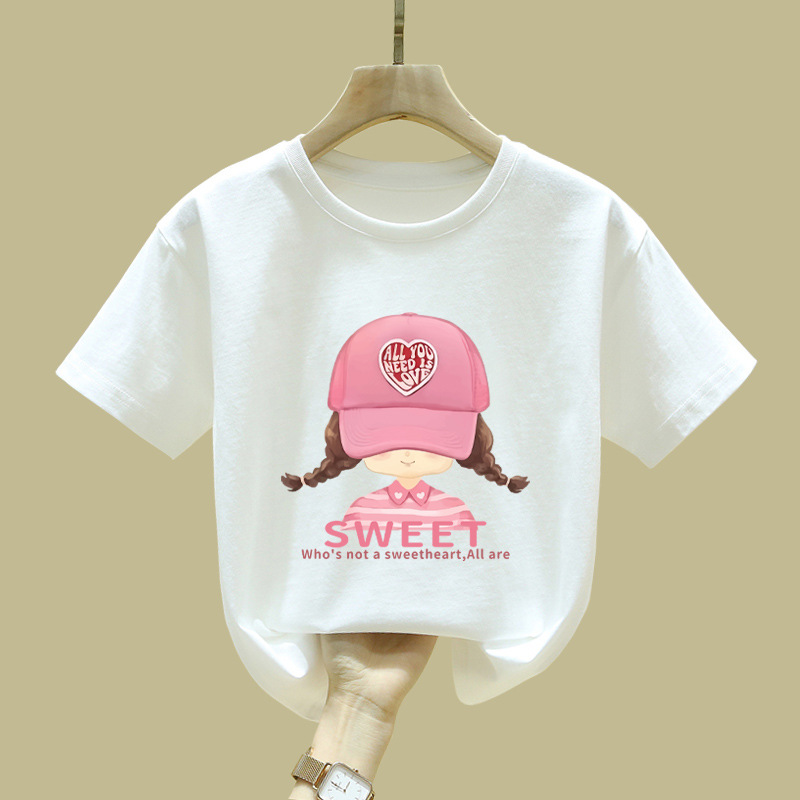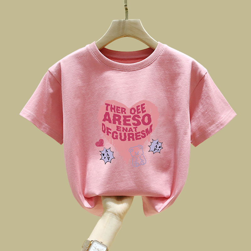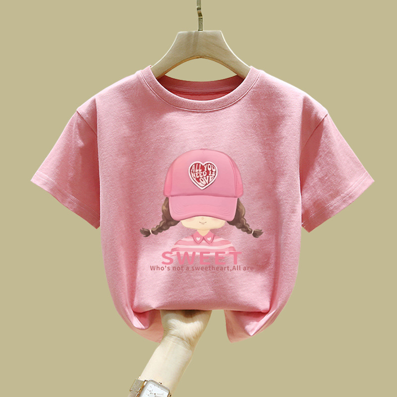 중대형 어린이 반팔 면 티셔츠 여름 신작 아동복 세련된 소녀 패션 반팔 핑크 탑 인