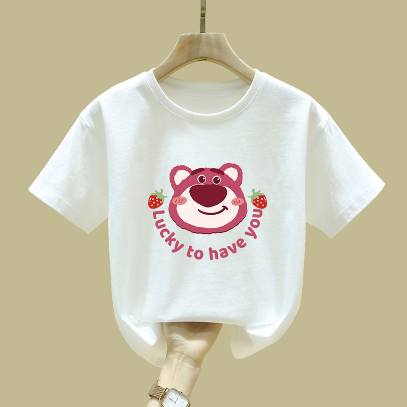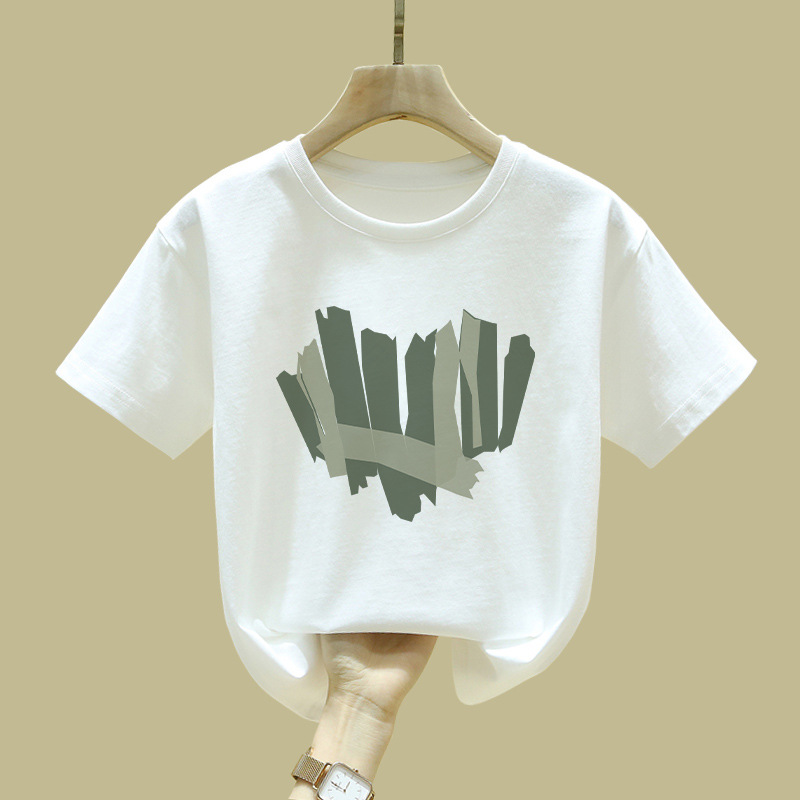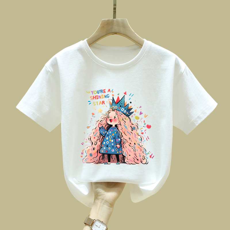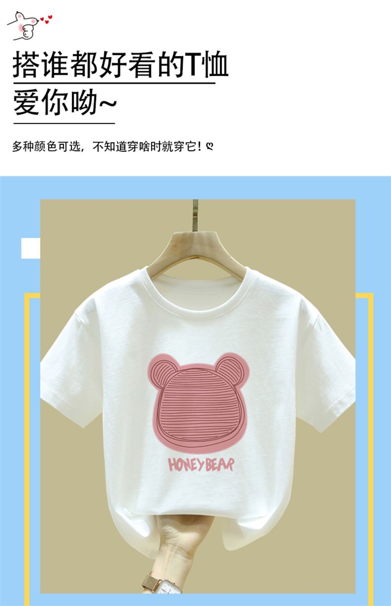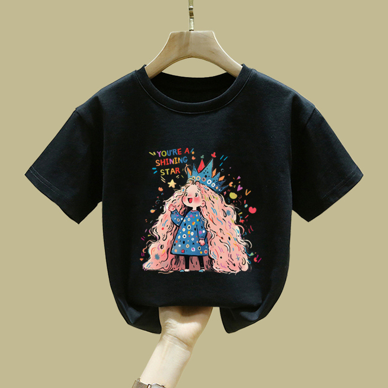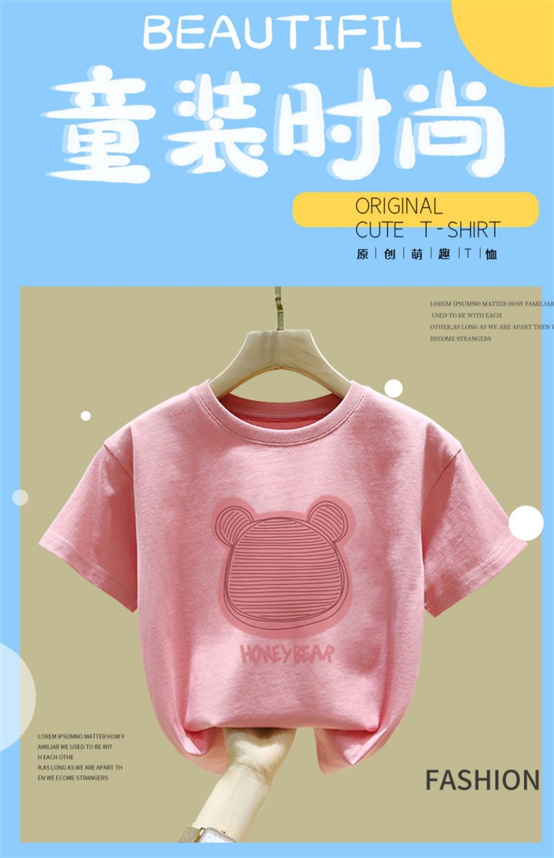 중대형 어린이 반팔 면 티셔츠 여름 신작 아동복 세련된 소녀 패션 반팔 핑크 탑 인