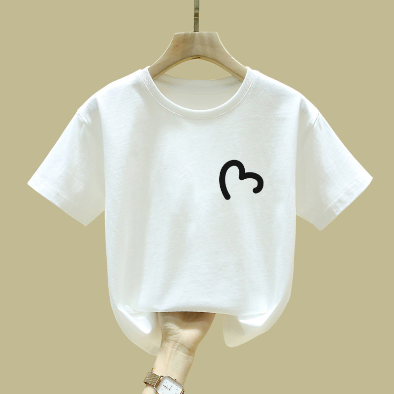 중대형 어린이 반팔 면 티셔츠 여름 신작 아동복 세련된 소녀 패션 반팔 핑크 탑 인스토어 가기