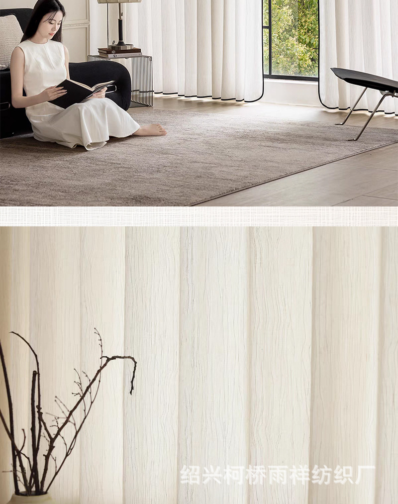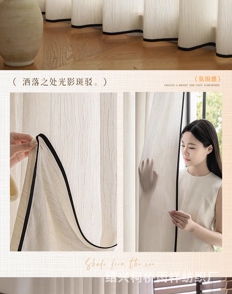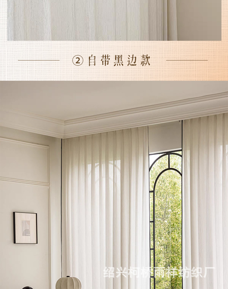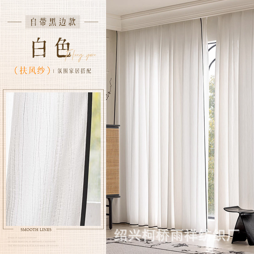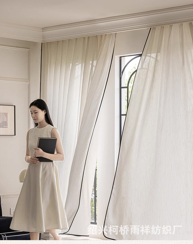 푸풍 거즈 린넨 거즈 커튼, 블랙 엣지 거즈 커튼, 반투명 프렌치 스타일 침실 거실 거즈 창문, 투버스톤 창문, 후크형