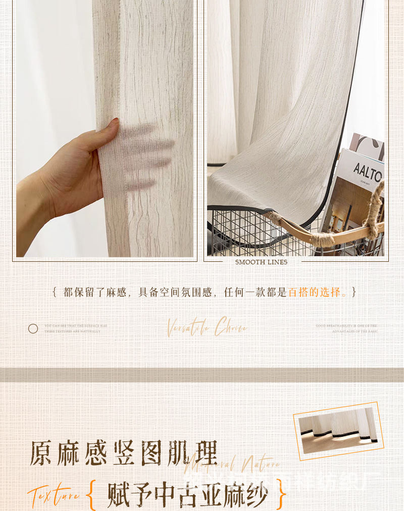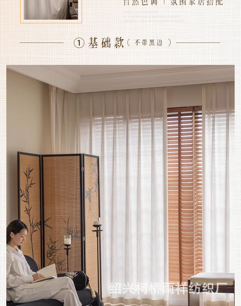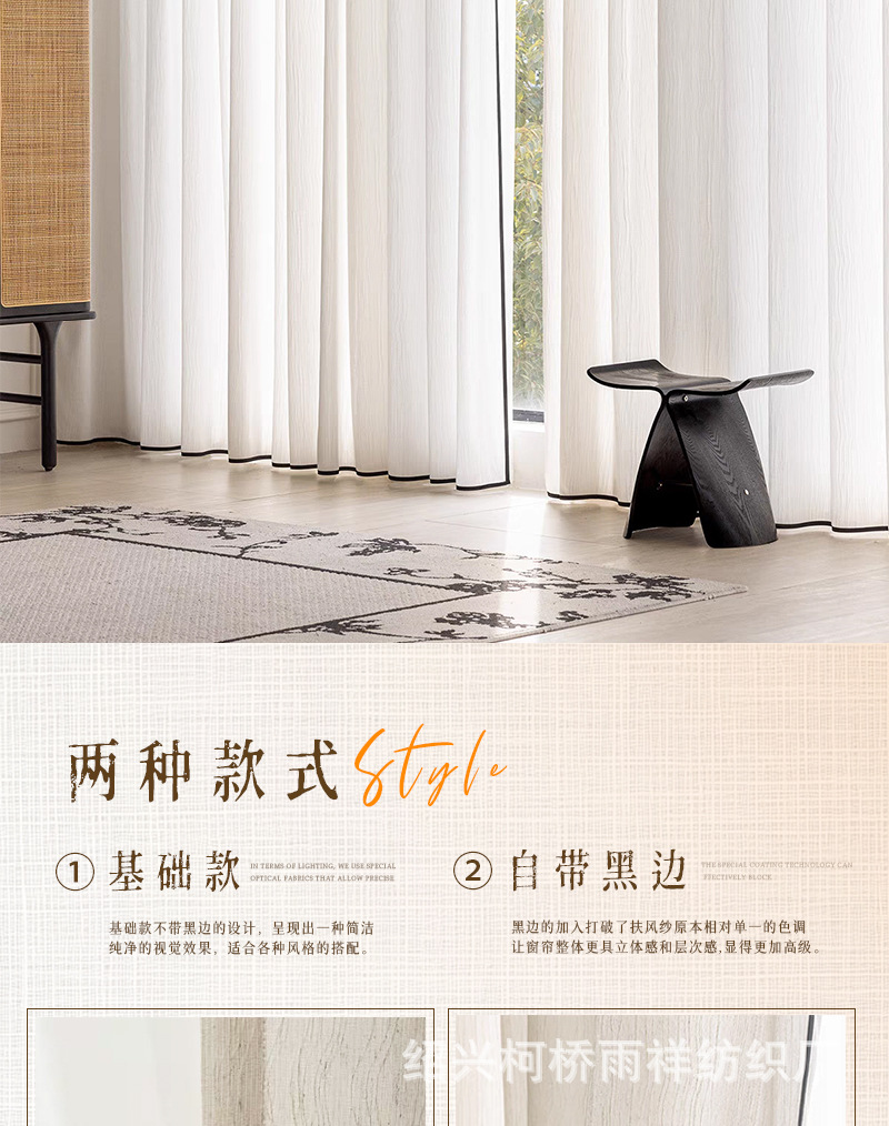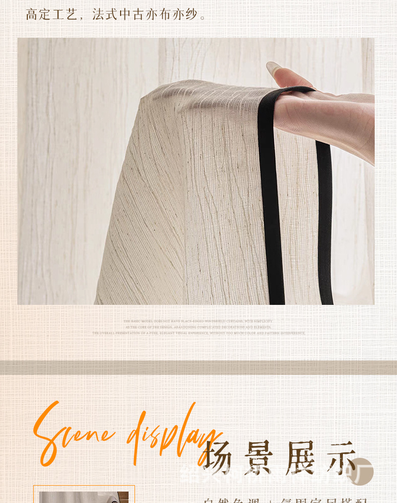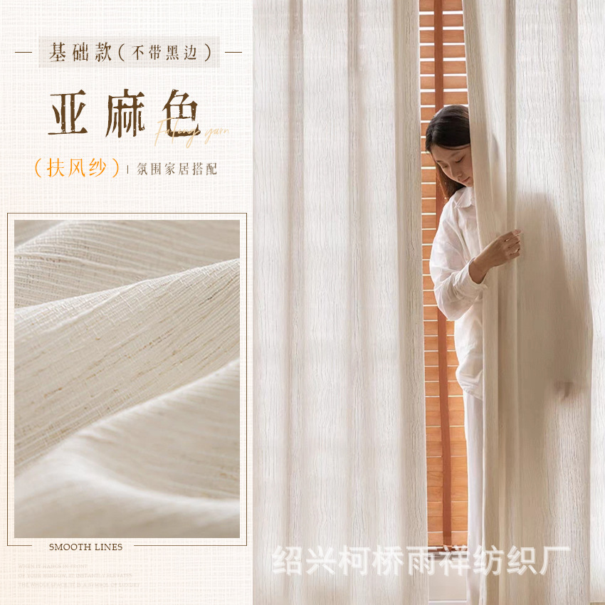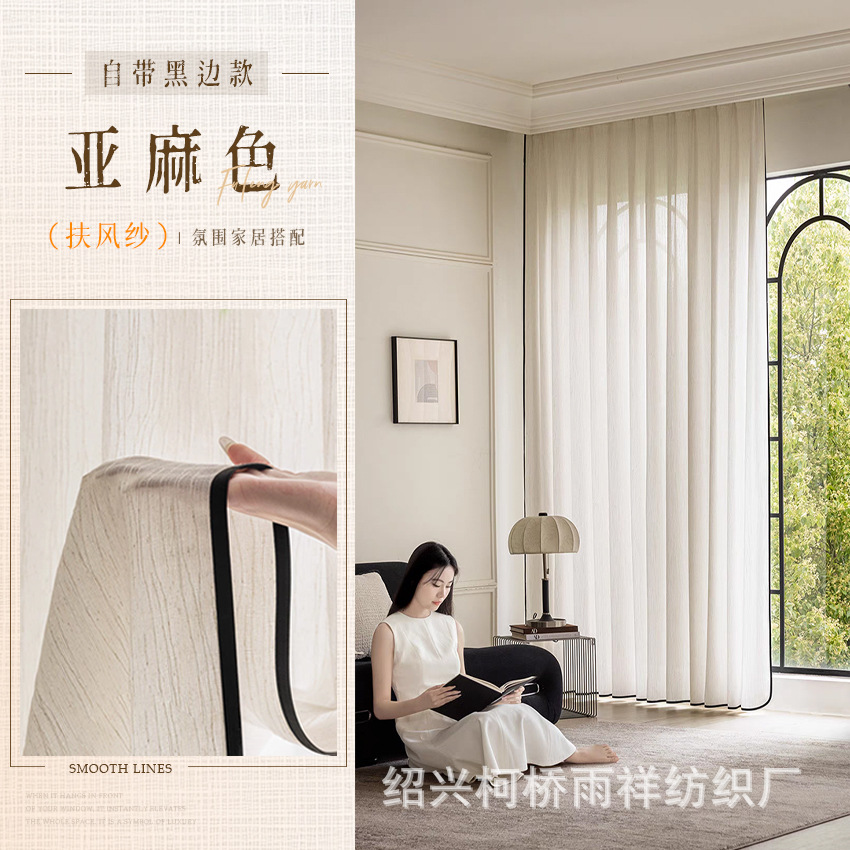 푸풍 거즈 린넨 거즈 커튼, 블랙 엣지 거즈 커튼, 반투명 프렌치 스타일 침실 거실 거즈 창문, 투버스톤 창문, 후크형스토어 가기