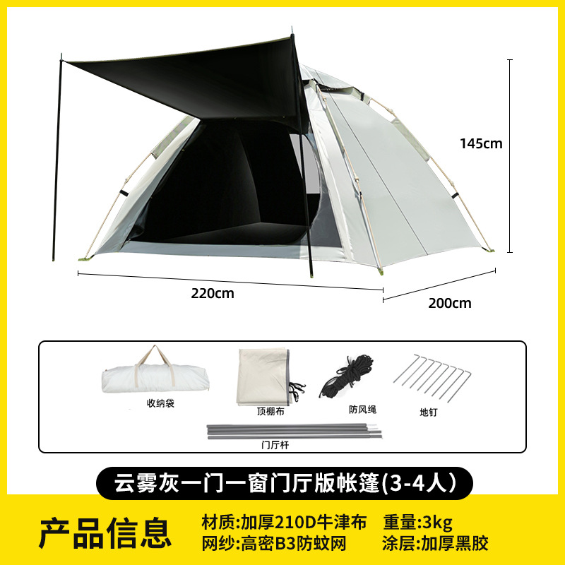 텐트 캠핑 야외 완전 자동 캠핑 빠른 개방형 휴대용 접이식 두꺼운 비닐 태양 보호 야외 방수 도매스토어 가기