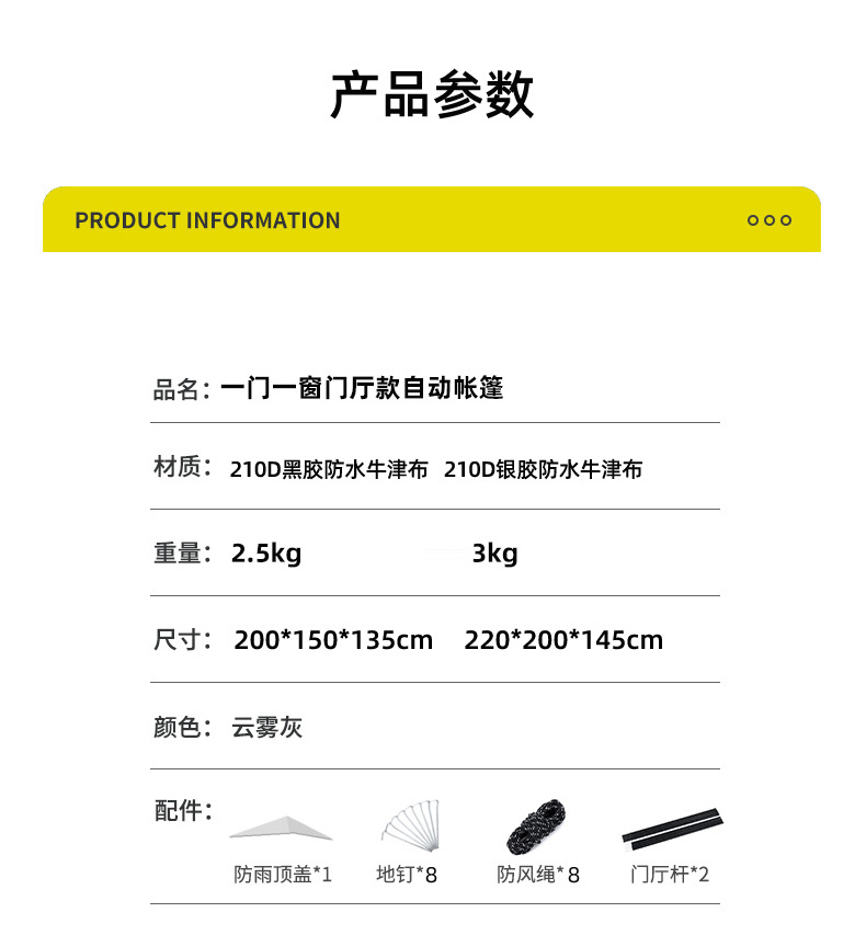 • 비닐로 강화된 자외선 차단 [문 1개, 창문 1개, 현관 모델] 3~4인
