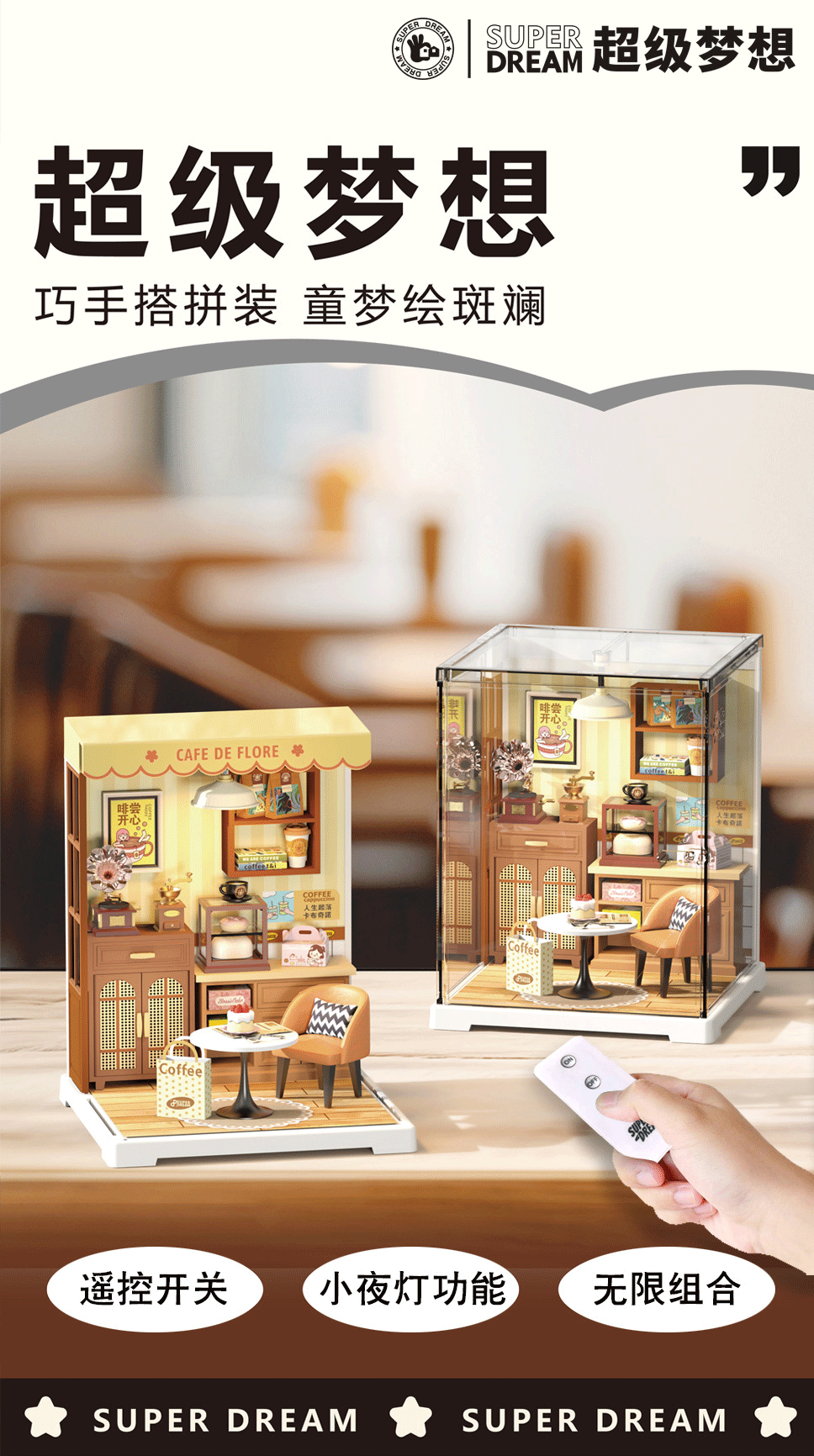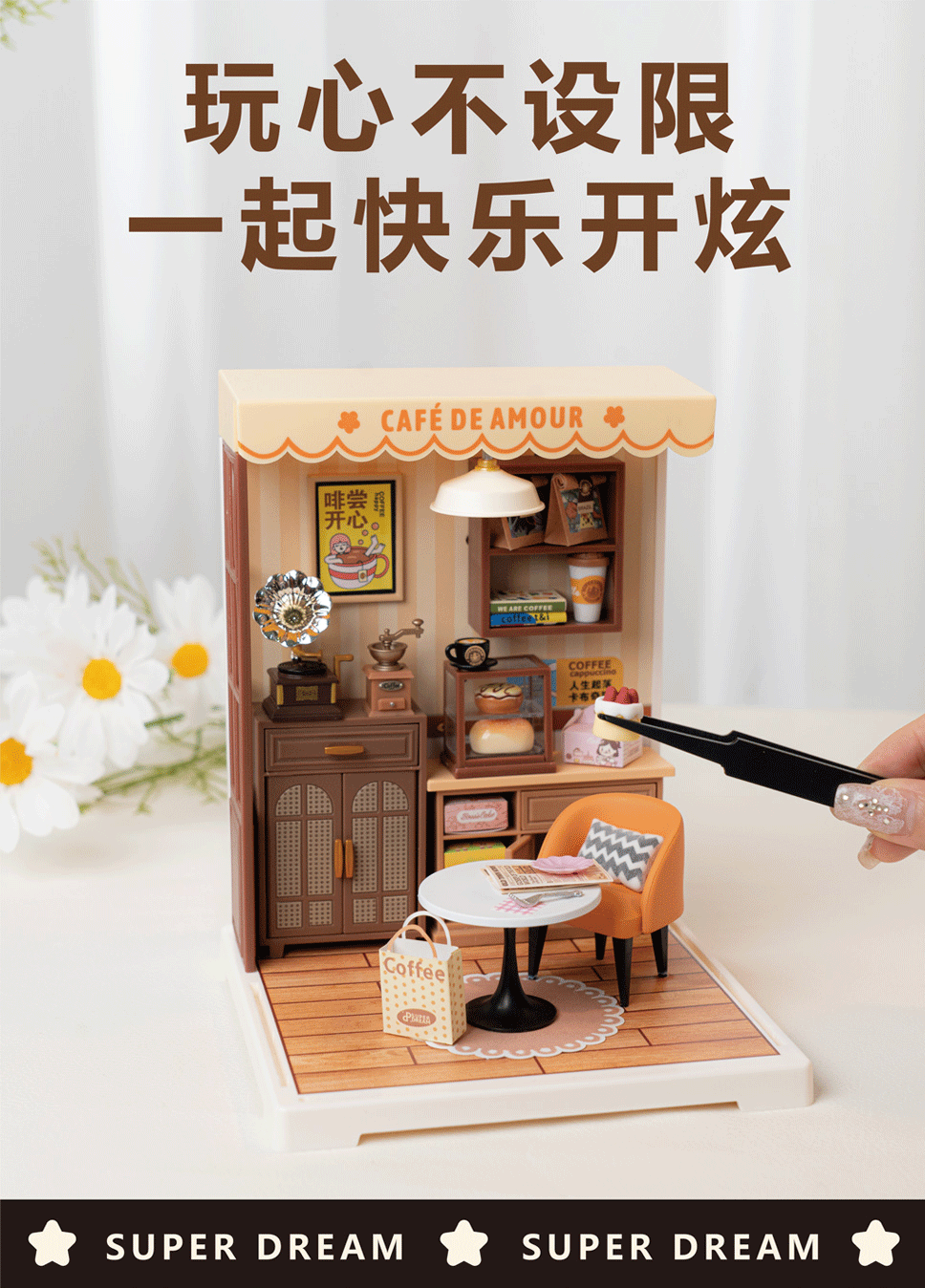 국경 간 DIY 캐빈 슈퍼 월드 조립 하우스 모델 소형 장면 상자 극장 여성을위한 생일 선물스토어 가기
