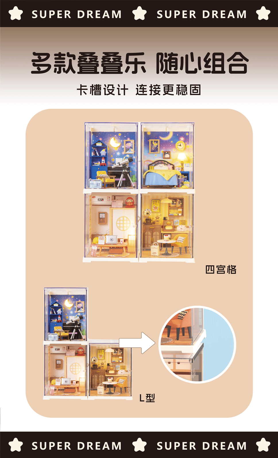 국경 간 DIY 캐빈 슈퍼 월드 조립 하우스 모델 소형 장면 상자 극장 여성을위한 생일 선물