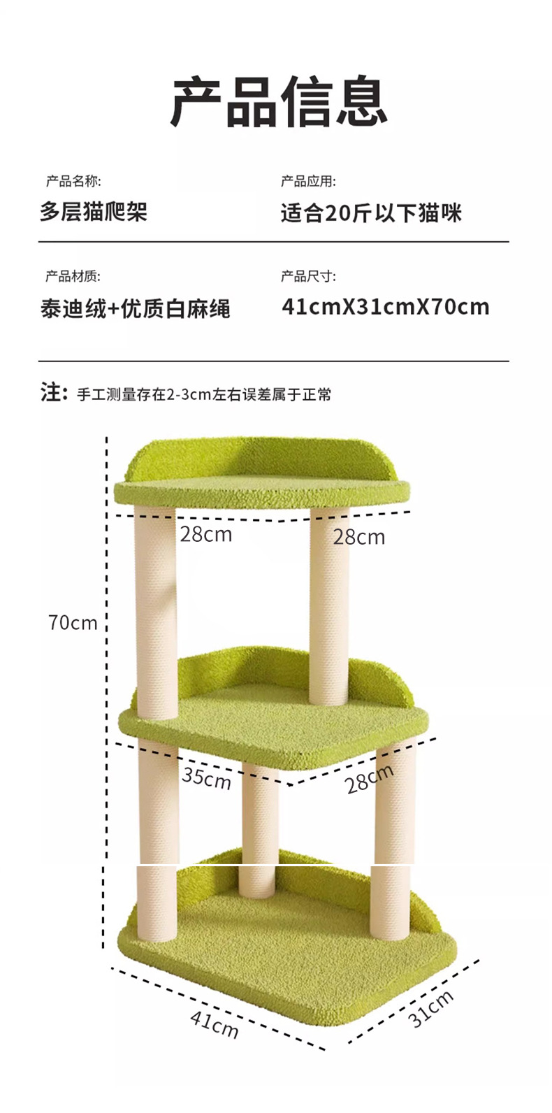 • 녹색 3단 고양이 등반 프레임