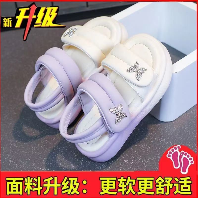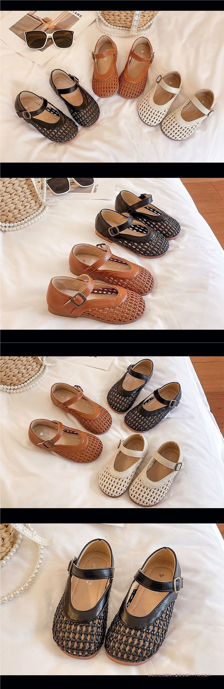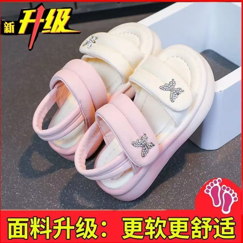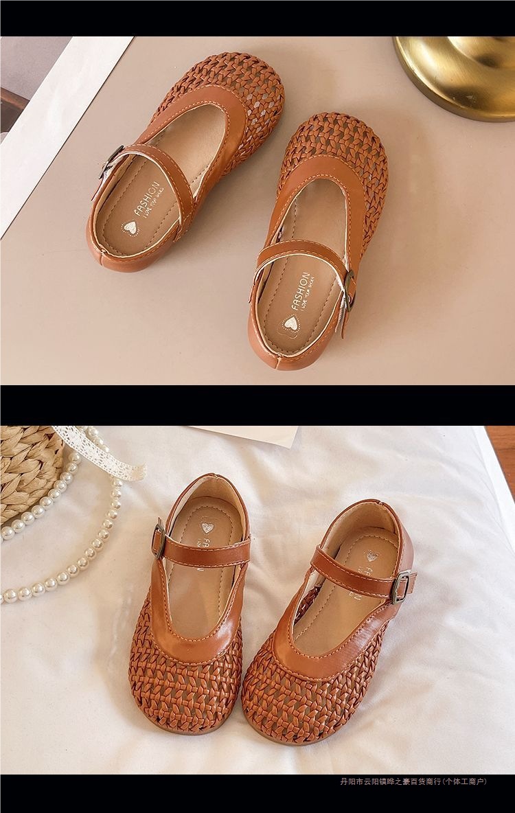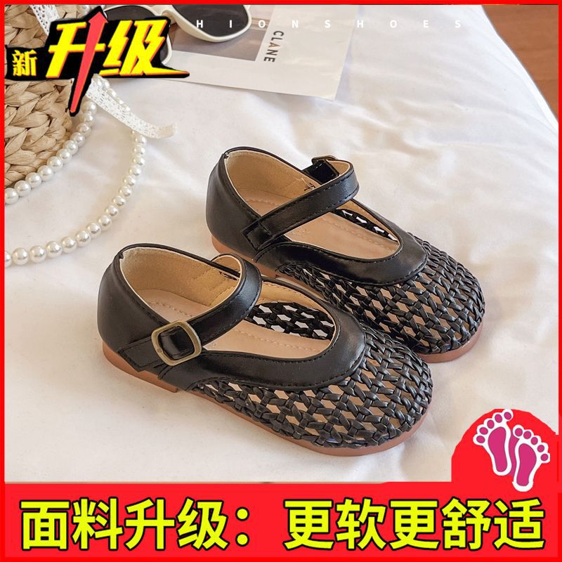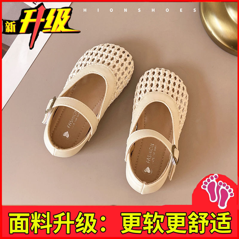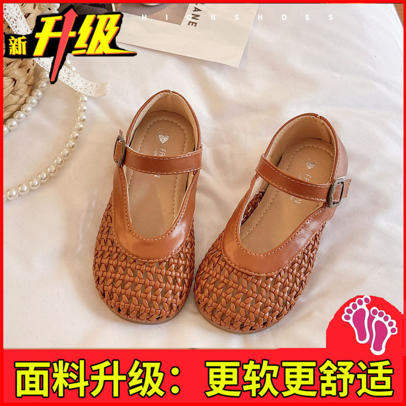 여자 가죽 신발 2025 봄과 여름 새로운 어린이 신발 여자 공주 신발 통기성 중공 신발 샌들 Doudou 신발