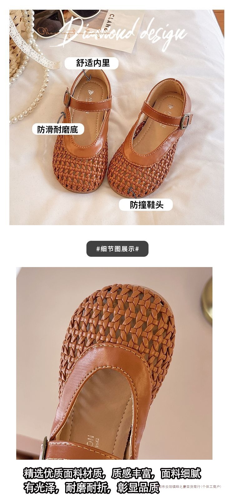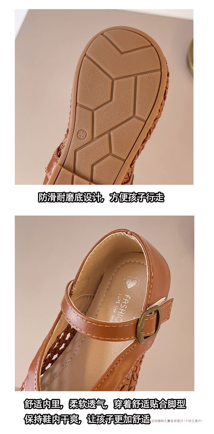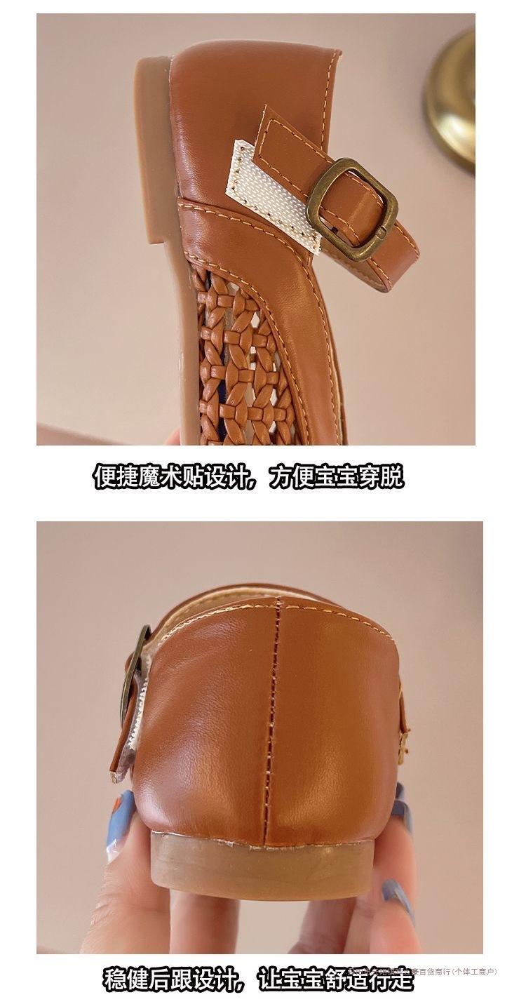 여자 가죽 신발 2025 봄과 여름 새로운 어린이 신발 여자 공주 신발 통기성 중공 신발 샌들 Doudou 신발스토어 가기