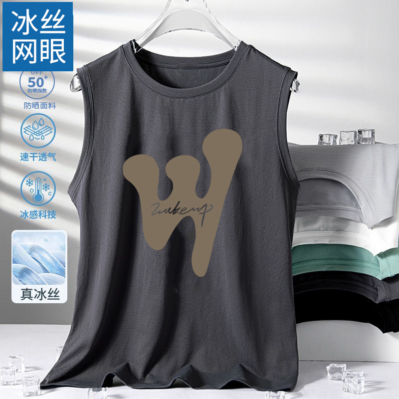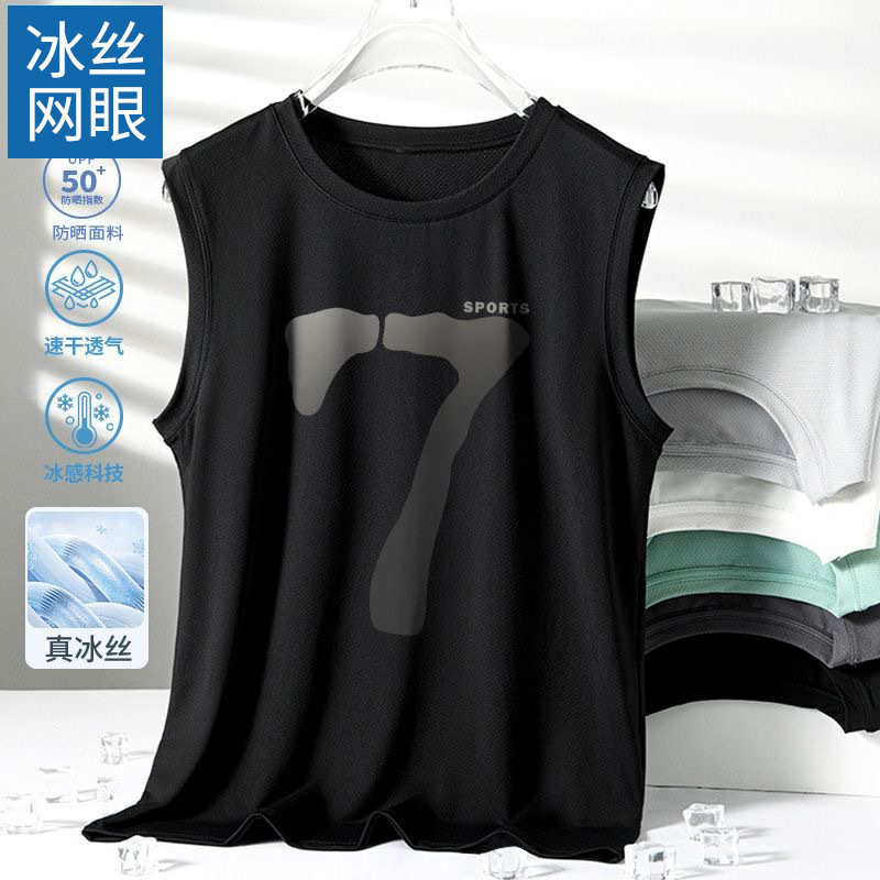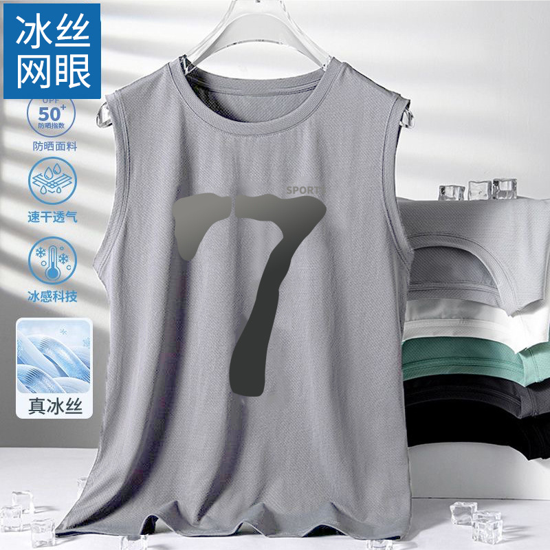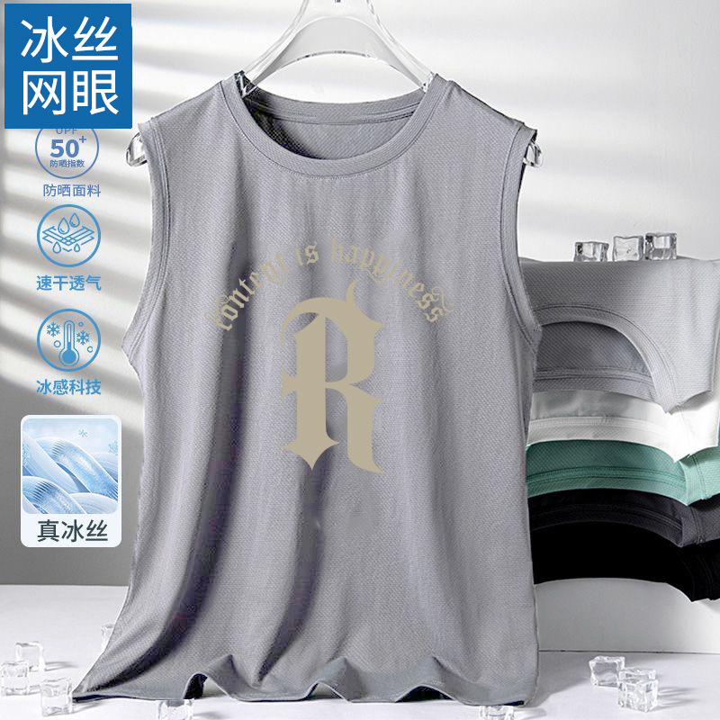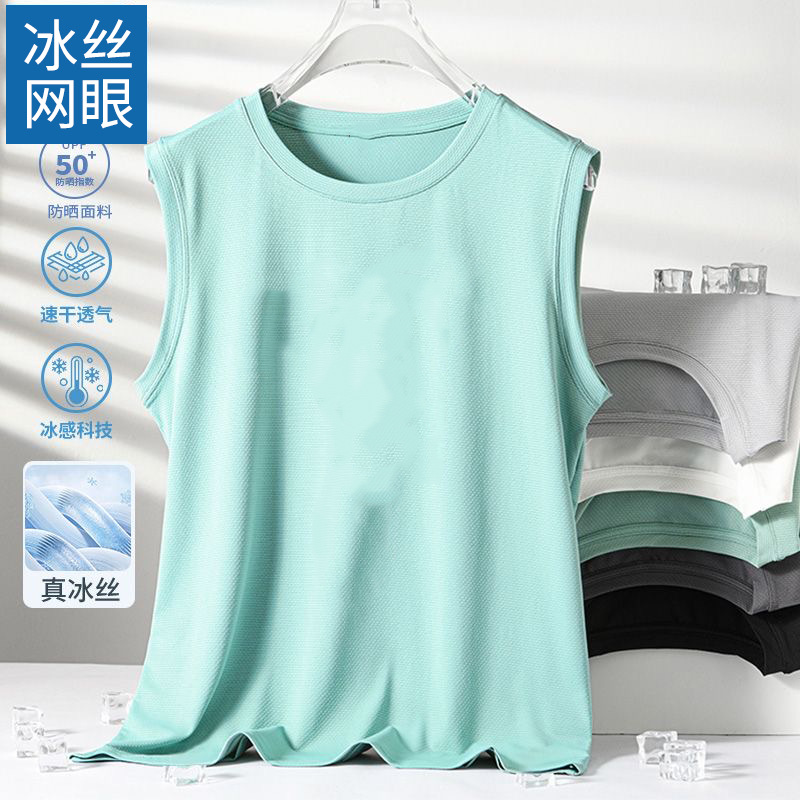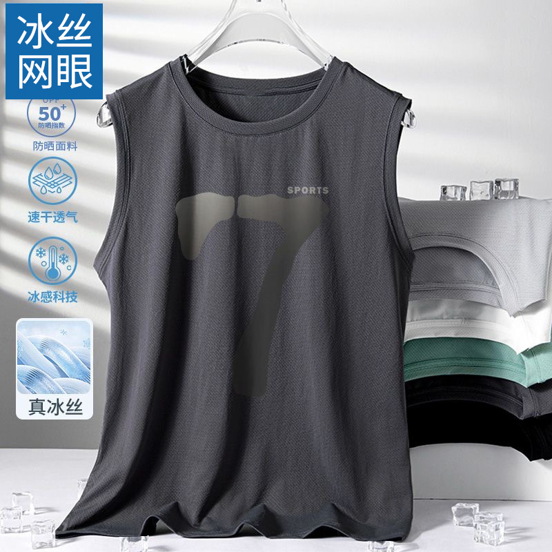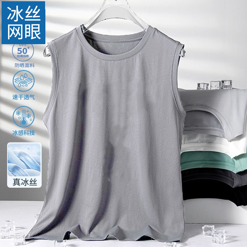 남성용 아이스 실크 여름 속건 반팔 한국 스타일 편안한 스포츠 캐주얼 조끼 여름 루즈핏 통기성 트렌디 민소매스토어 가기