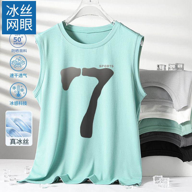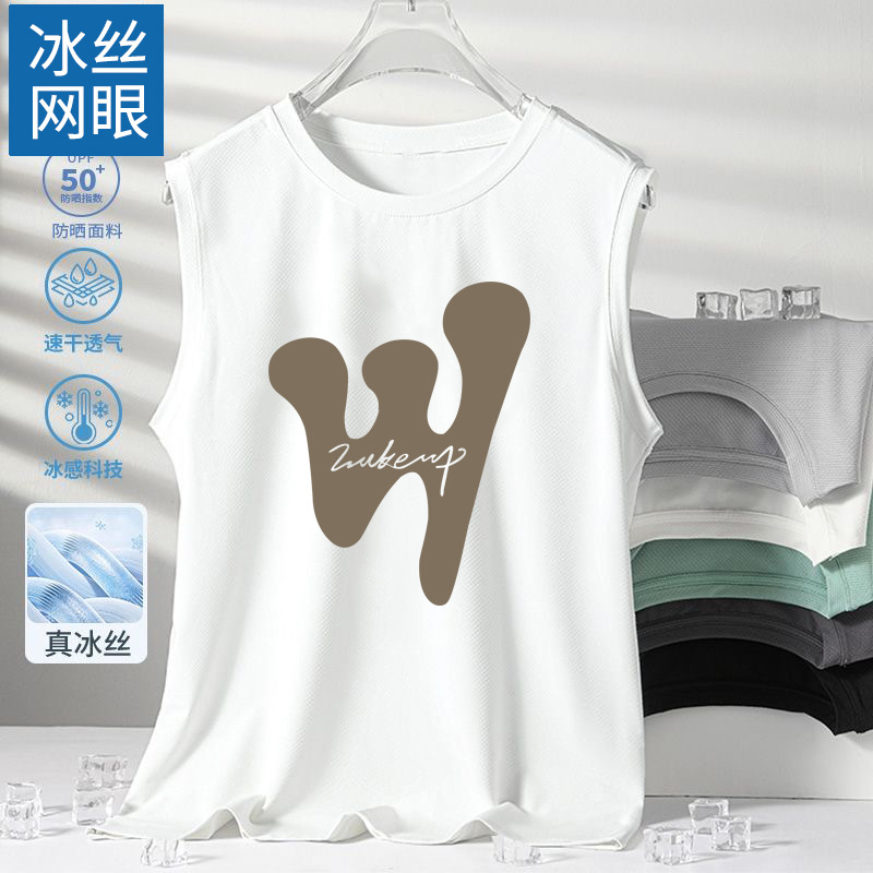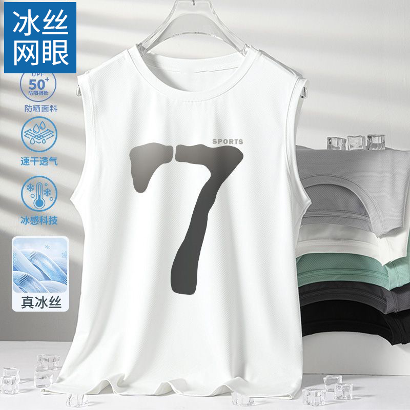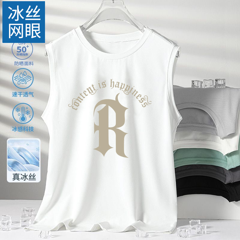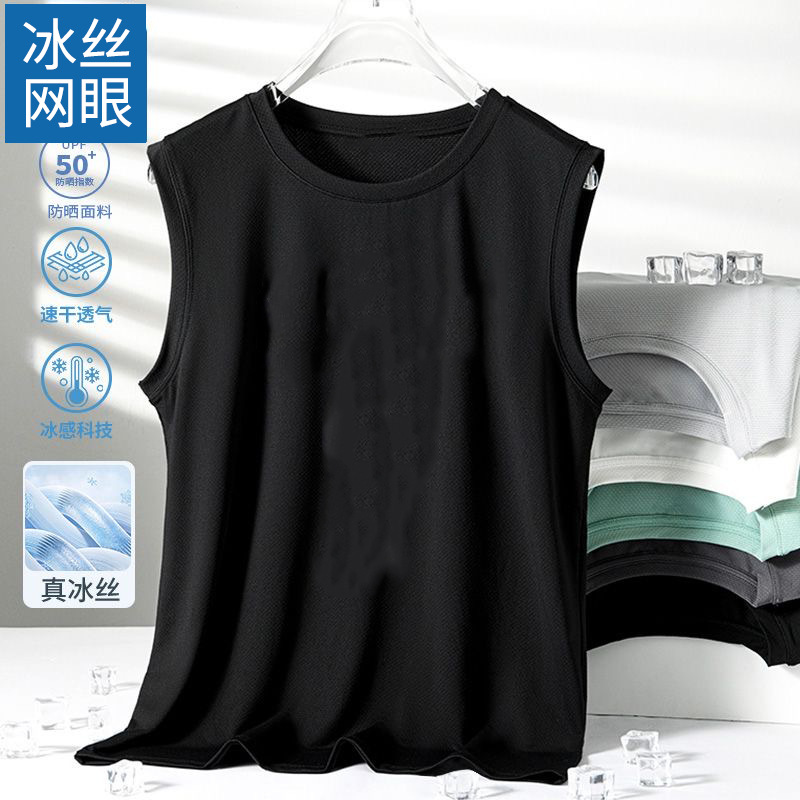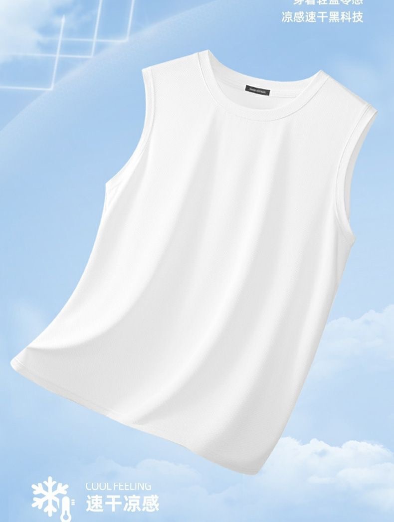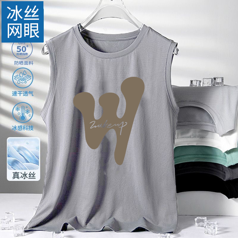 남성용 아이스 실크 여름 속건 반팔 한국 스타일 편안한 스포츠 캐주얼 조끼 여름 루즈핏 통기성 트렌디 민소매스토어 가기